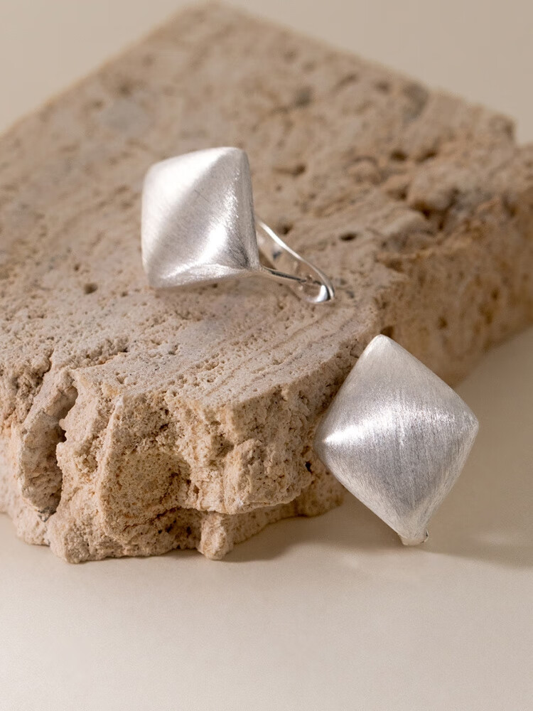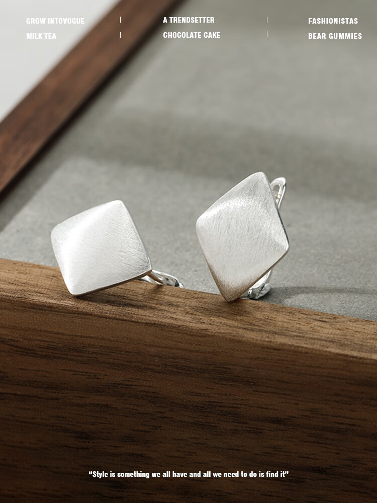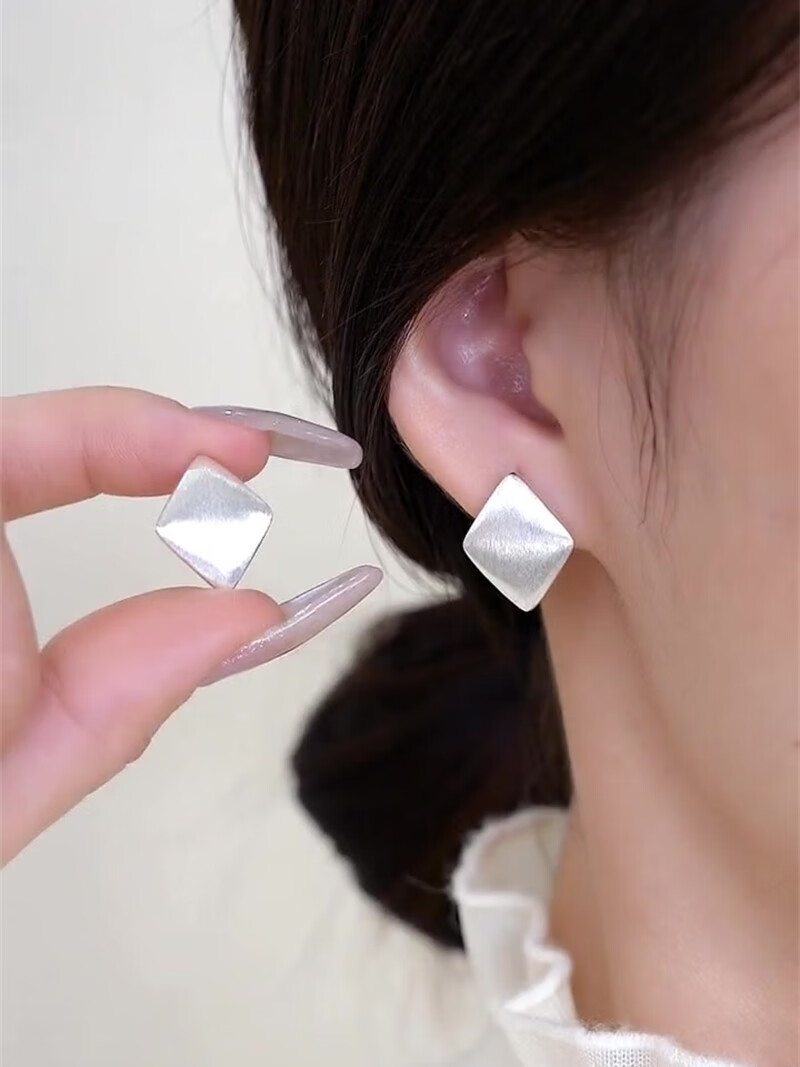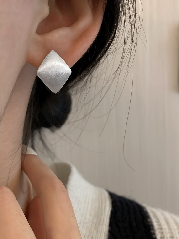 Jiuchangshi 999 sterling silver geometric rhombus brushed earrings, feminine, high-end square earrings, birthday gift for girlfriend, S999 pure silver, large size 4.5g pair