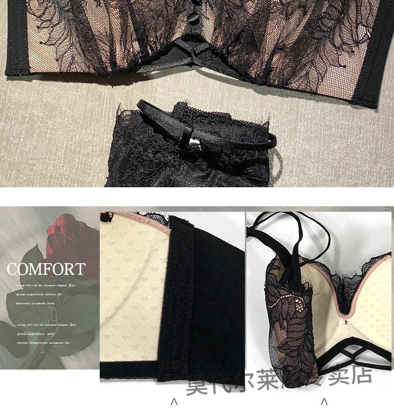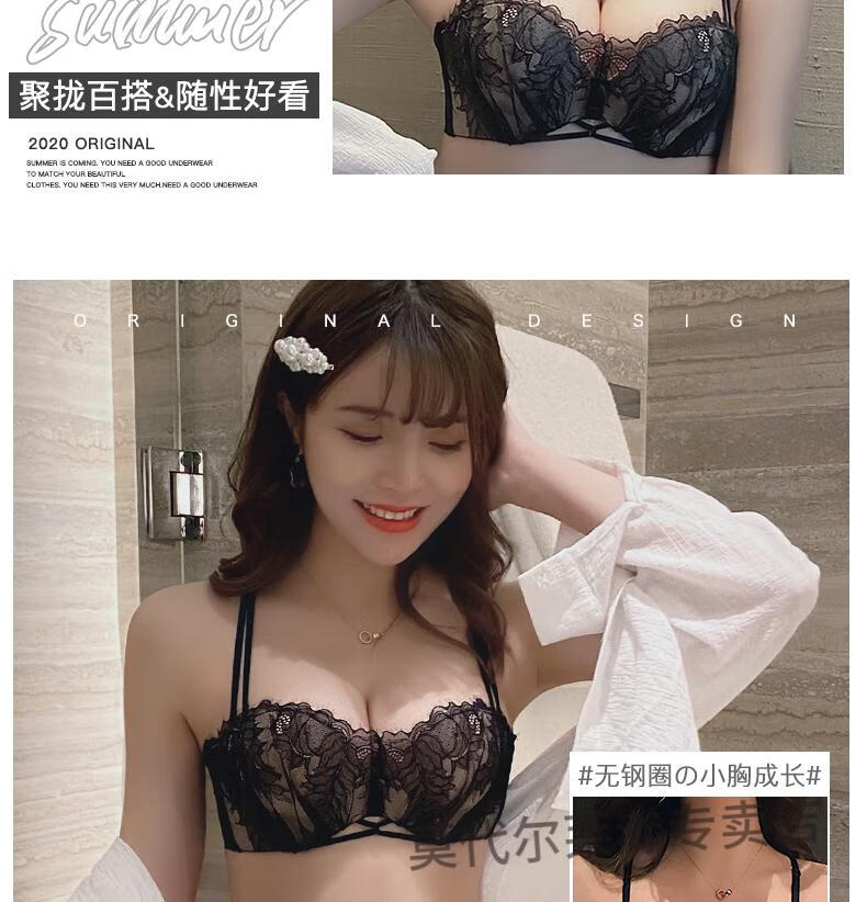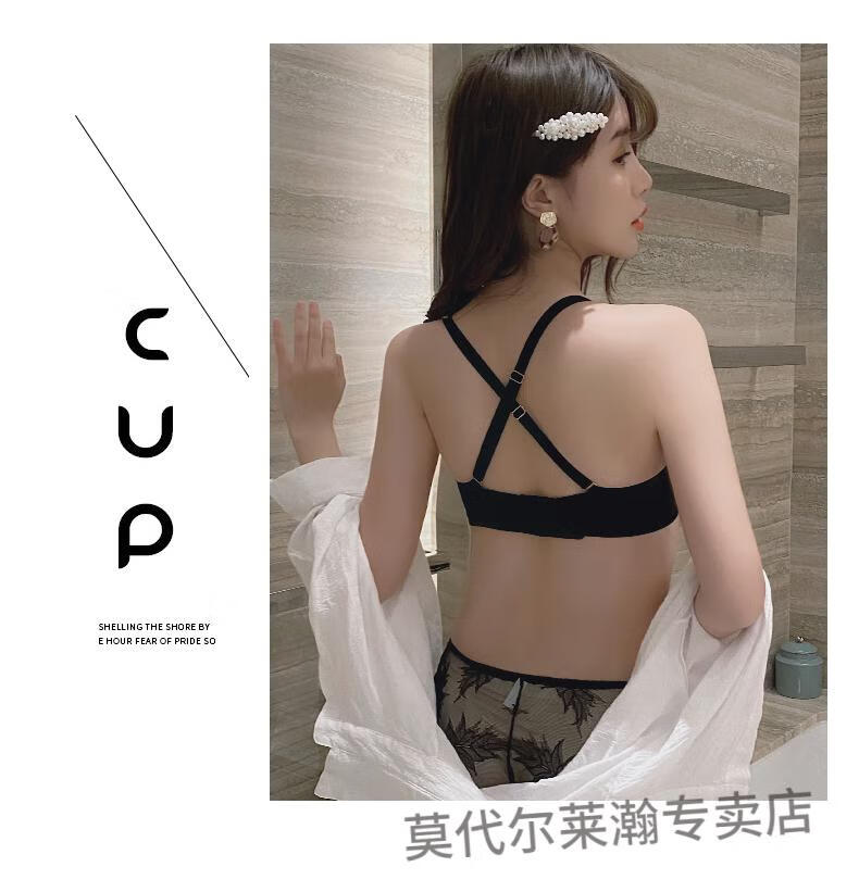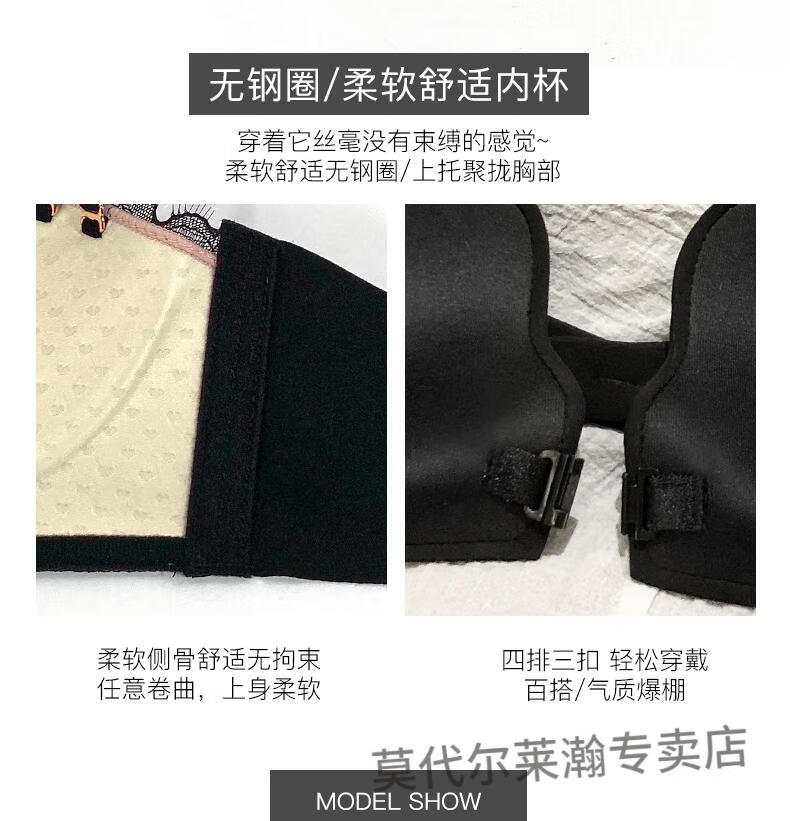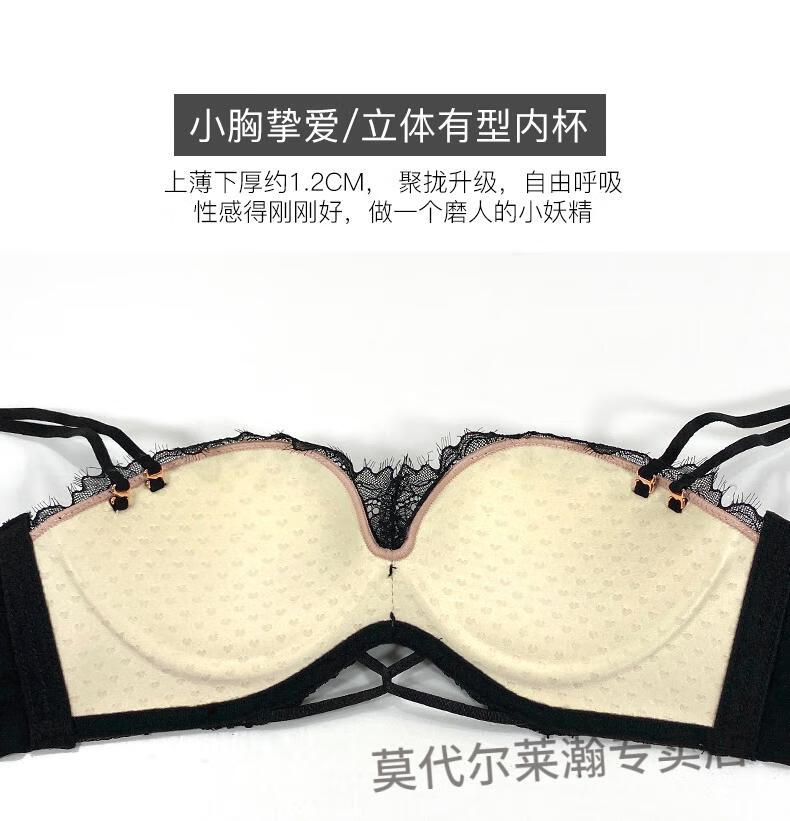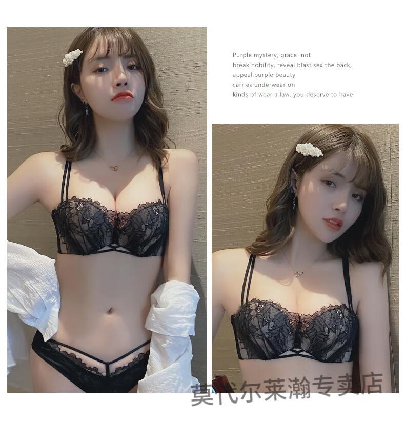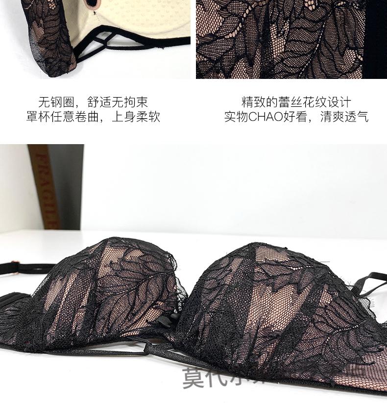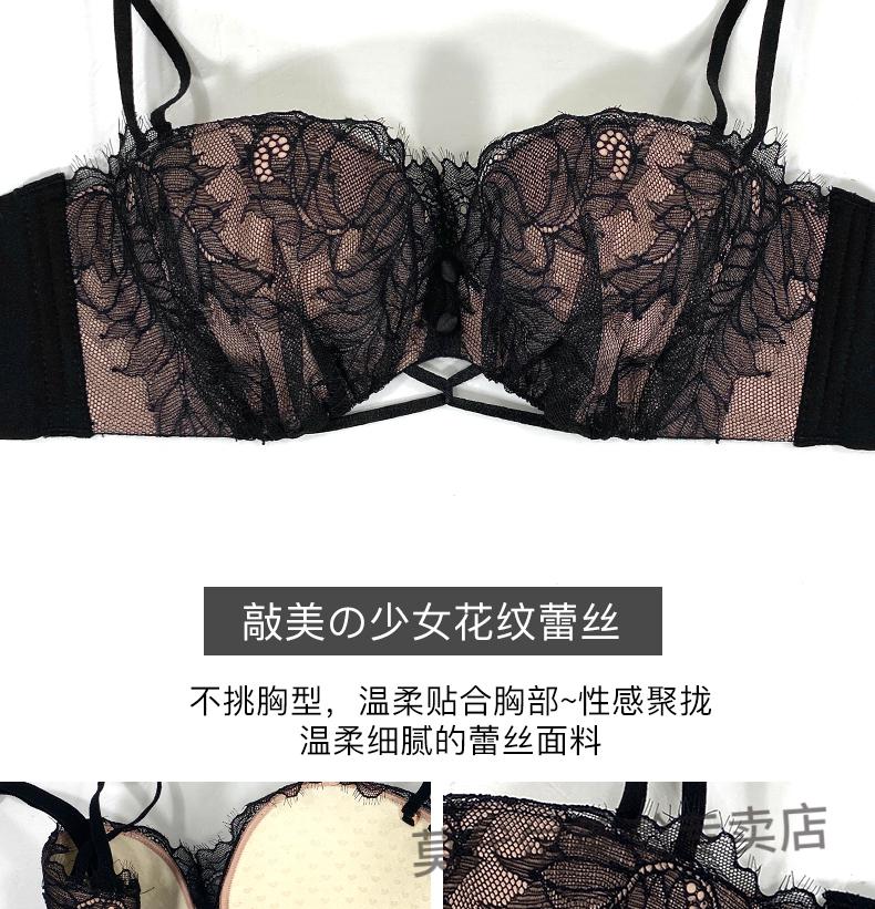 Modal Half Cup Sexy Underwear Women Small Breast Gathering Thin Summer Adjustable Side Breast Sentiment Beautiful Back Lace Bra Black Suit 80A 36A