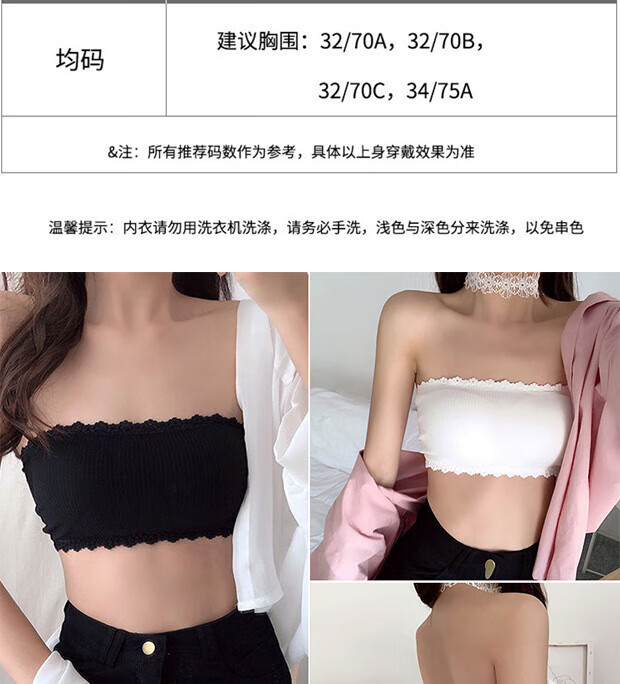 Kua Ge Strapless Student Korean Style Underwear Women's Sports Wrap Chest High School Student Girls Bottoming Bandeau Bra Gray One Size 80-120Jin Jin is equal to 0.5 kg