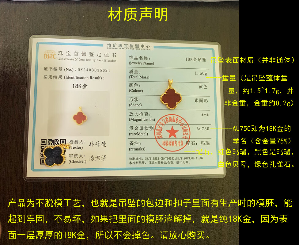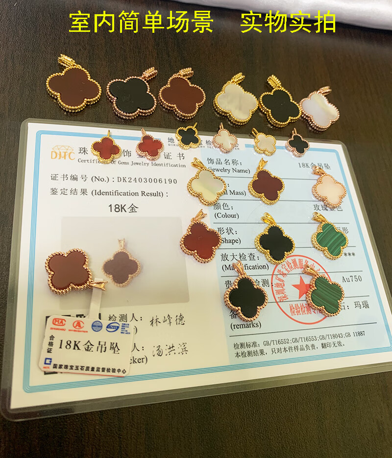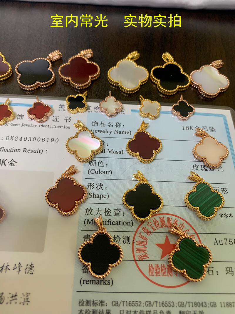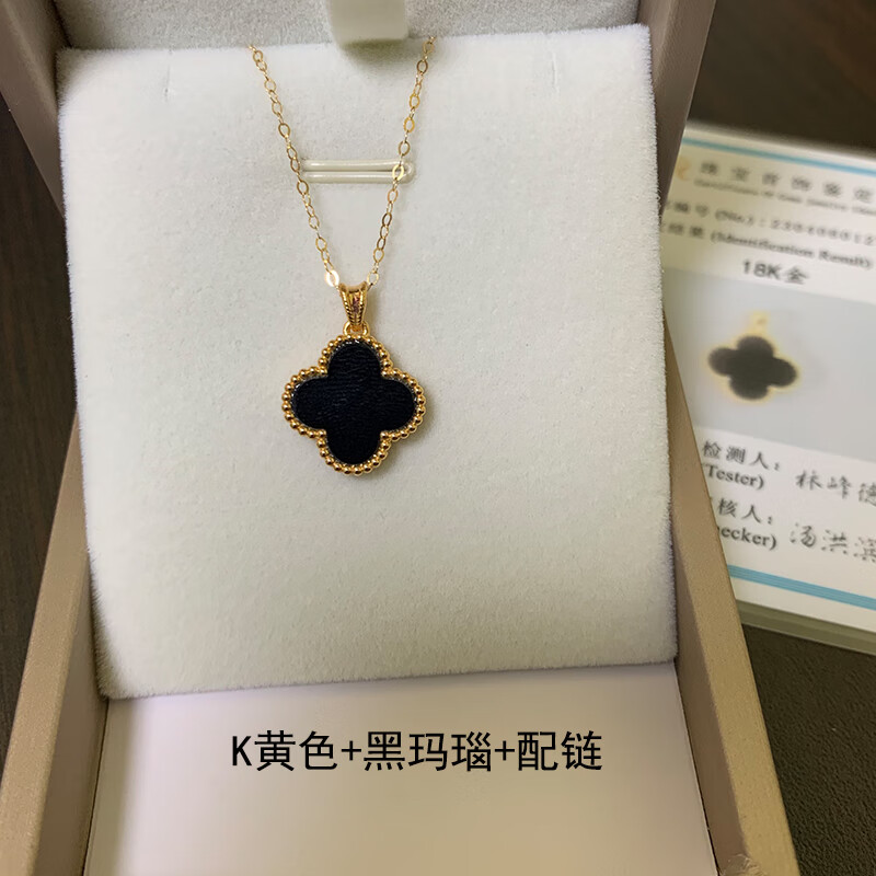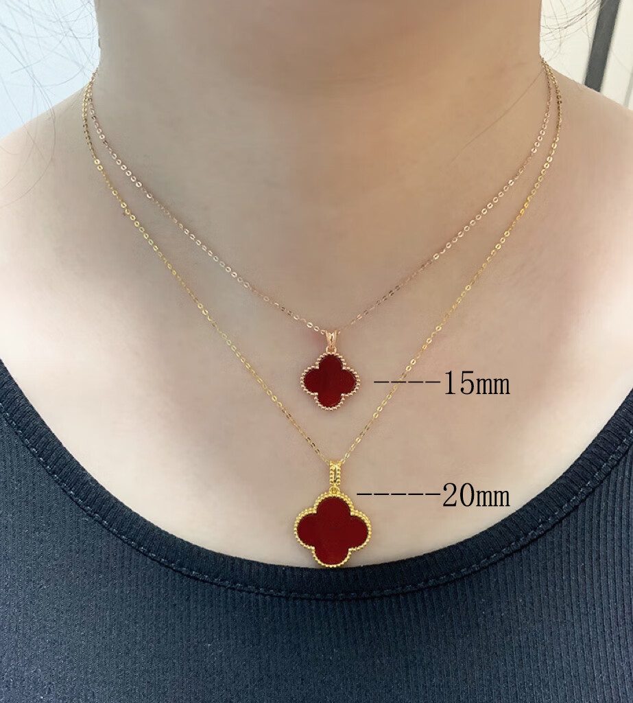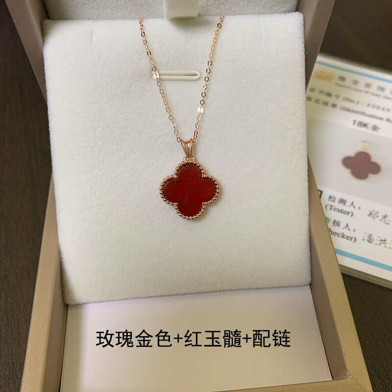 Amisha non-mold 18K gold AU750 real gold four-leaf clover pendant for women 15mm non-fading carnelian agate clavicle pendant 18K gold non-mold + K gold carnelian + certificate 15mm medium single pendant