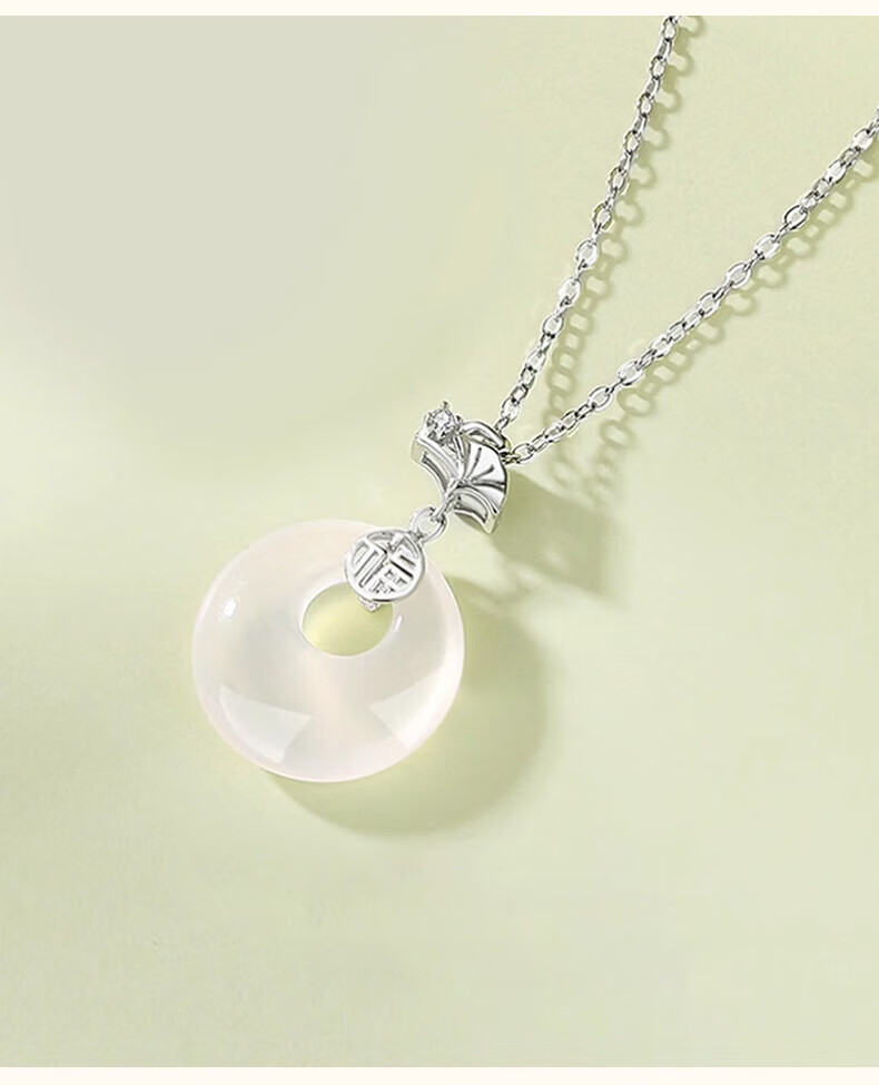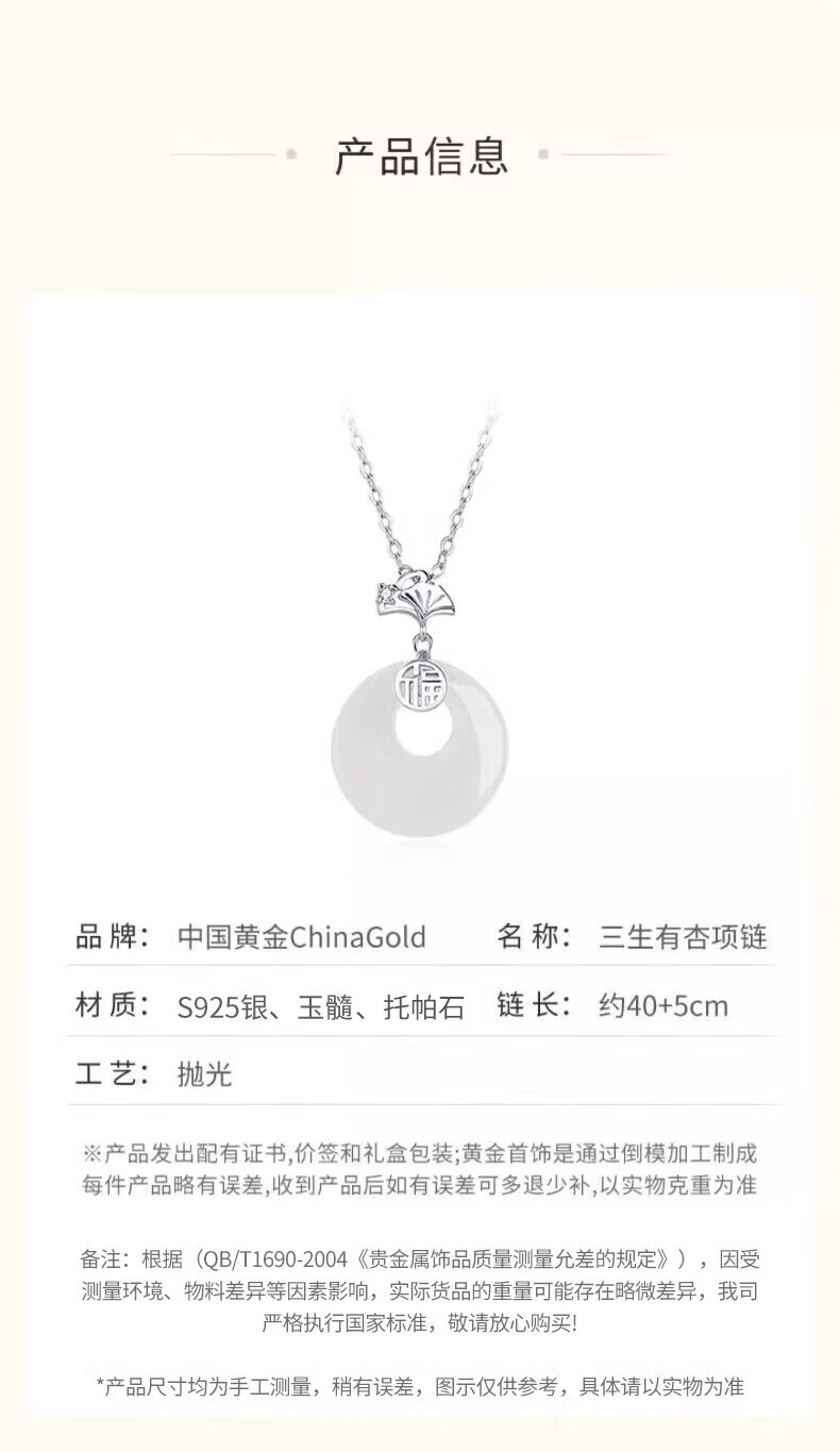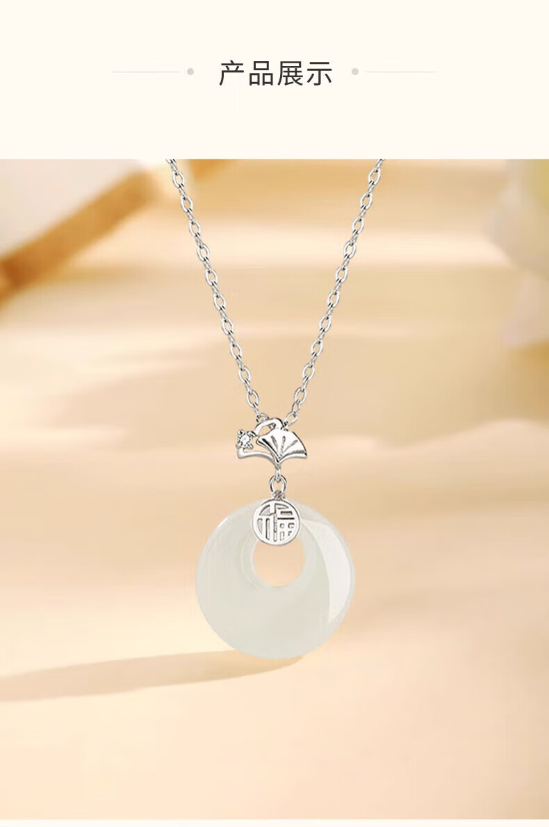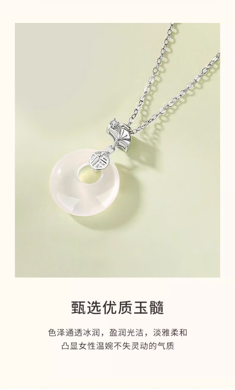 China Gold (CHINA GOLD) Jade Pendant Blessings Chalcedony Peace Buckle Silver Necklace Female Collarbone Valentine's Day Birthday Gift for Girlfriend and Wife Jingsuda Lucky Three Life Chalcedony Peace Buckle Necklace