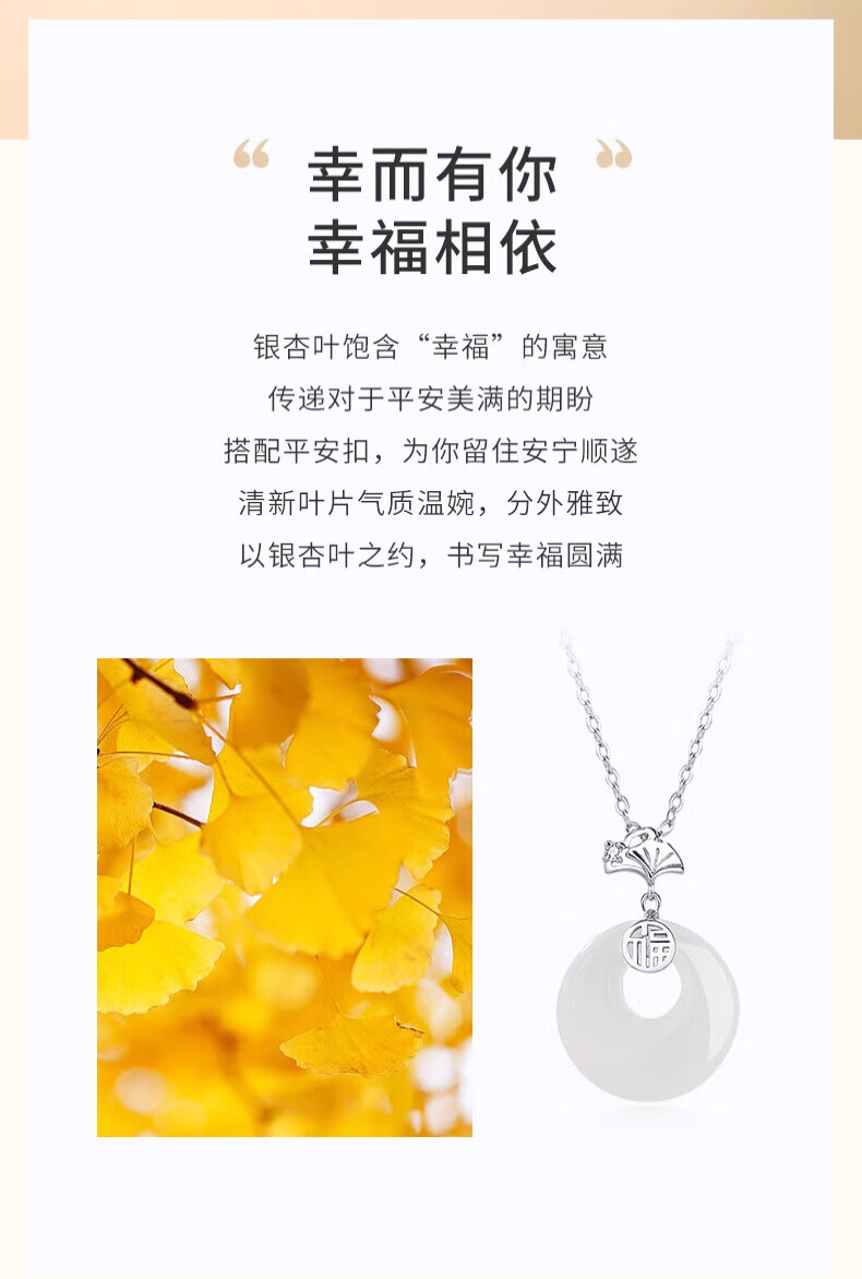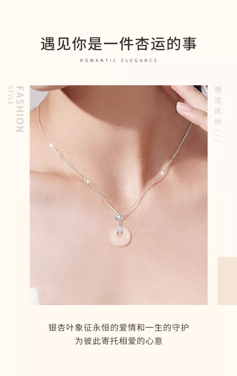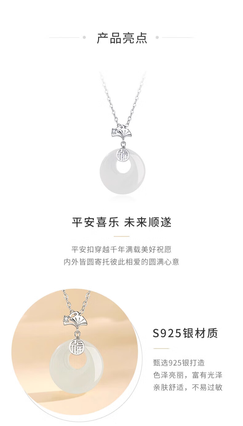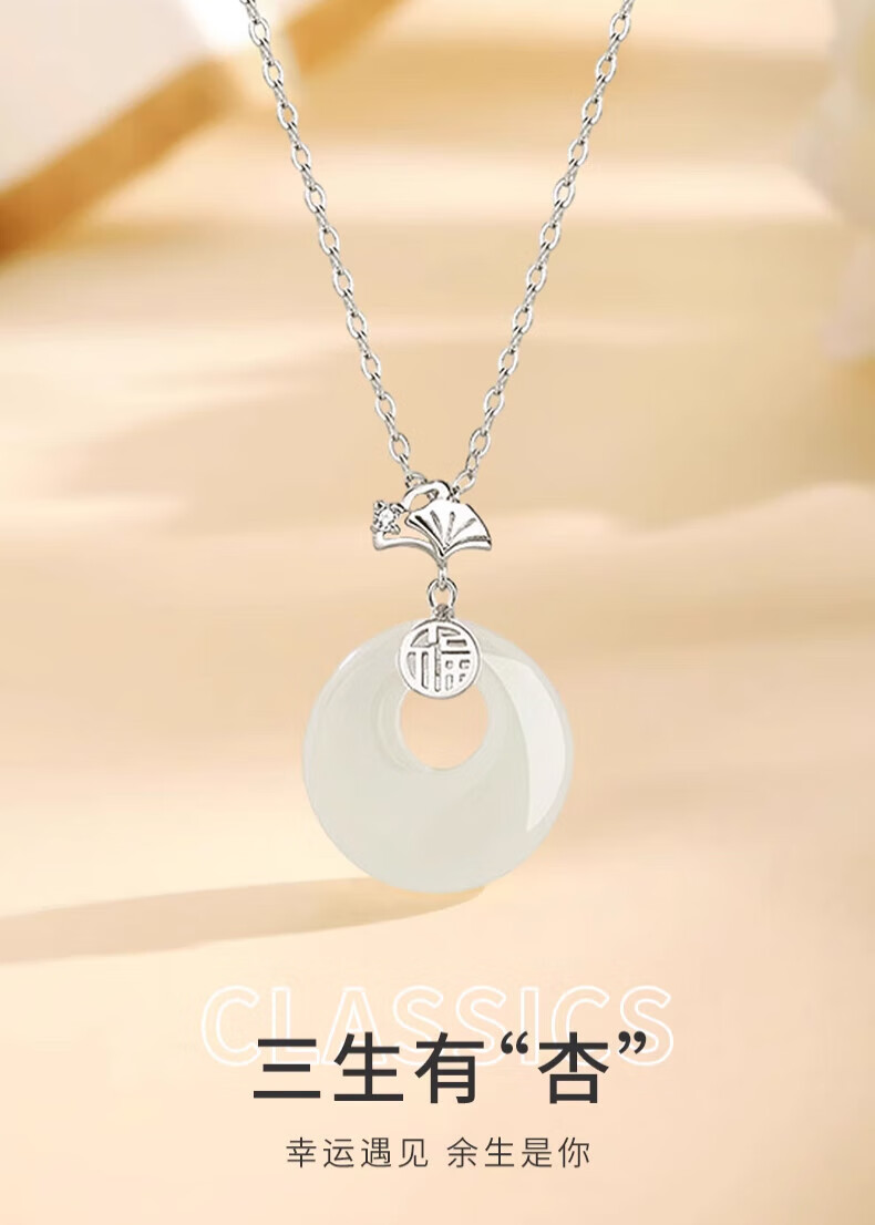 China Gold (CHINA GOLD) Jade Pendant Blessings Chalcedony Peace Buckle Silver Necklace Female Collarbone Valentine's Day Birthday Gift for Girlfriend and Wife Jingsuda Lucky Three Life Chalcedony Peace Buckle Necklace