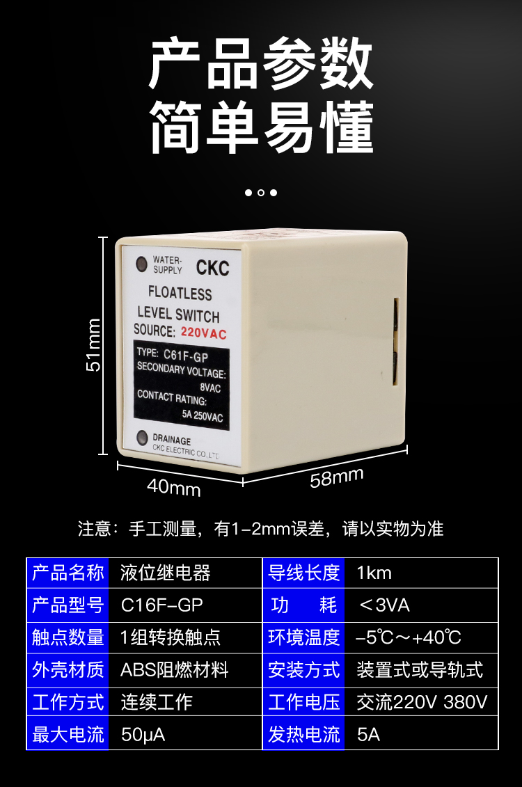 Liquid level relay water level controller 220v intelligent AC probe C61F-GP C61F-GP AC220V