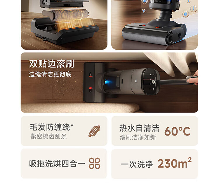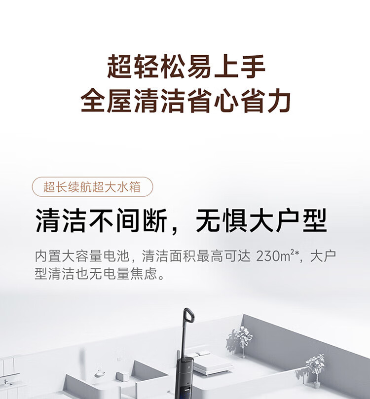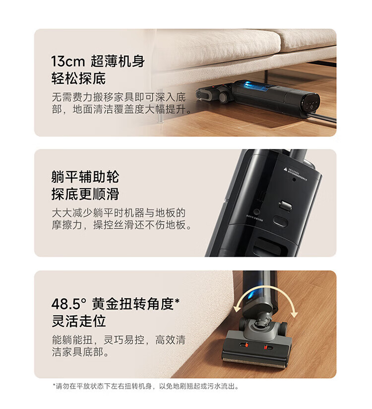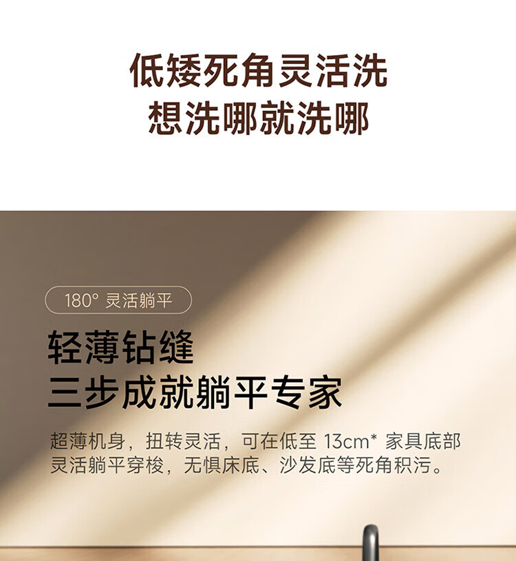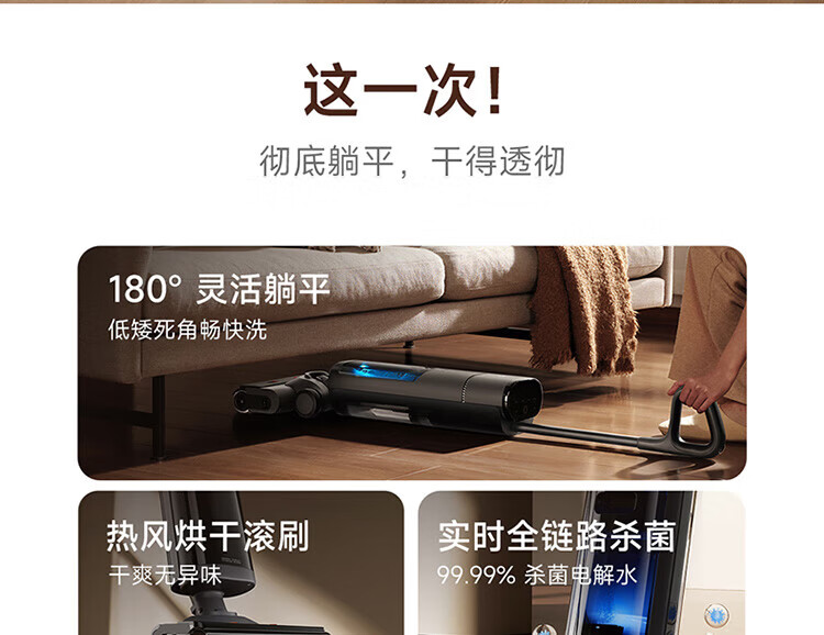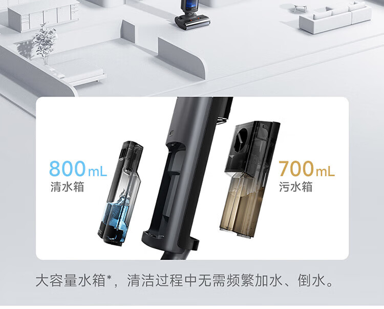 Mijia Xiaomi Wireless Floor Scrubber 3 Pro Lies flat for cleaning 60 degree hot water self-cleaning Hot air drying Hair stripping Welt cleaning 4-in-1 suction, washing, drying and mopping Long battery life Mijia Wireless Floor Scrubber 3 Pro