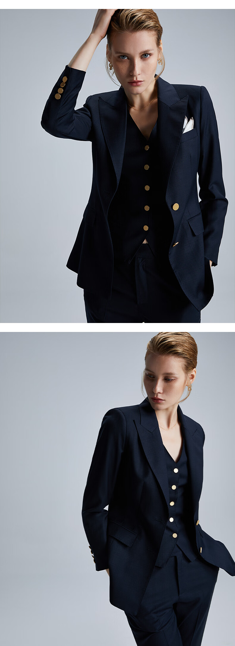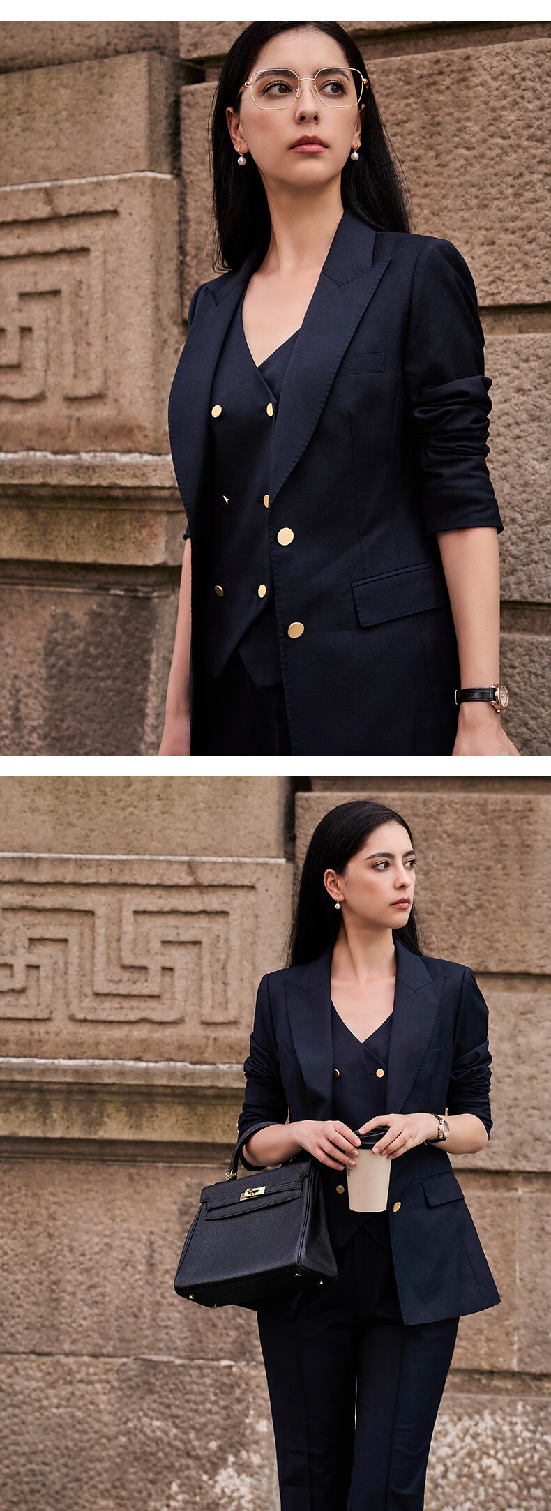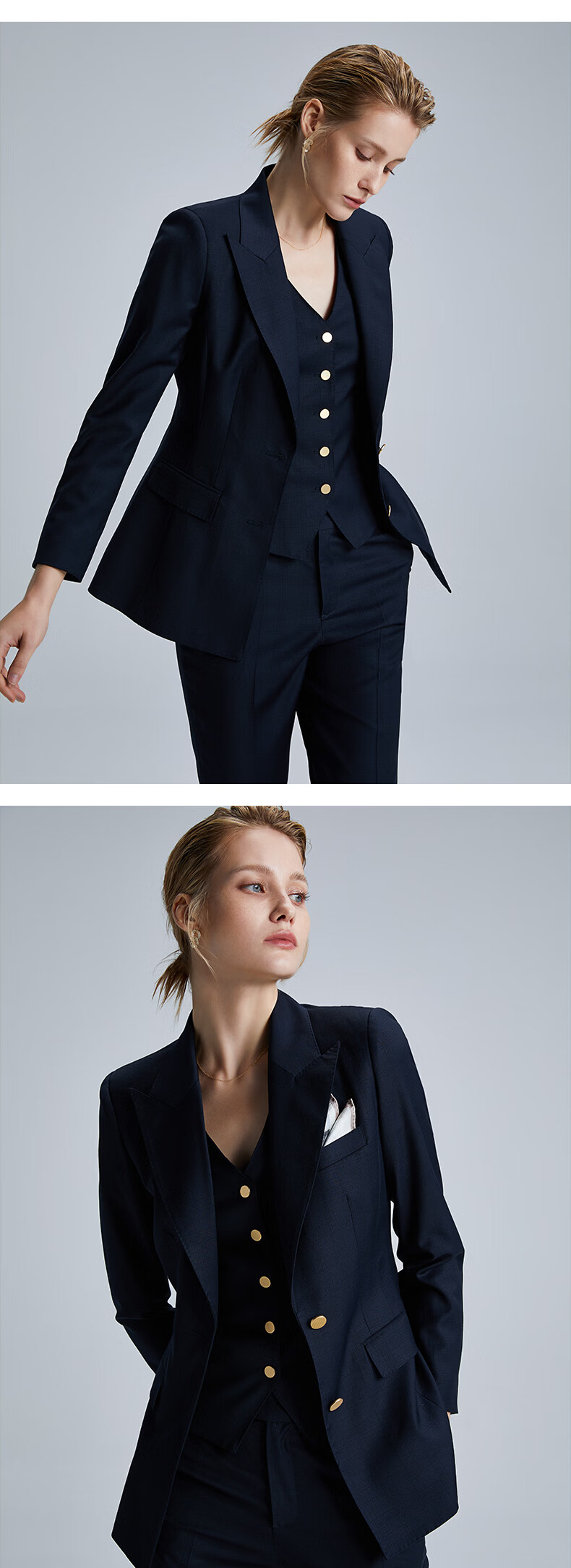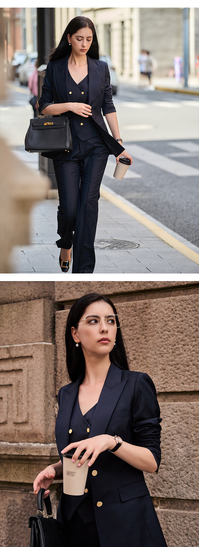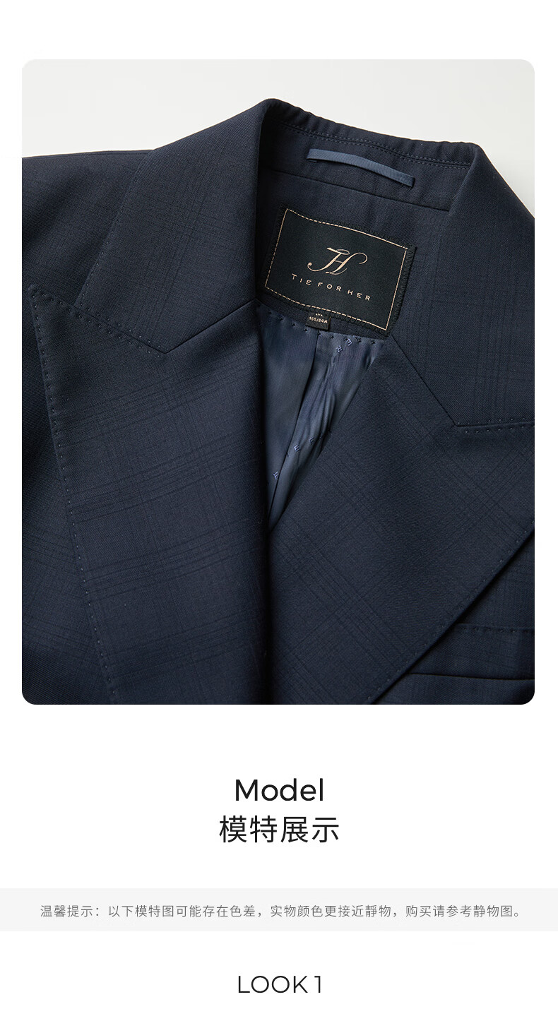 TIE FOR HER luxury series color number 038 Wu Qianyu style navy dark plaid wool commuter suit navy blue suit DOM038 M