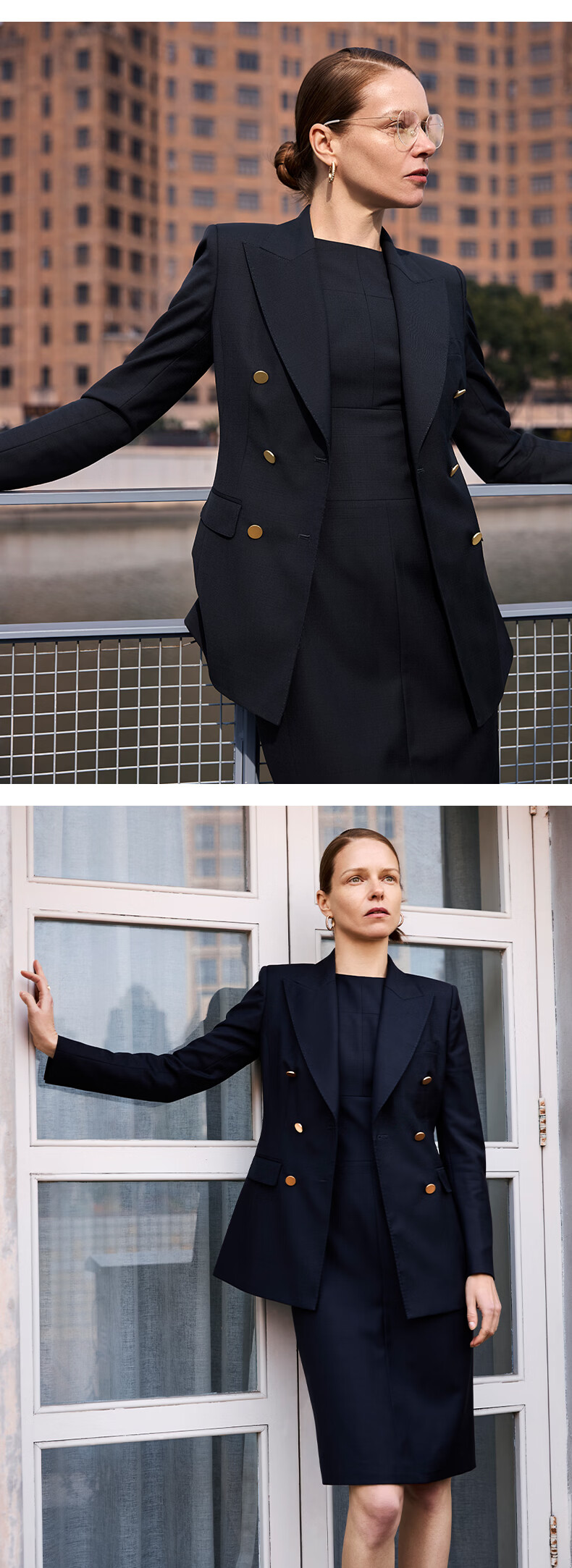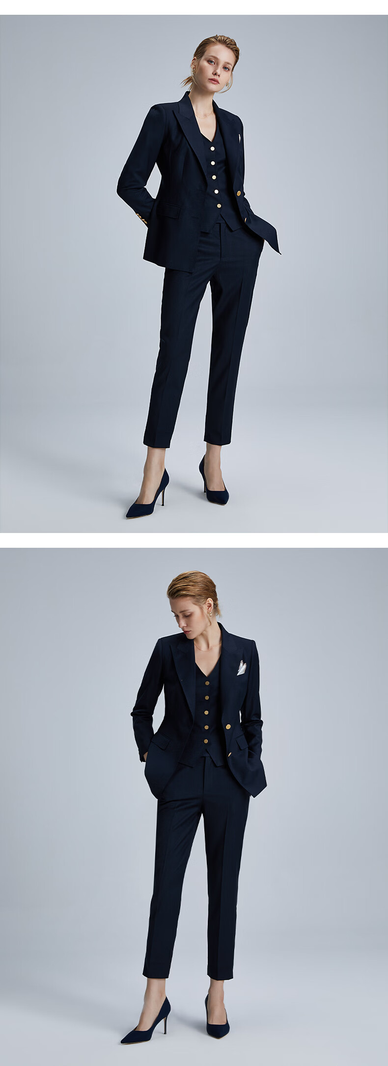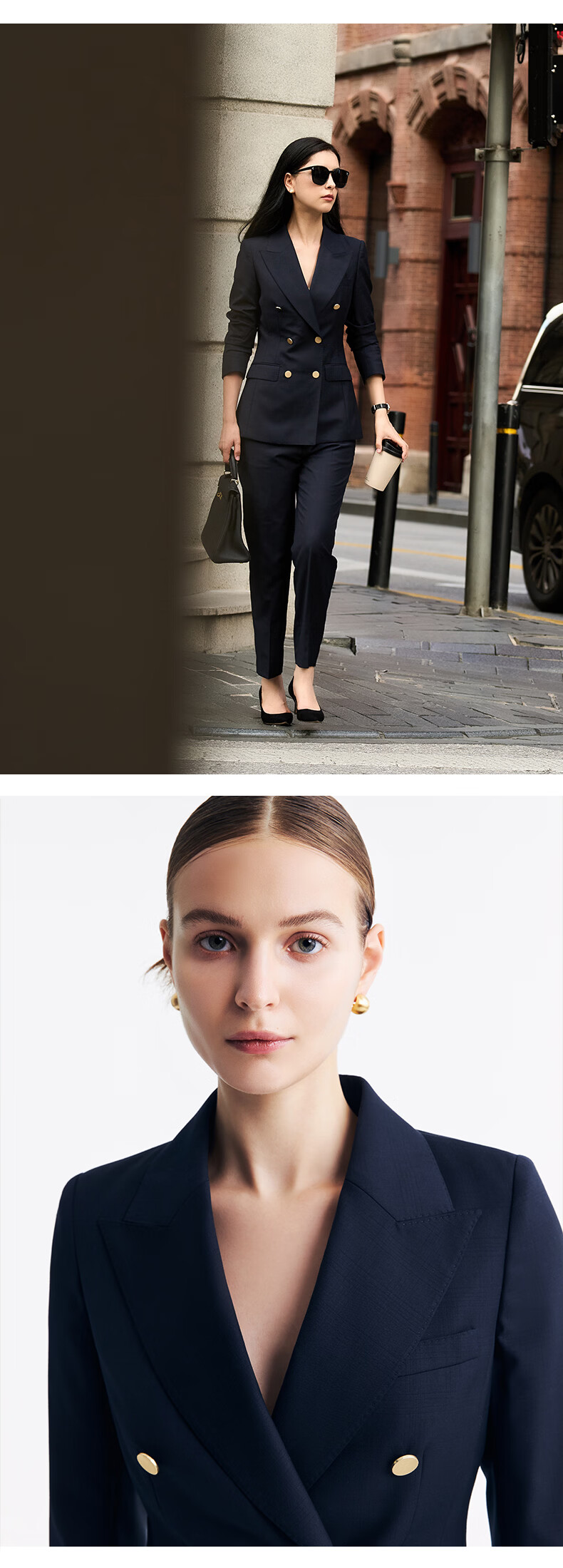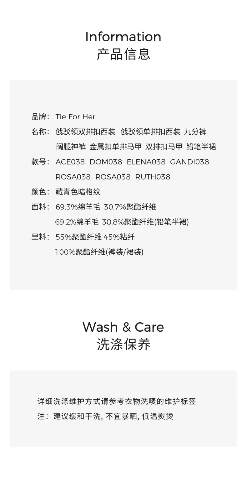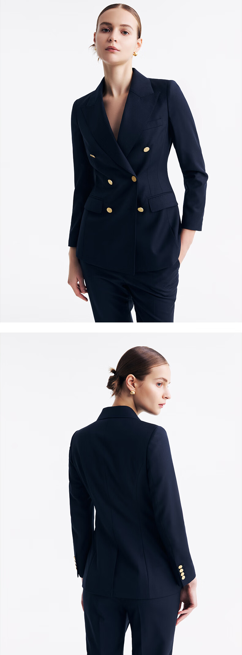 TIE FOR HER luxury series color number 038 Wu Qianyu style navy dark plaid wool commuter suit navy blue suit DOM038 M