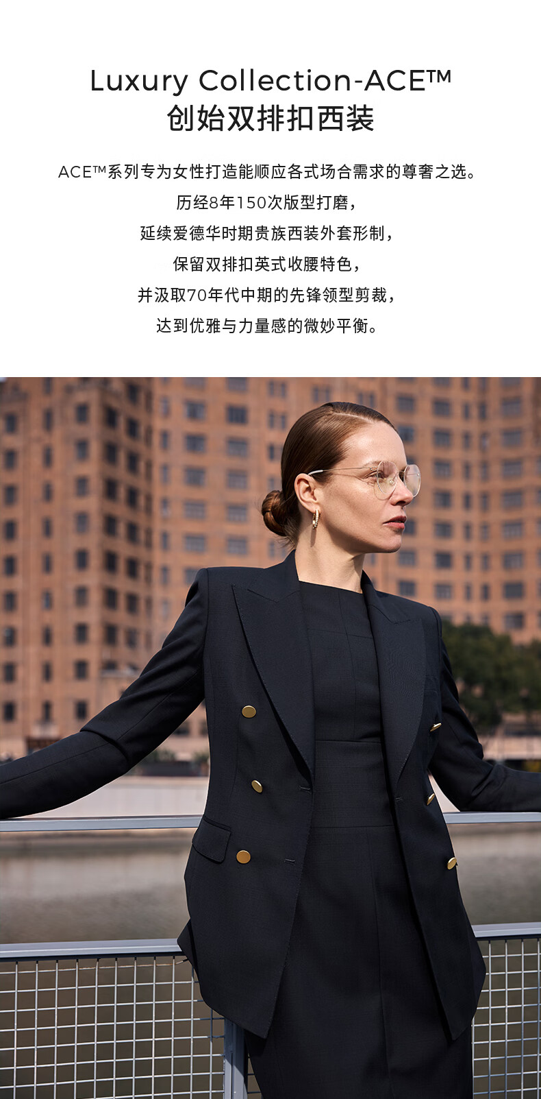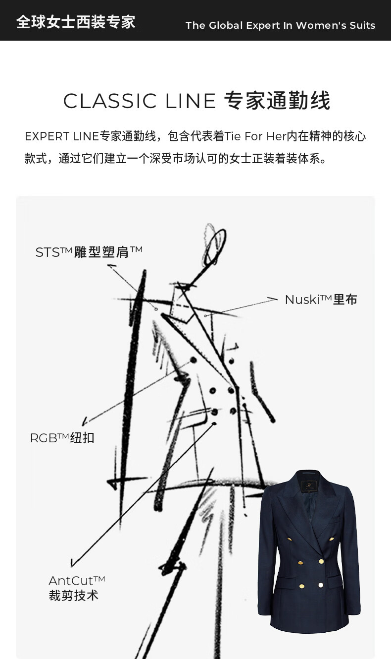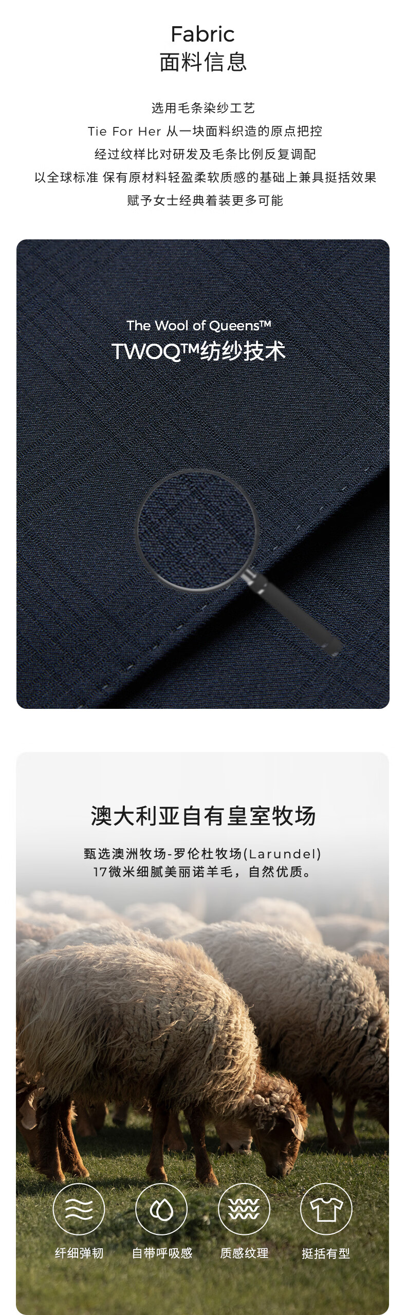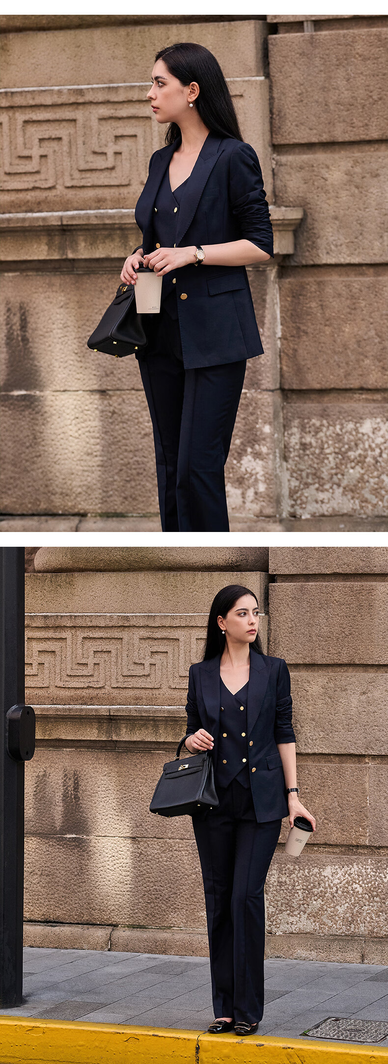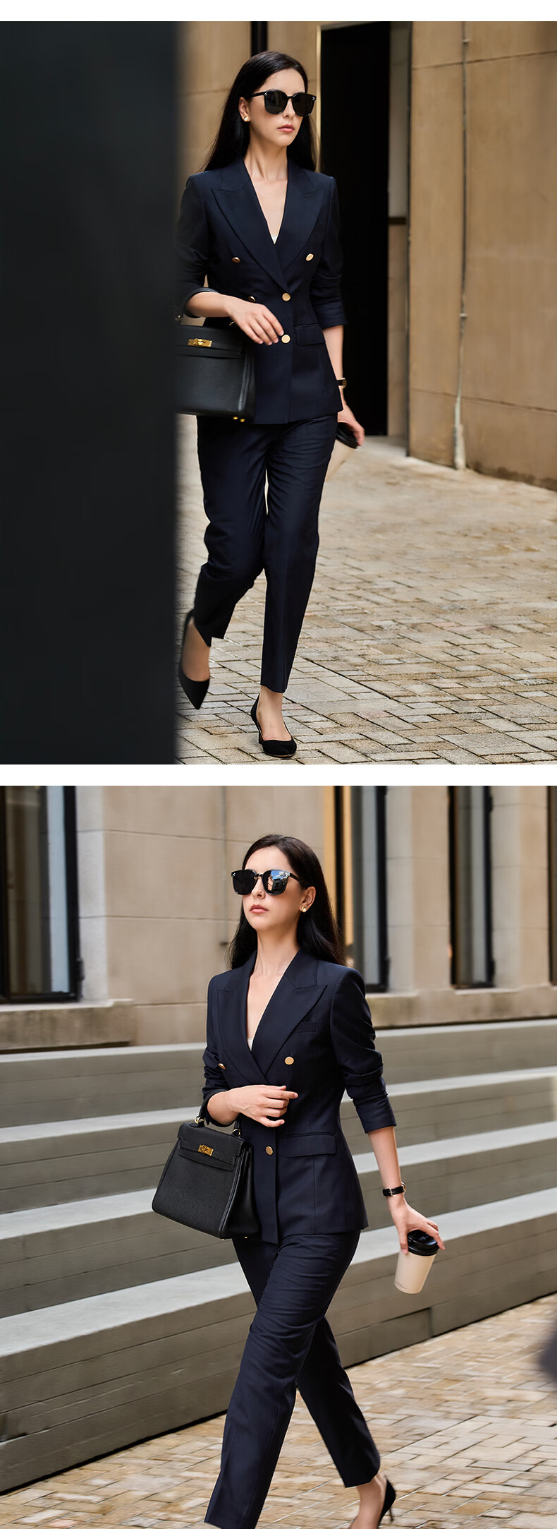 TIE FOR HER luxury series color number 038 Wu Qianyu style navy dark plaid wool commuter suit navy blue suit DOM038 M