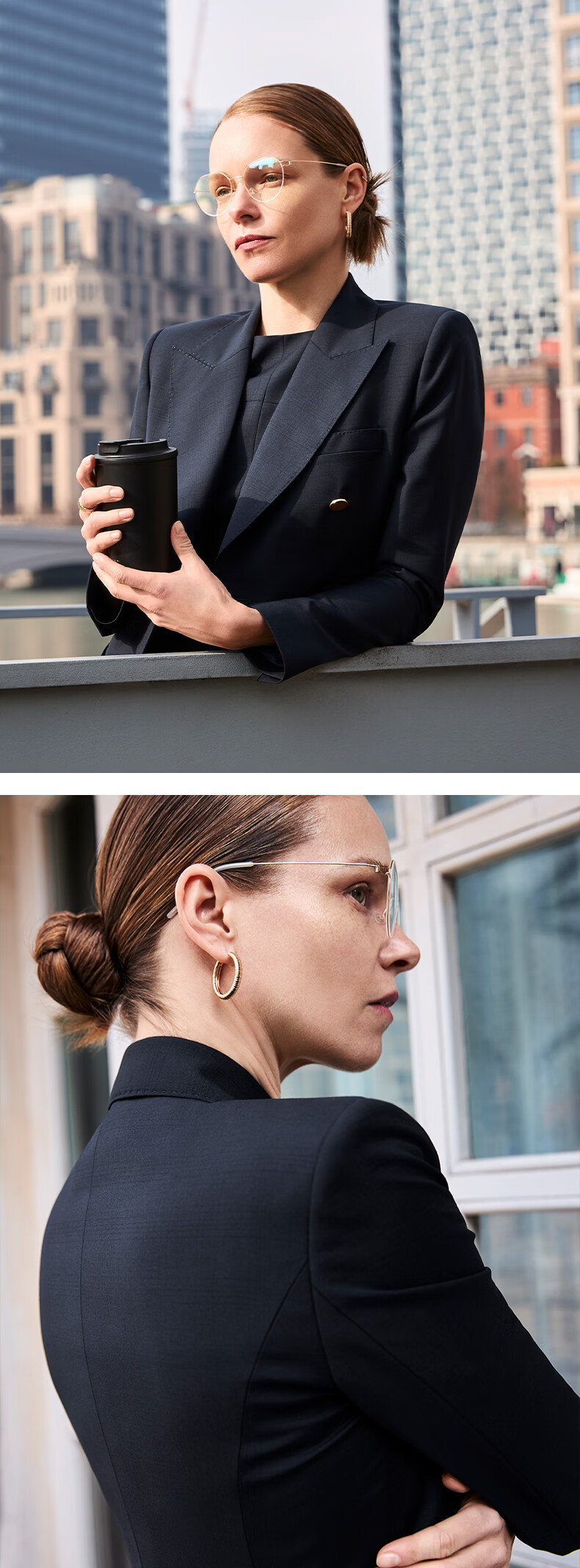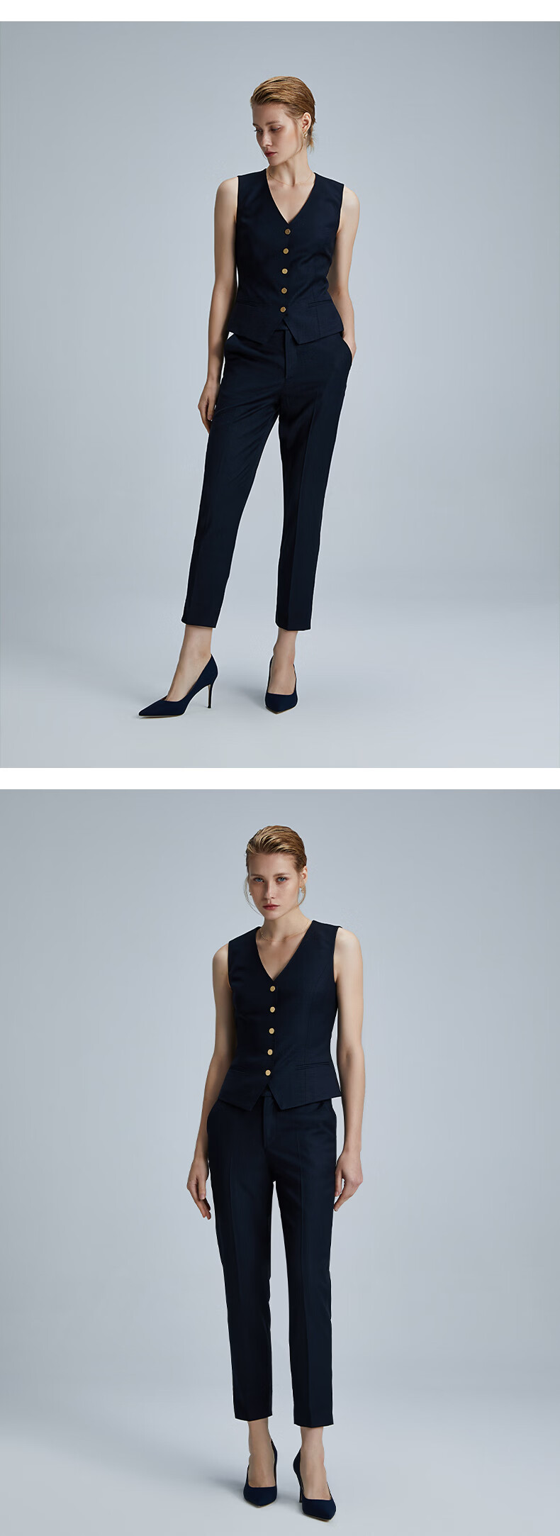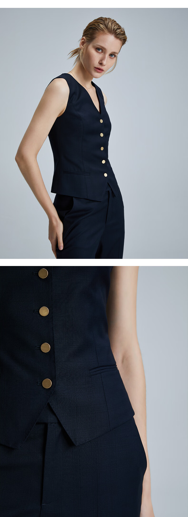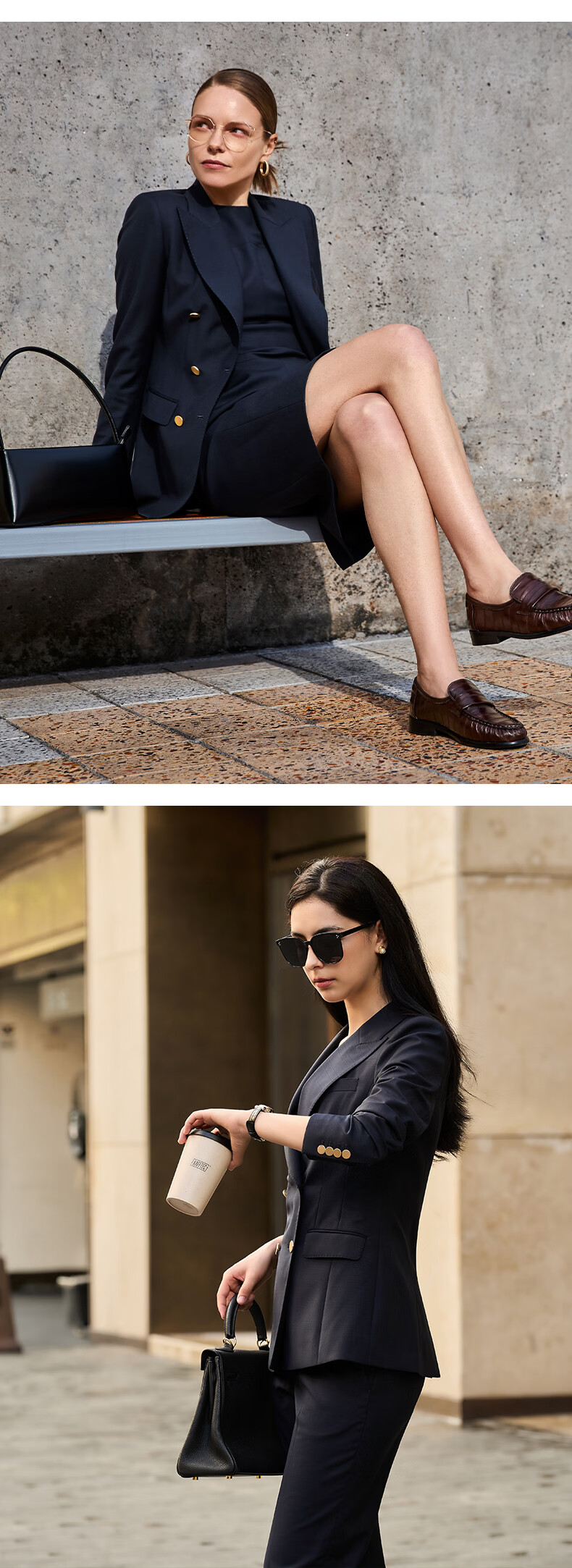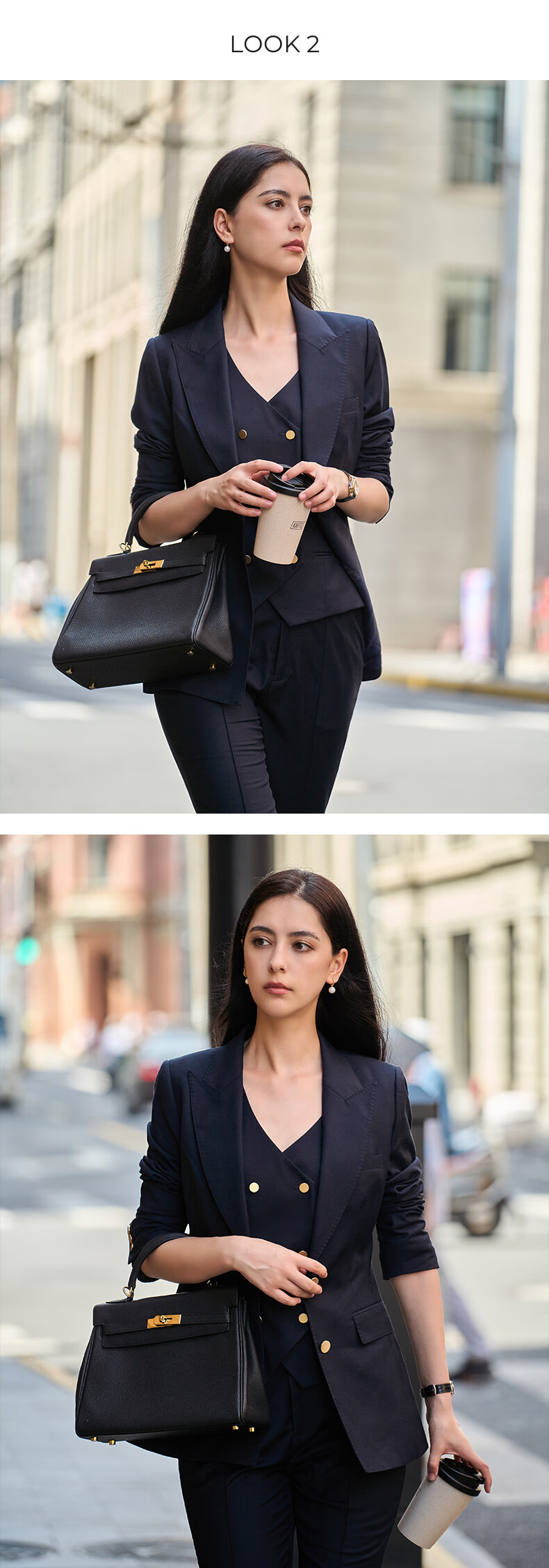 TIE FOR HER luxury series color number 038 Wu Qianyu style navy dark plaid wool commuter suit navy blue suit DOM038 M