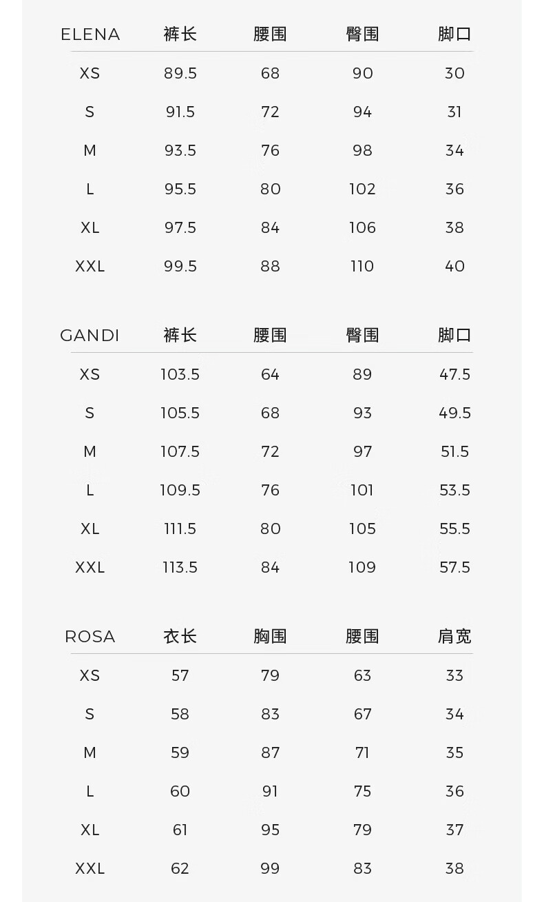 Outseam (cm) 99 cm 101.5 cm 104 cm 106.5 cm 109 cm