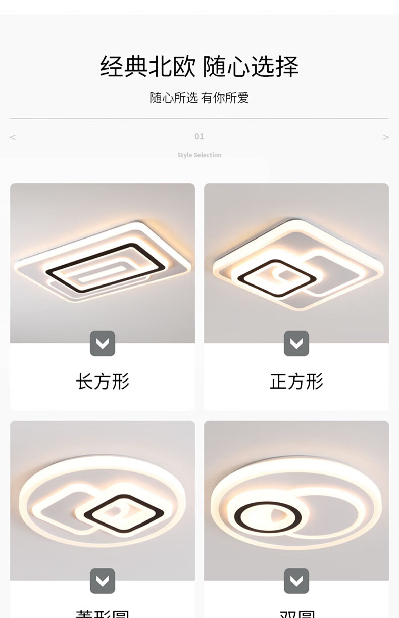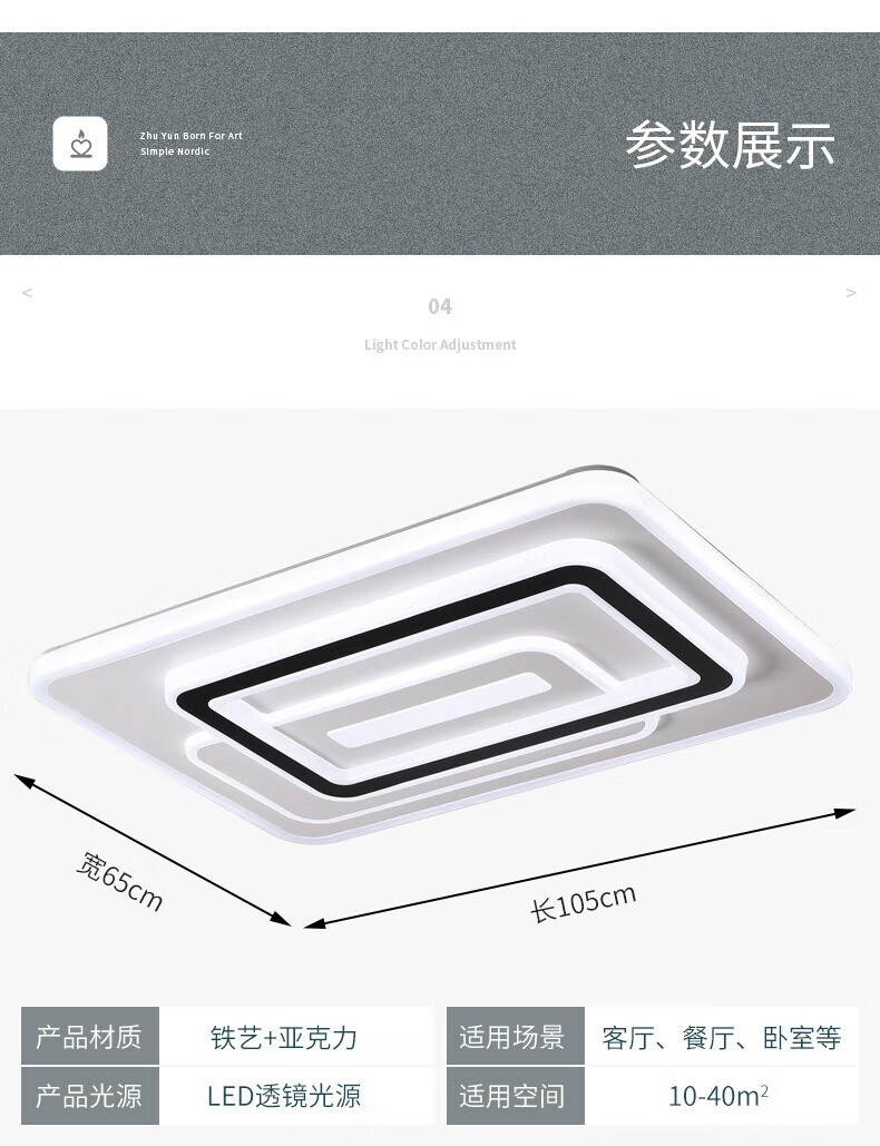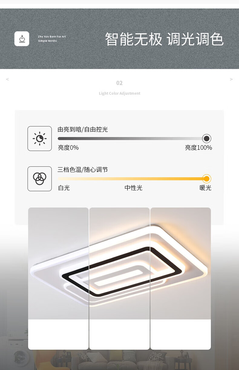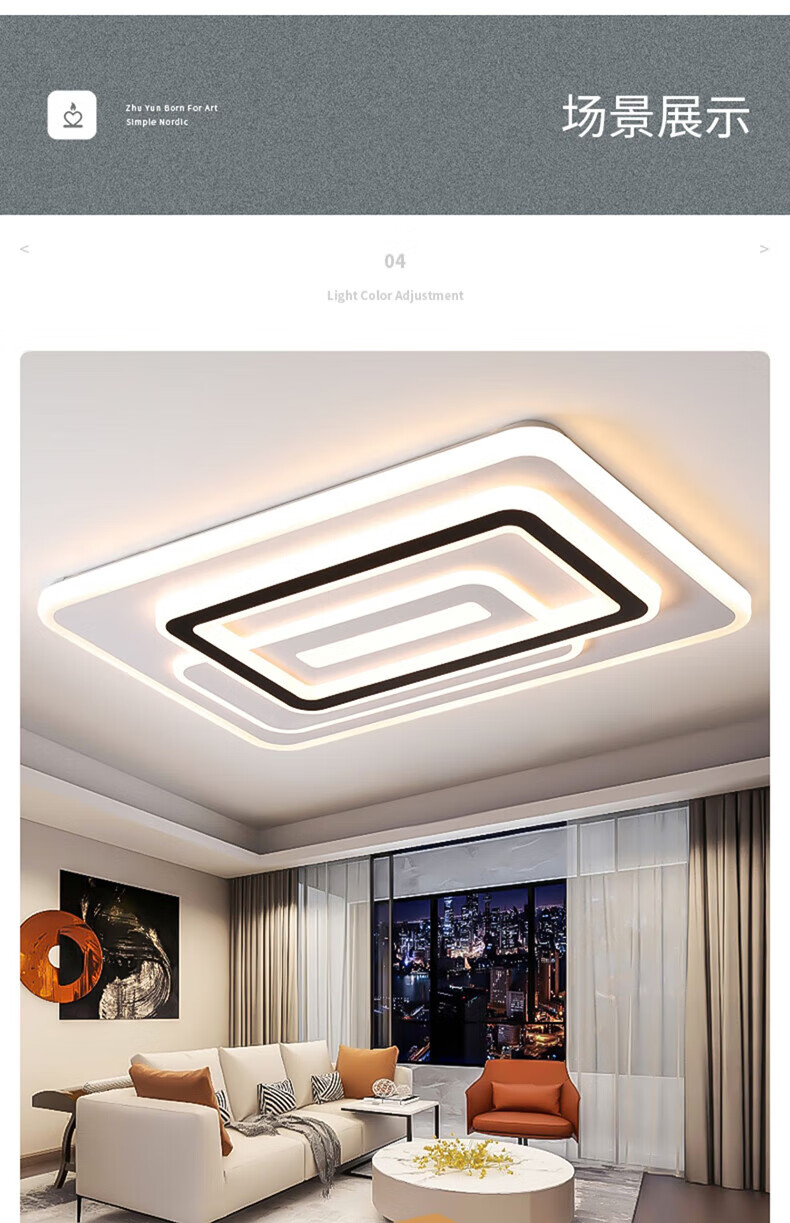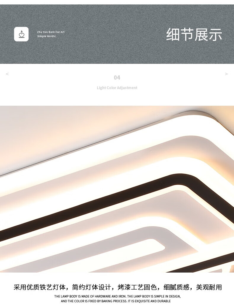 HULDRAled ceiling lamp room bedroom lamp main living room lamp hall modern simple atmosphere 2024 new Zhongshan lamp Meiling 90*60cm three-color adjustable 96W*2