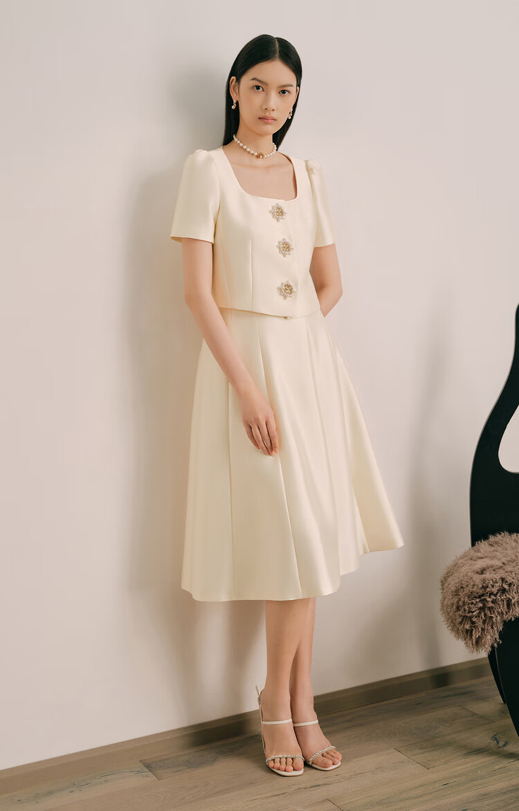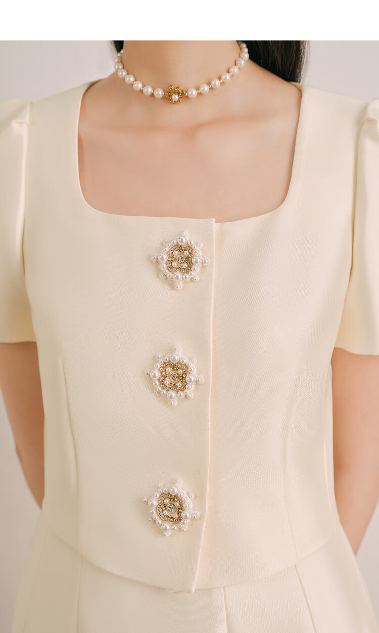 OBBLIGATO Olivia summer one-button short shoulder pad blazer single skirt off-white L