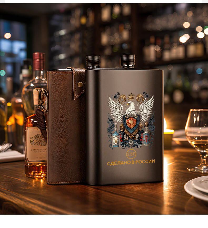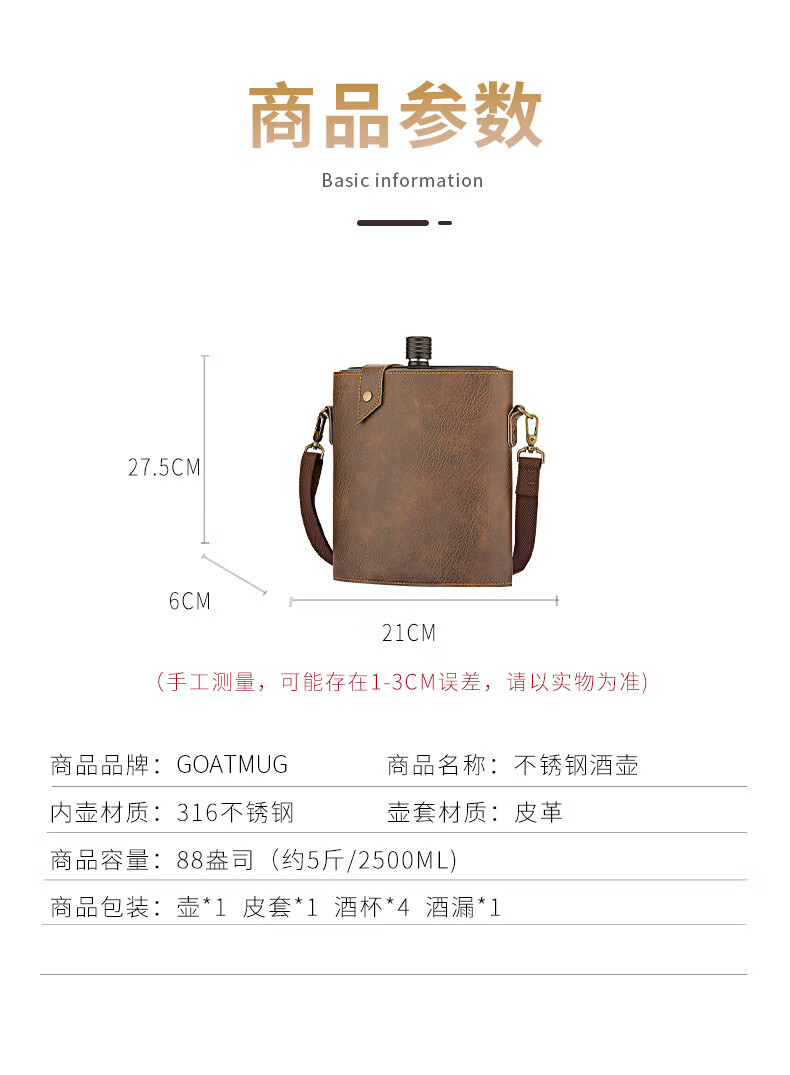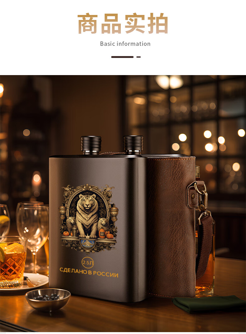 GOAT MUG Russian 316 stainless steel wine bottle portable household thickening 3Jin Jin equals 0.5kg 5Jin Jin equals 0.5kg Liquor bottle outdoor 5Jin Jin equals 0.5kg 316 steel imitation leather Longteng Sihai