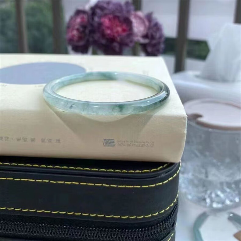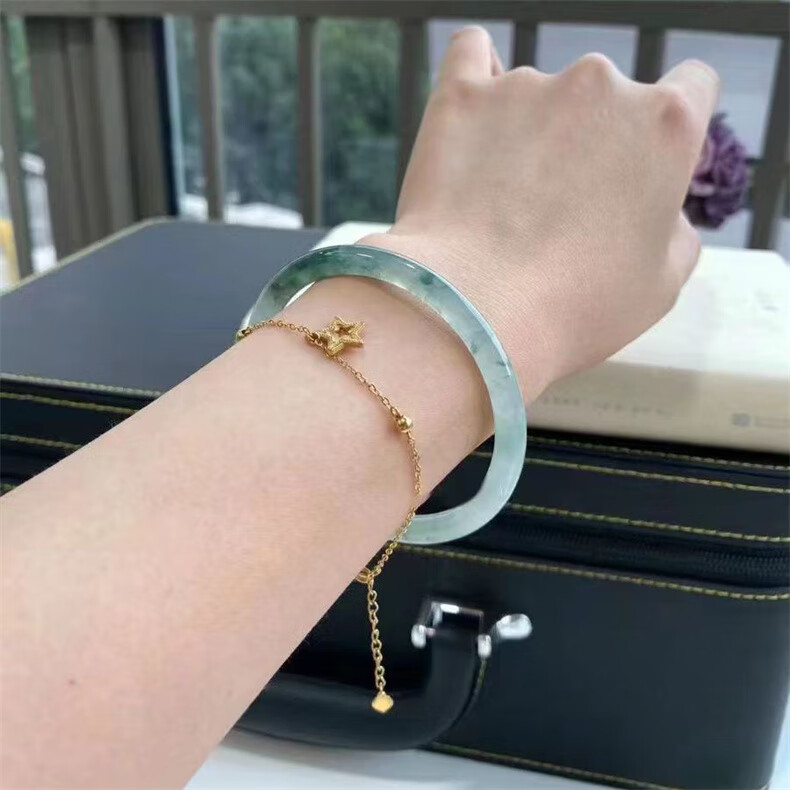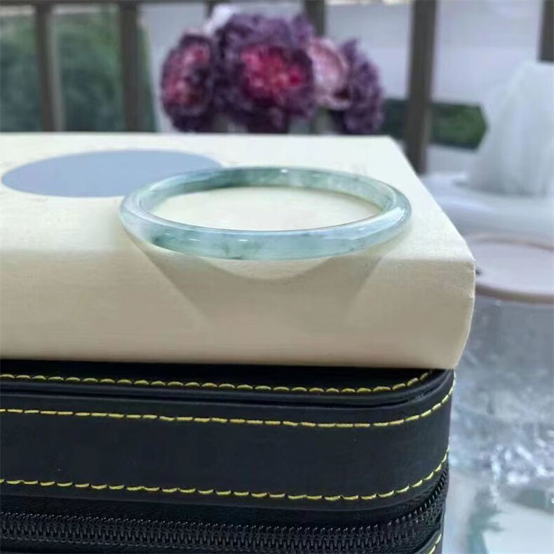 CHOMEL KINSEY Myanmar Jade Bracelet Women's Oil Green Thin Round Jade Bracelet Processed Beauty Jade Bracelet Jingle Bracelet Chinese Valentine's Day Gift Jade Bracelet Inner Diameter 58-59mm (With Appraisal Certificate)