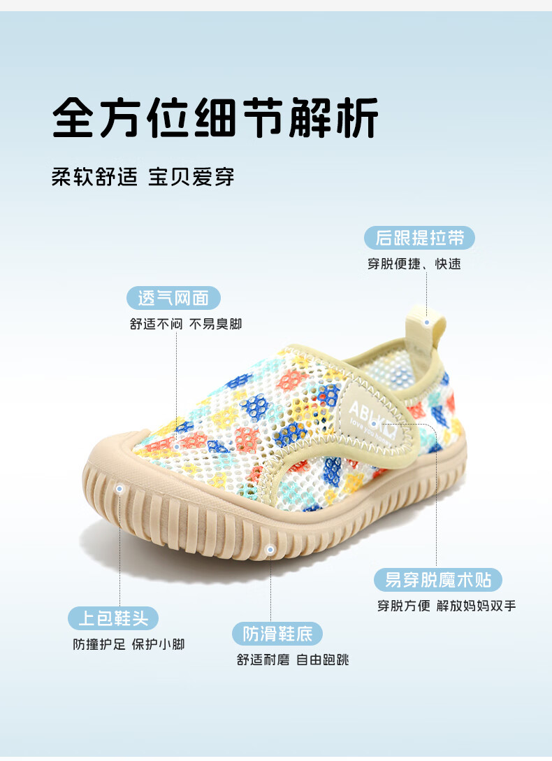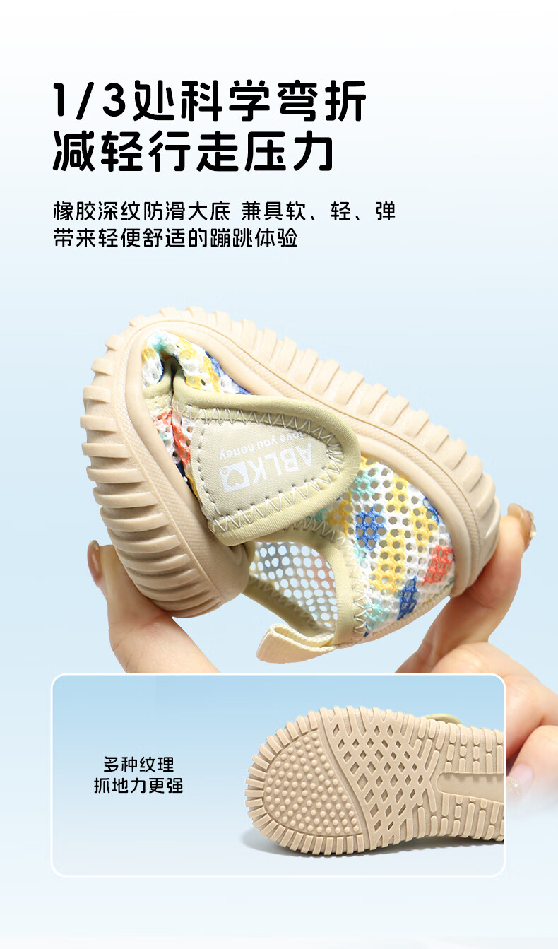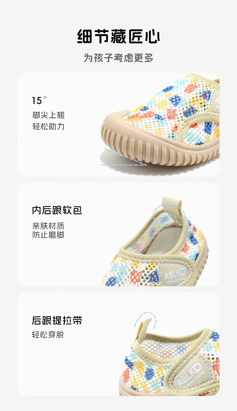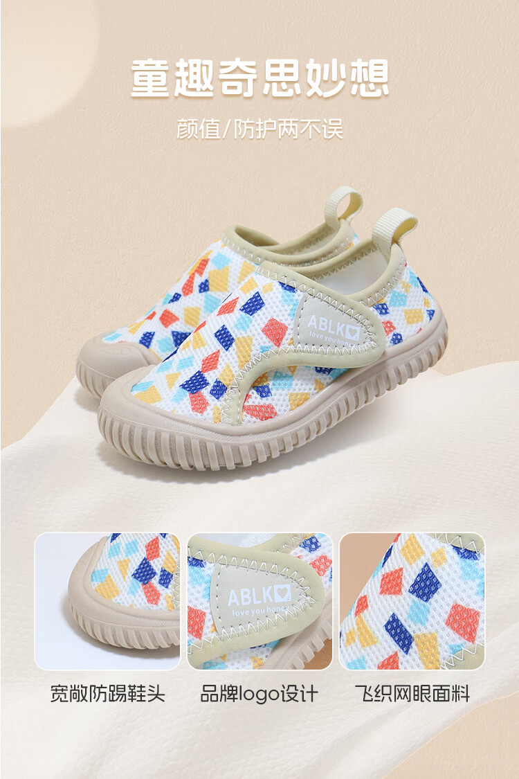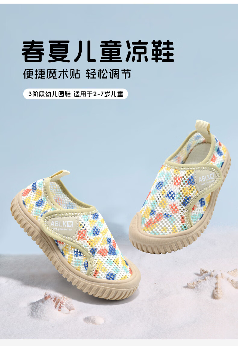 Aibi Leco Kindergarten Shoes Spring and Summer New Breathable Mesh Boys and Girls Shoes Indoor Shoes Soft Sole Non-Slip Children's Baby Sandals Beige Single Liner - Soft Sole Non-Slip 27 Shoe Inner Length 17cm/Suitable for Foot Length 16.5cm