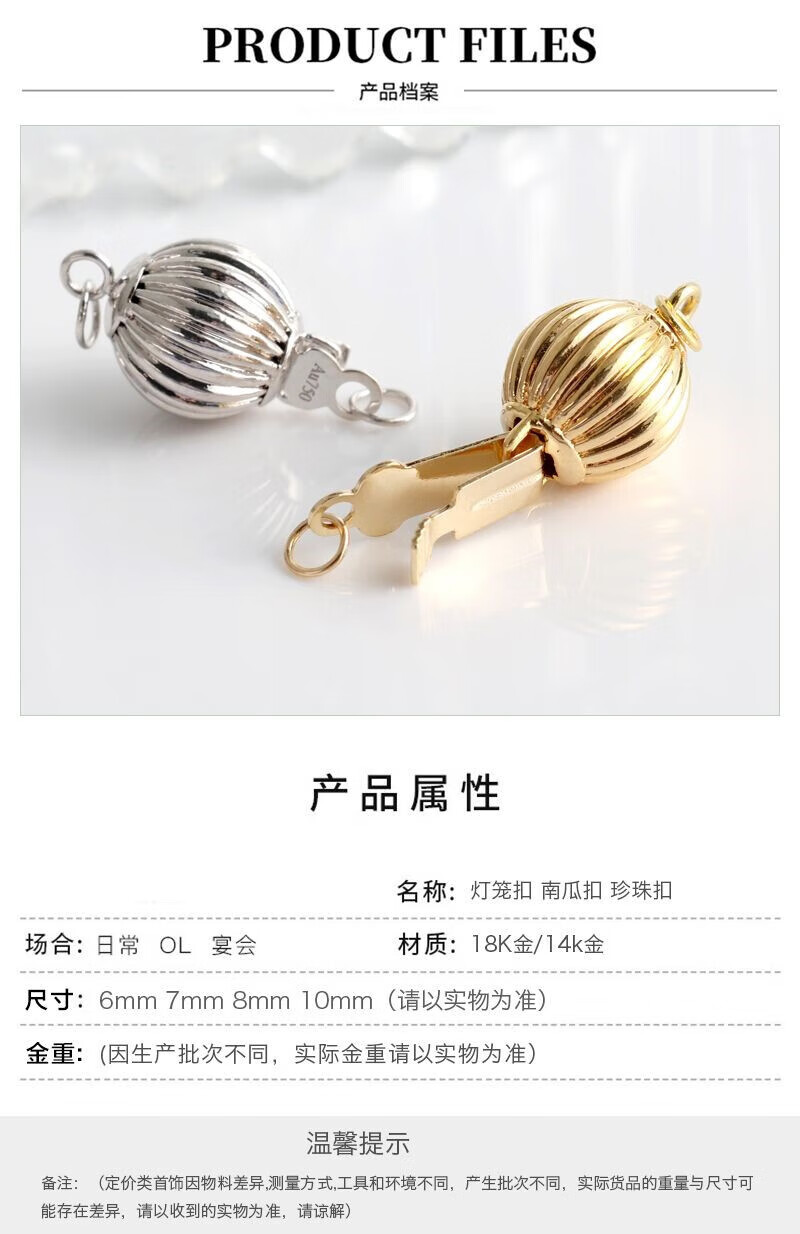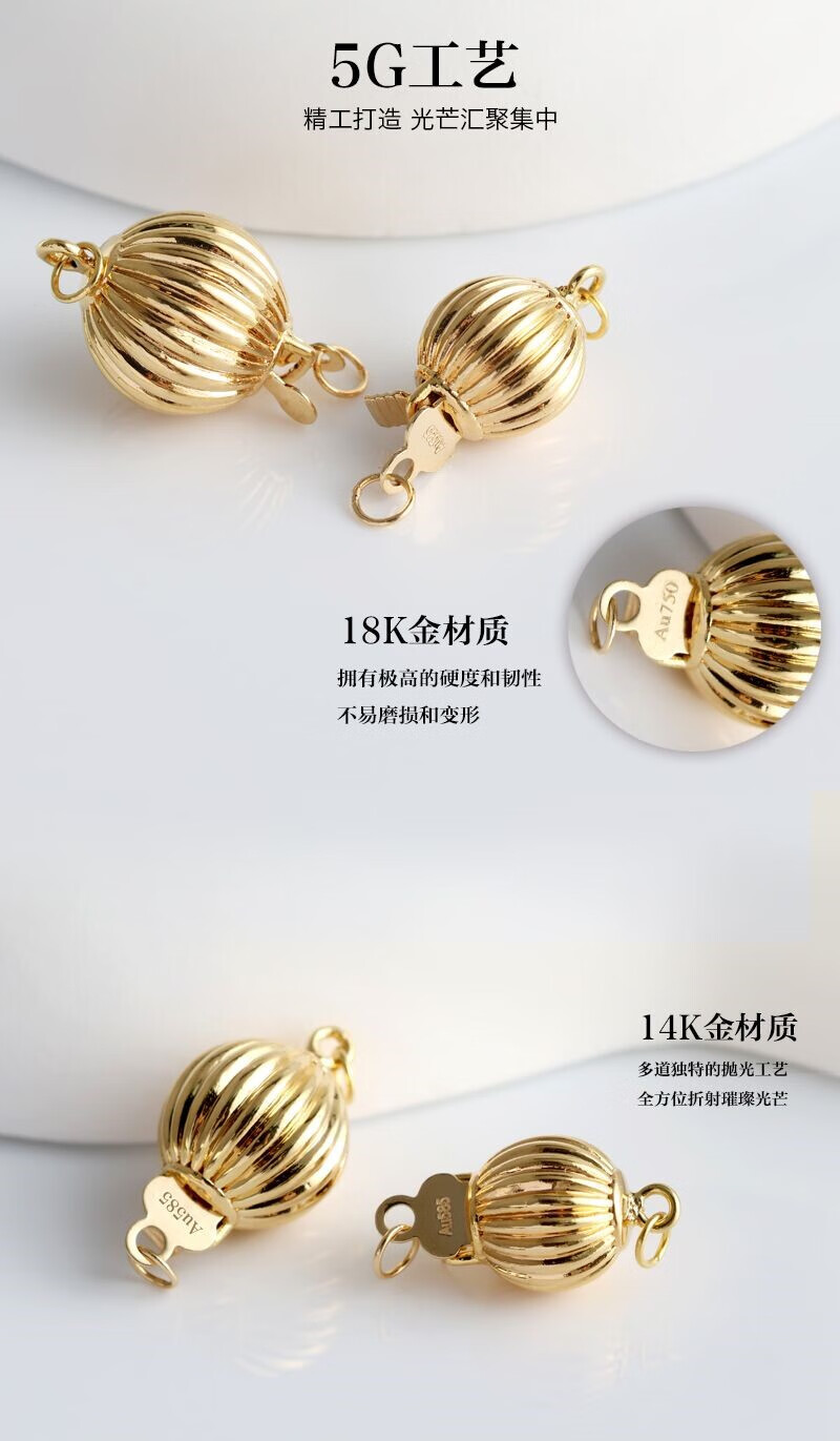 Yuman 18k-14 accessories pearl buckle head lantern buckle DIY handmade beaded gold necklace buckle bracelet connection buckle 14k yellow 9mm 0.46g or so