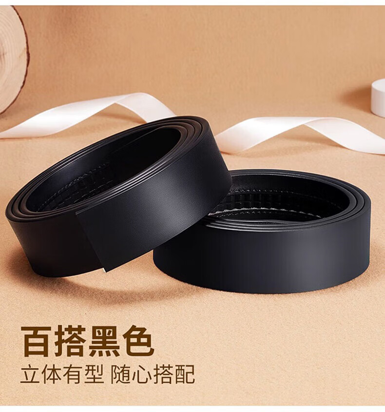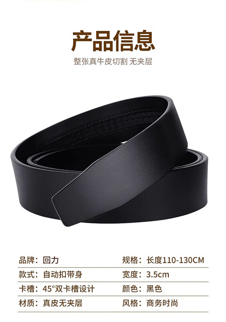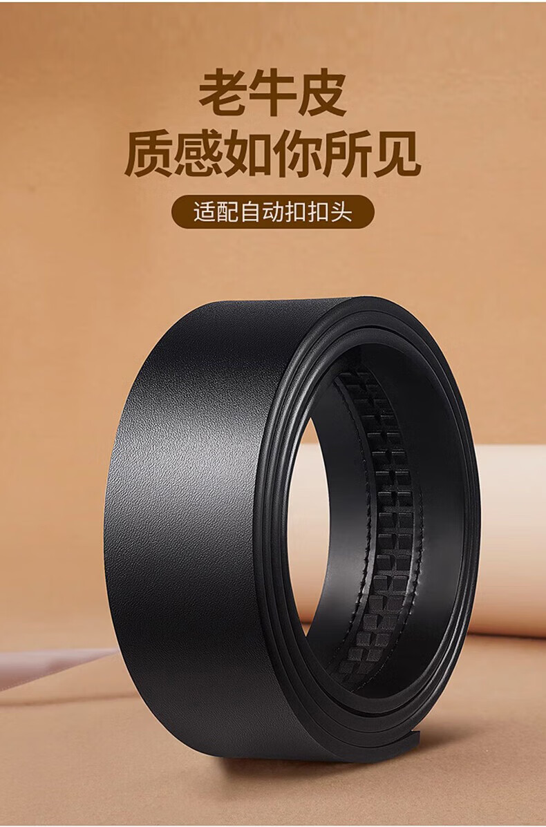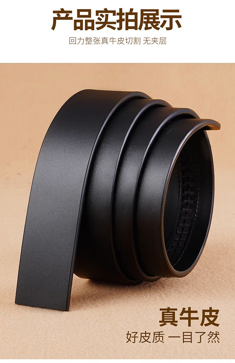 Pull back headless belt for men, genuine leather, automatic buckle, no interlayer, no head, pure belt, cowhide body, no buckle headband, black, 3.5cm wide, 120cm long, can be cut