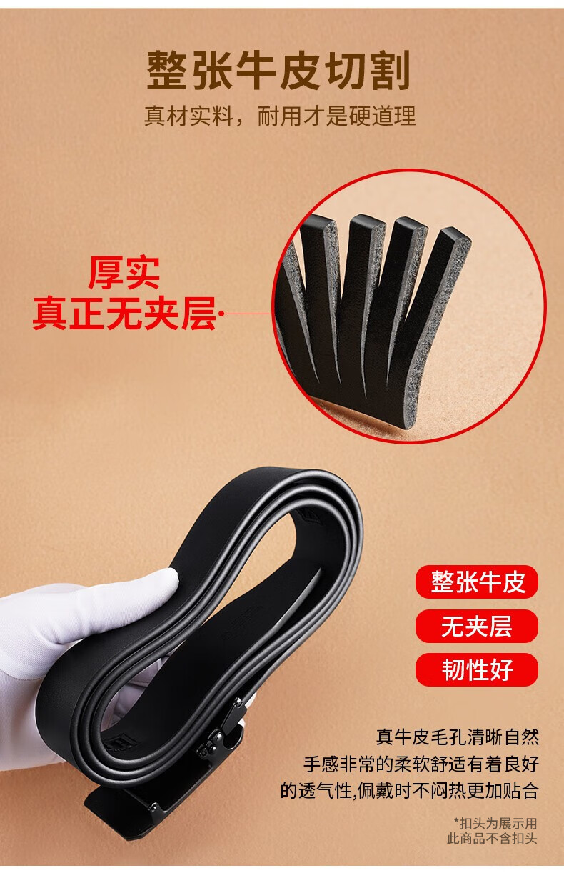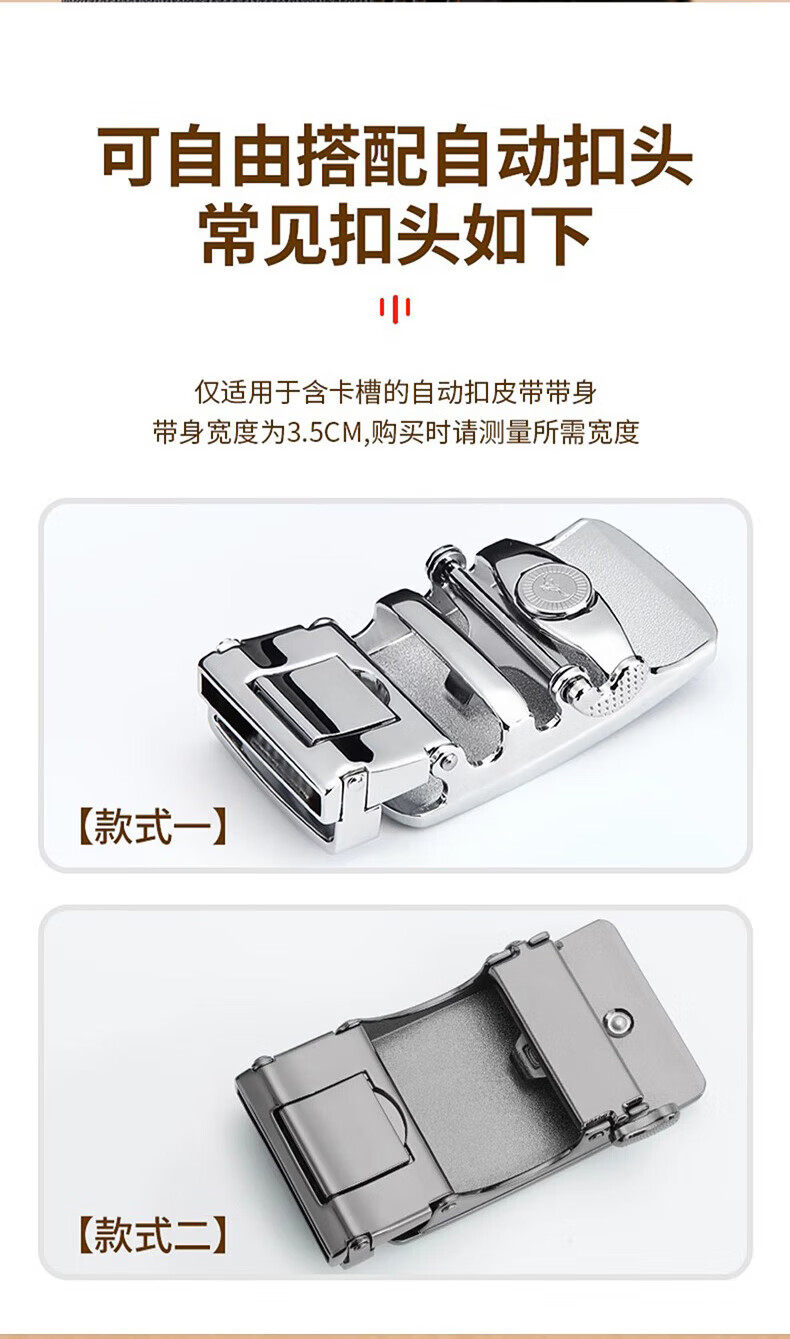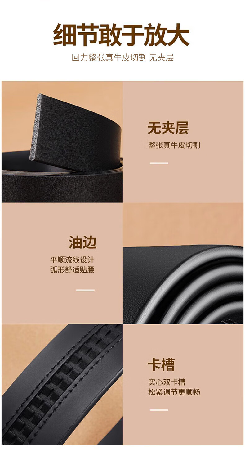 Pull back headless belt for men, genuine leather, automatic buckle, no interlayer, no head, pure belt, cowhide body, no buckle headband, black, 3.5cm wide, 120cm long, can be cut