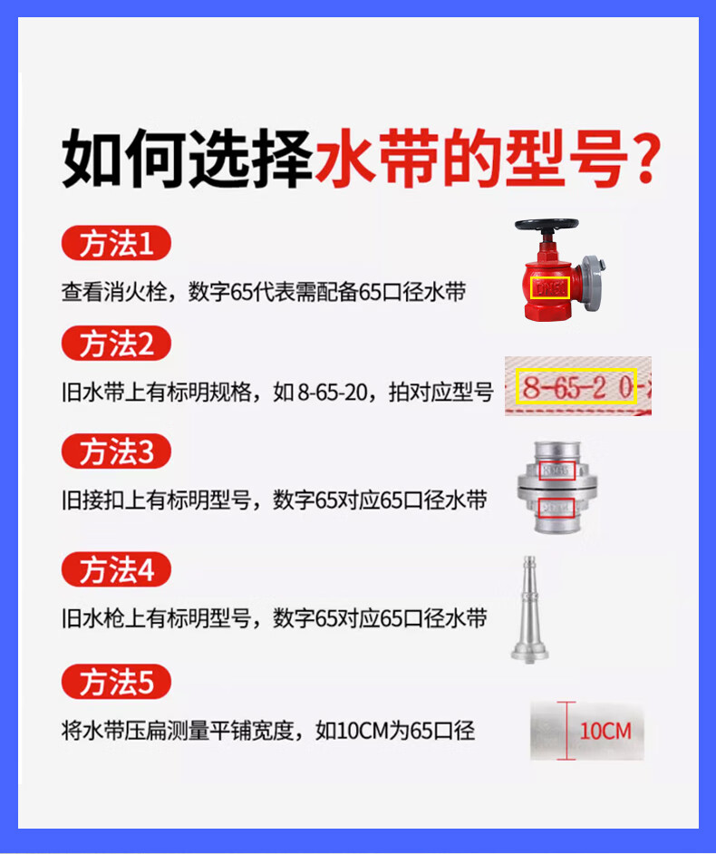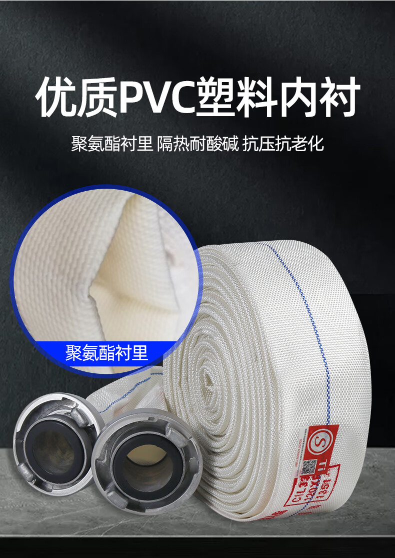 Fire hose 8-65-25 meters national standard thickened connector high pressure water pipe water bag 2/3 inch fire hydrant water gun head 50 caliber 20 agricultural irrigation watering hose 8-65-20 national standard water hose + connector
