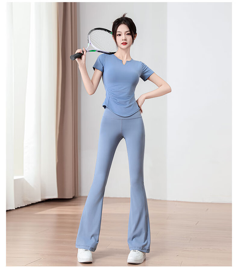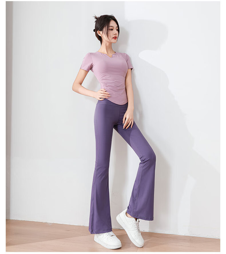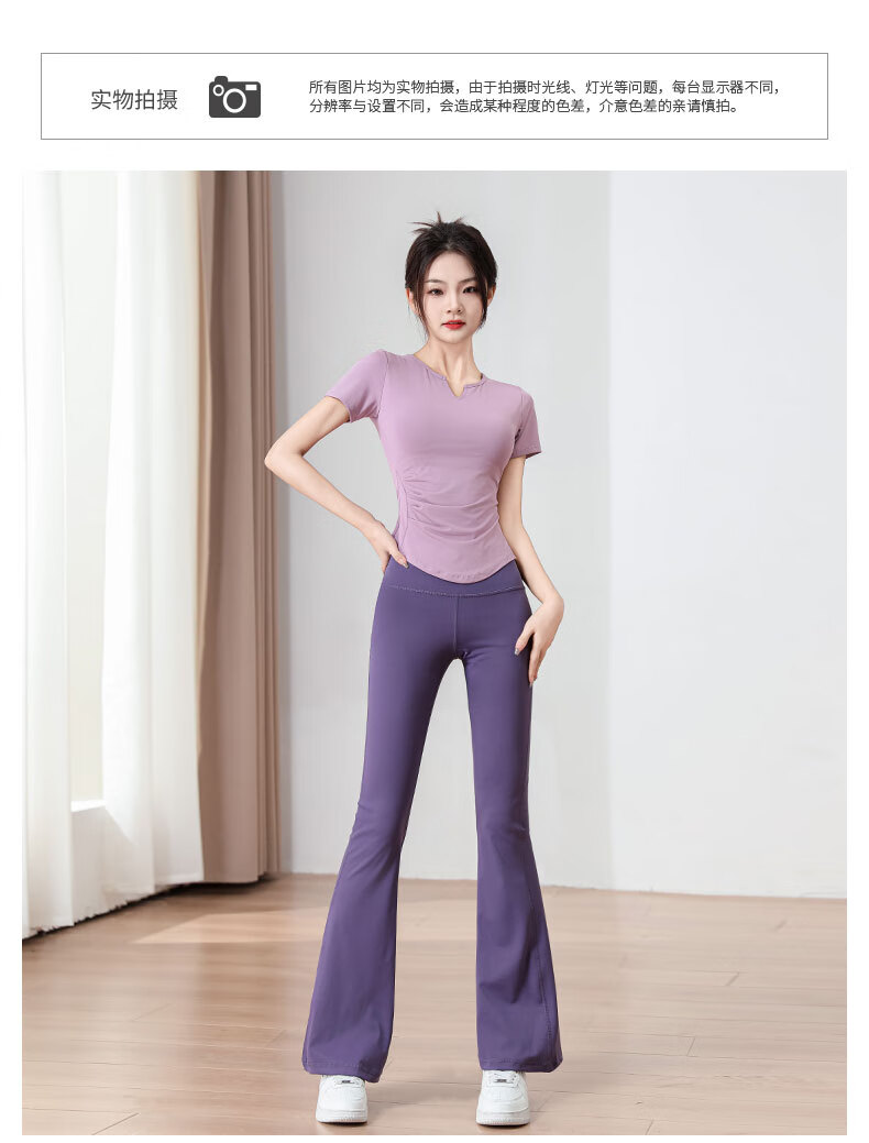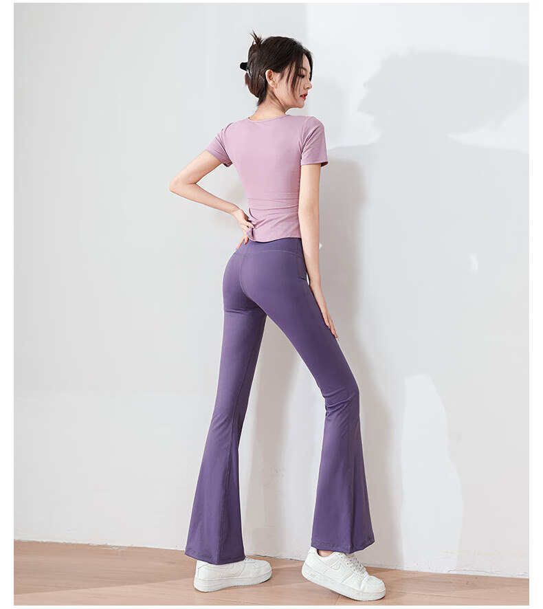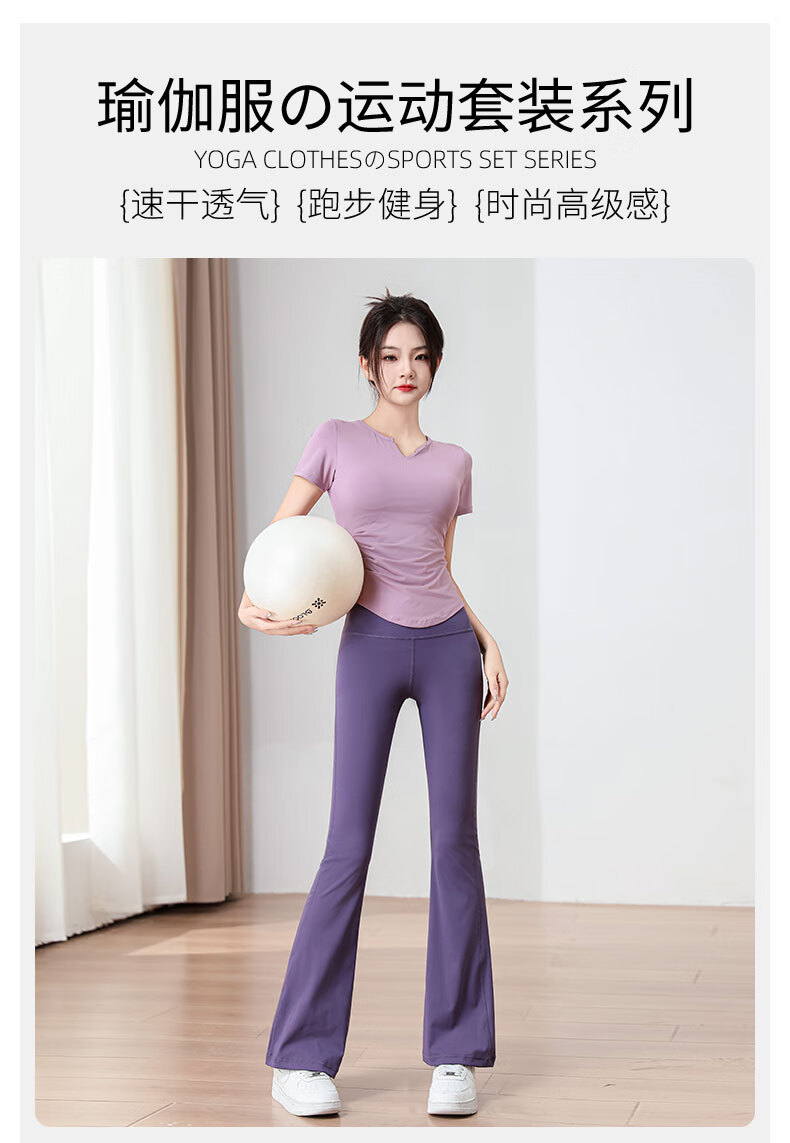 Aimengniao Yoga Wear Women's Suit Pilates Running Sports Fitness Wear Slightly Flared Pants 2024 New Summer Sports Suit Women's Suit Taro Purple + Sauce Eggplant Purple L (Please refer to bust and waist for size selection)