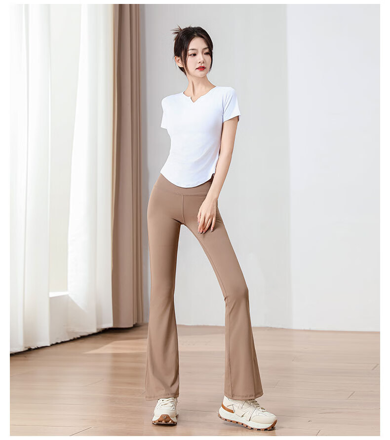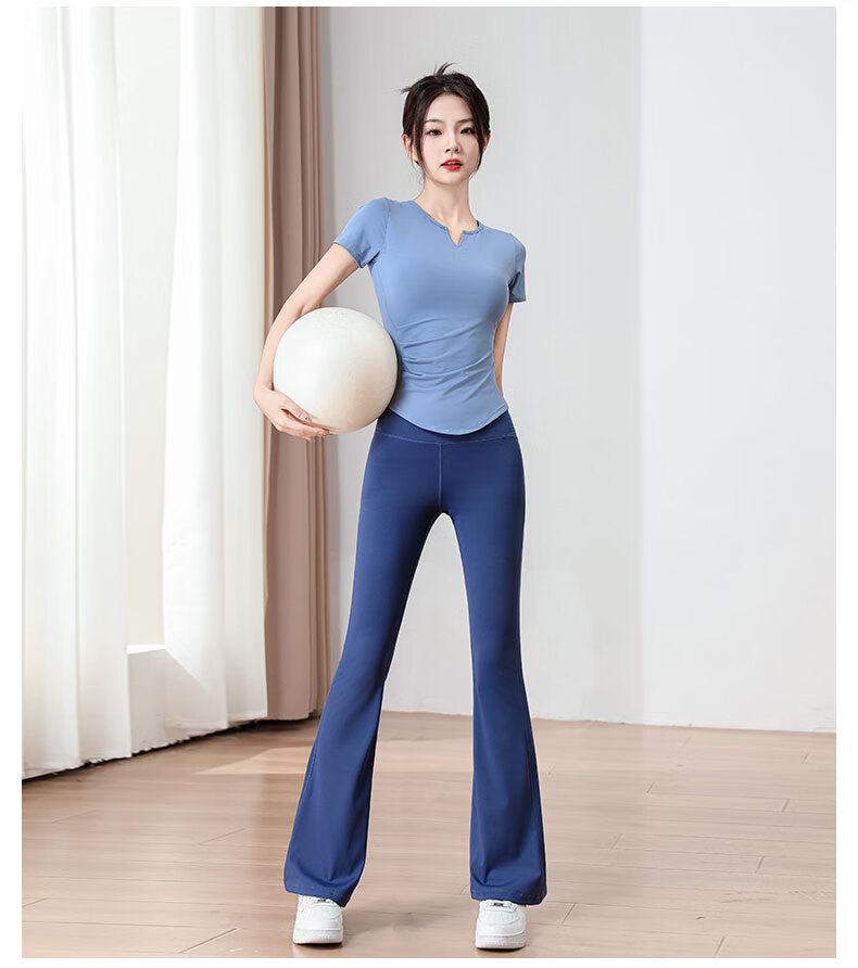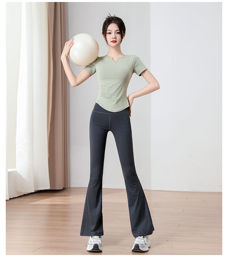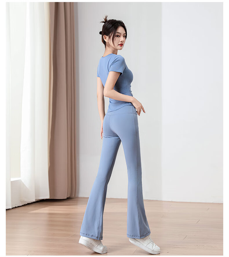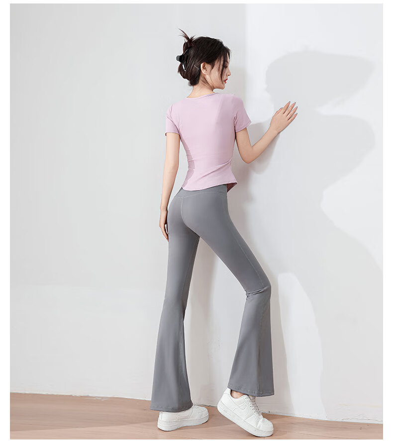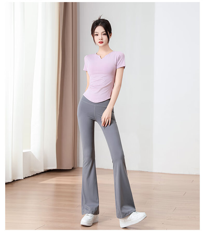 Aimengniao Yoga Wear Women's Suit Pilates Running Sports Fitness Wear Slightly Flared Pants 2024 New Summer Sports Suit Women's Suit Taro Purple + Sauce Eggplant Purple L (Please refer to bust and waist for size selection)