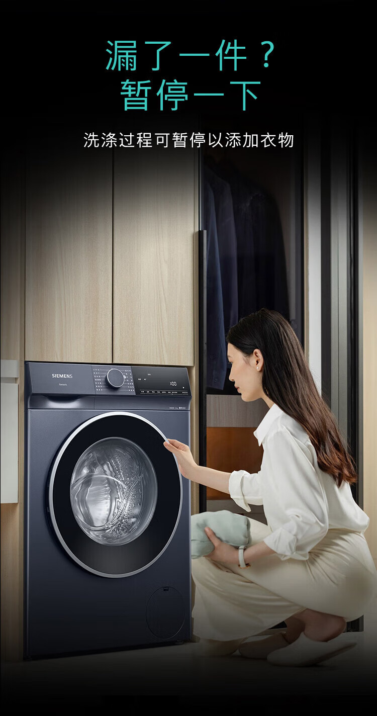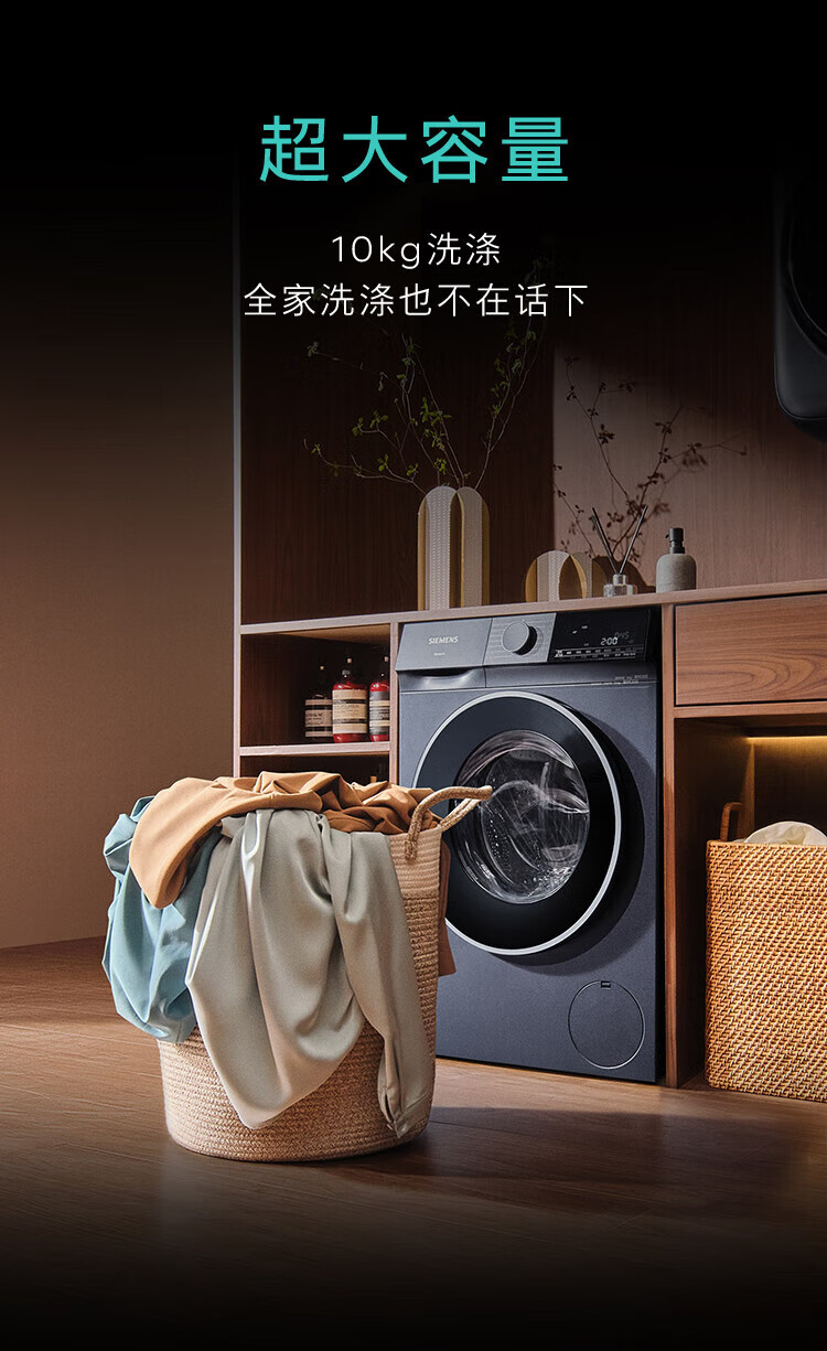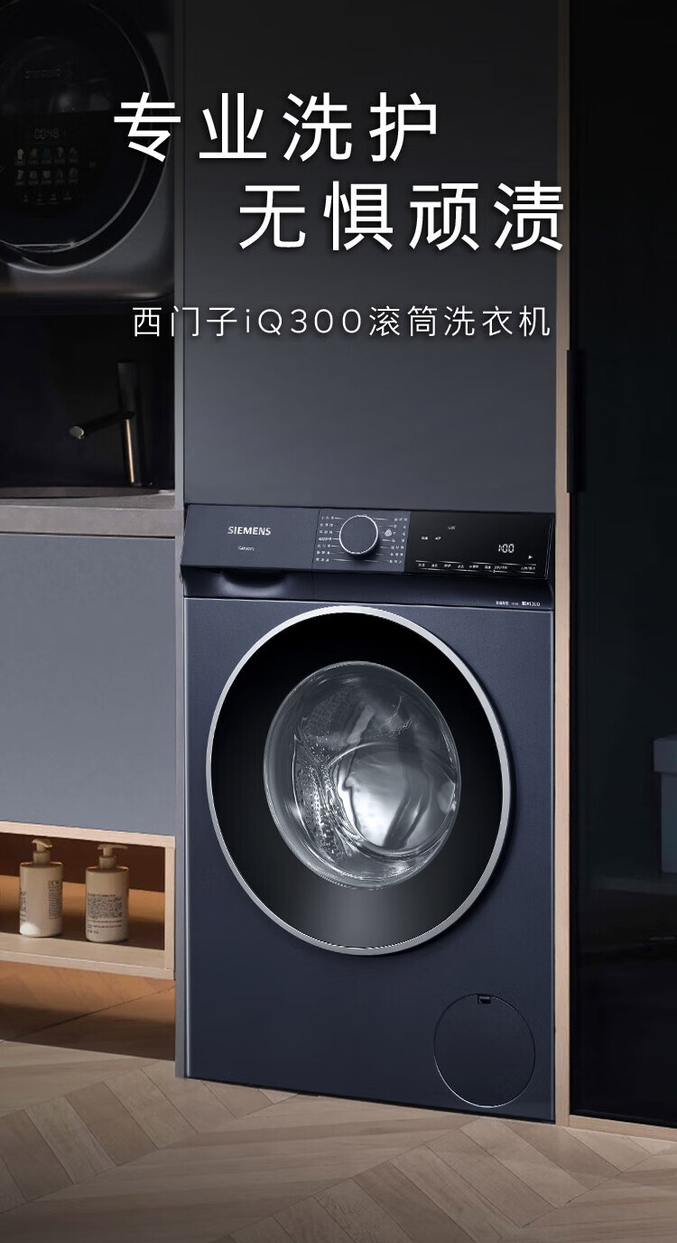 SIEMENS Unbounded Series 10kg drum washing machine household fully automatic inverter washing machine intelligent stain removal powerful mite removal wool green label certification supports national subsidies WG52E1U10W Huyun Blue