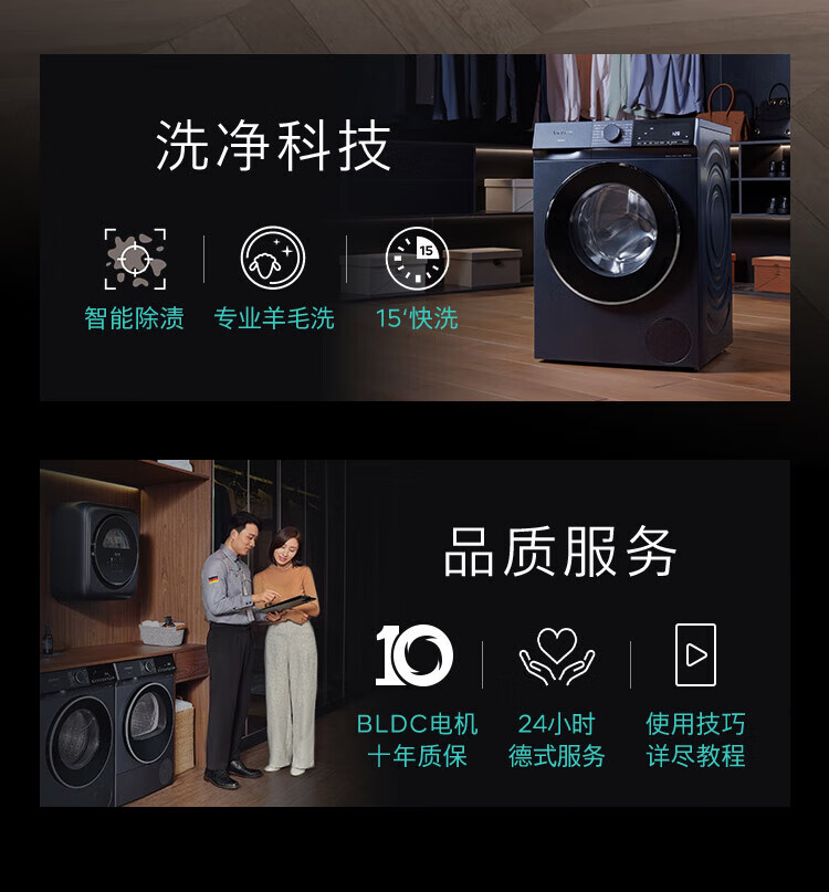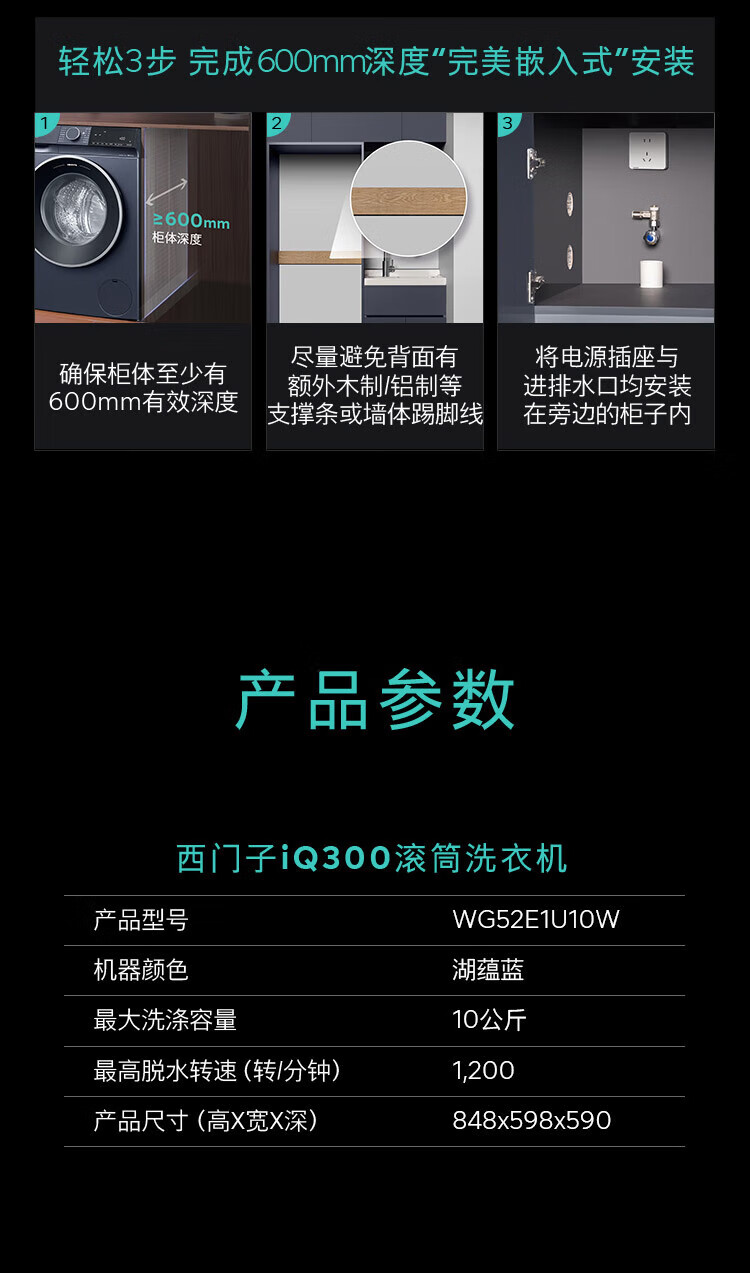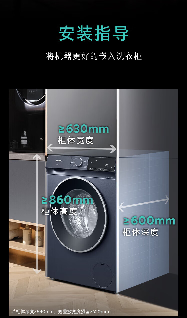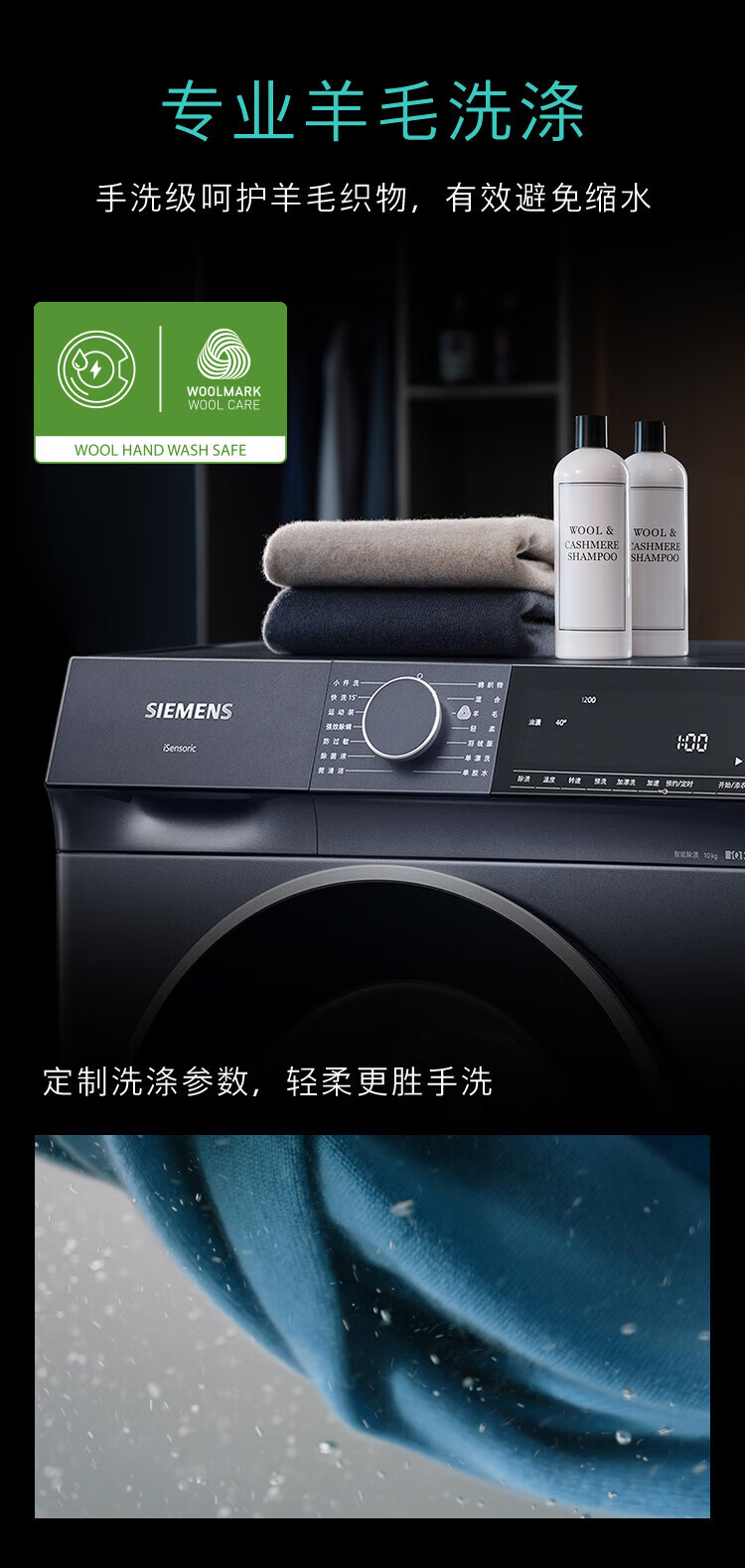 SIEMENS Unbounded Series 10kg drum washing machine household fully automatic inverter washing machine intelligent stain removal powerful mite removal wool green label certification supports national subsidies WG52E1U10W Huyun Blue