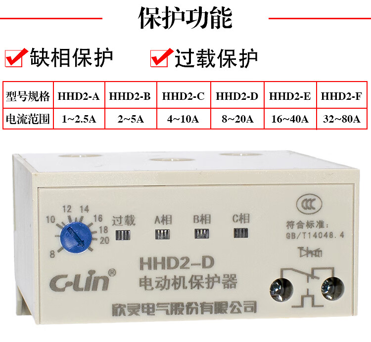 Xinling motor protector HHD2-D/A/B/C/E/F/G full series phase loss overload HHD2-C (4A-10A)
