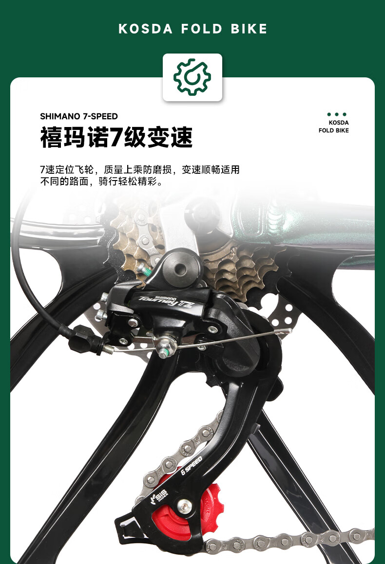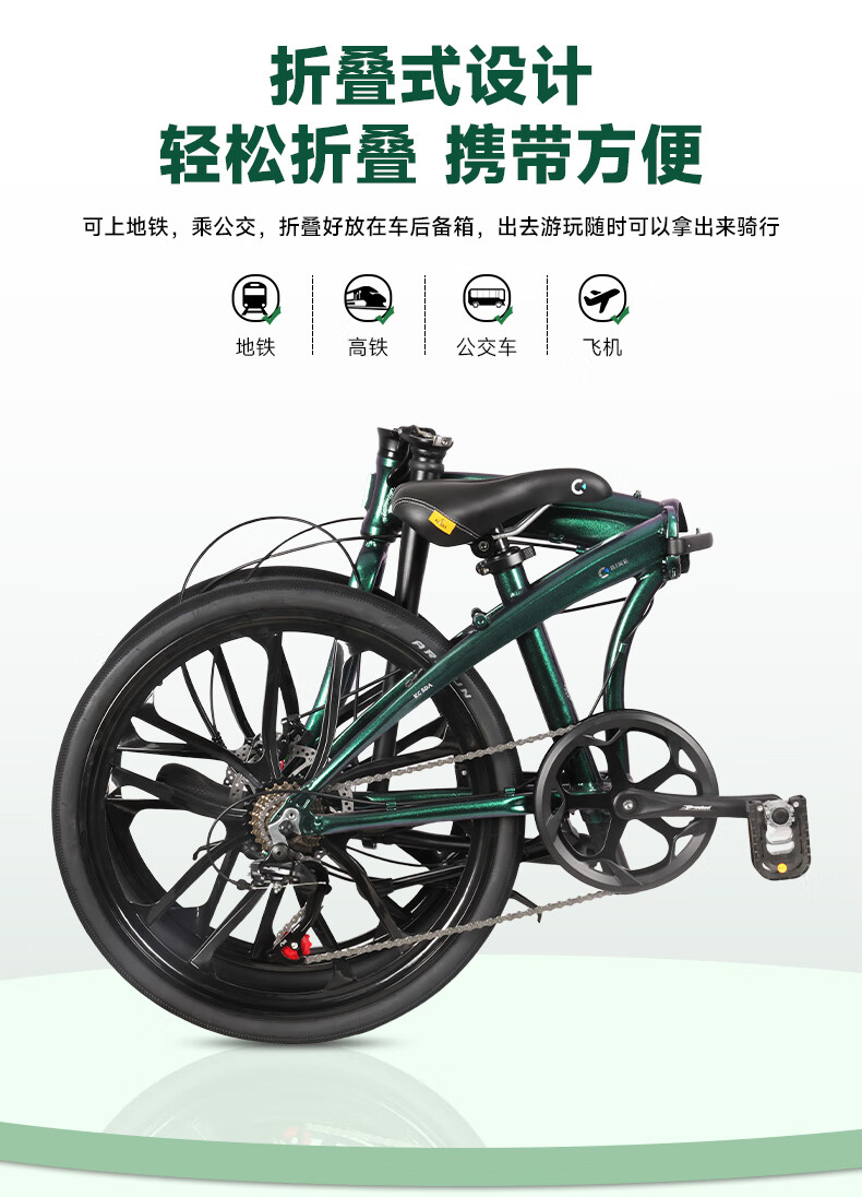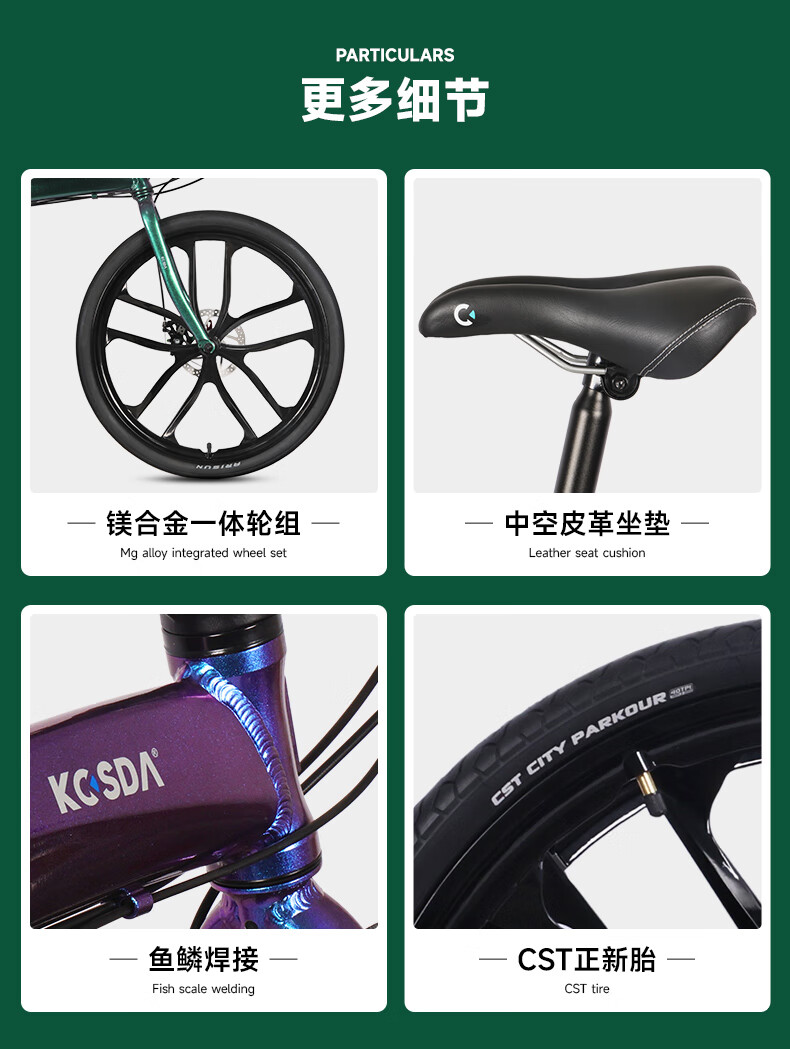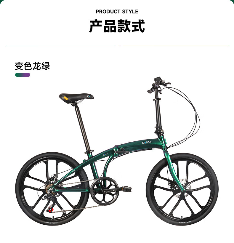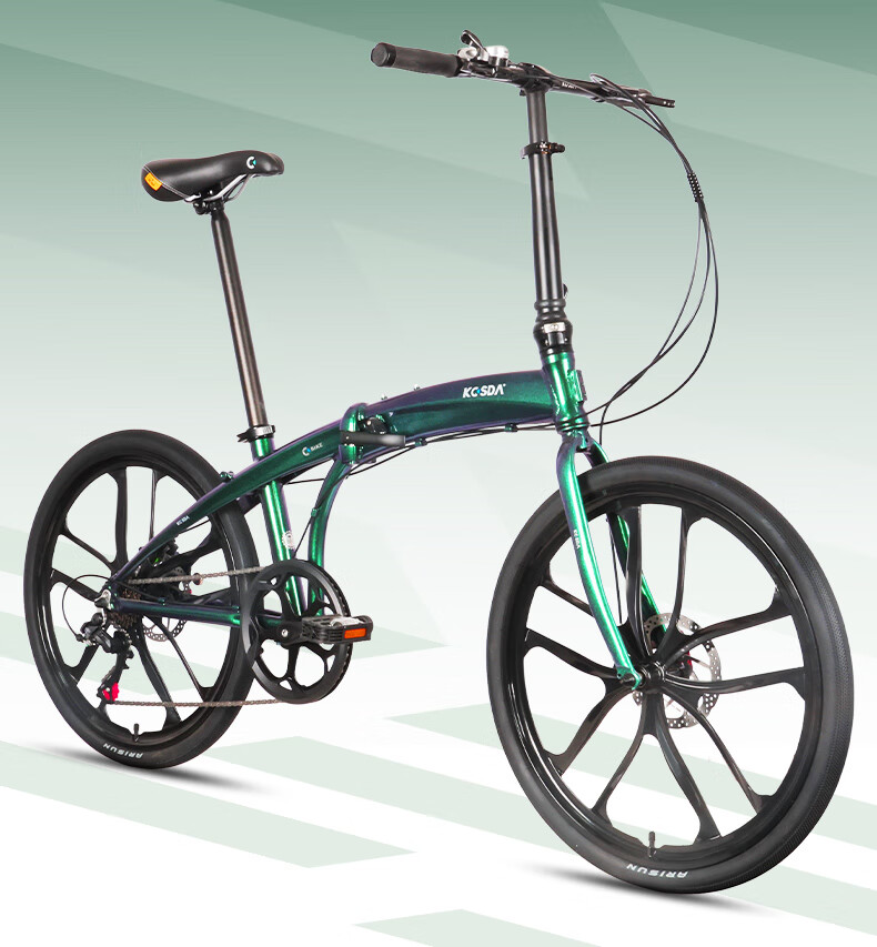 KOSDA 24-inch aluminum alloy portable ultra-light folding adult disc brake variable speed urban commuter one-wheel bicycle 24-inch-KS300-Chameleon Green 7-speed Shimano