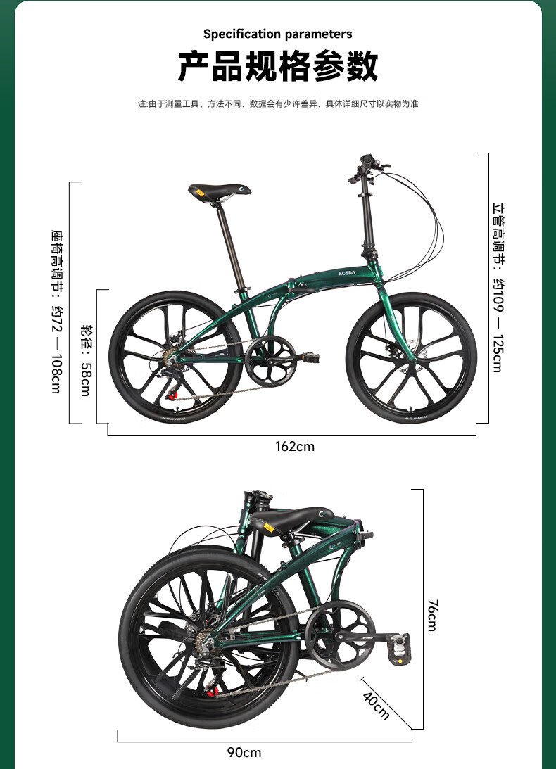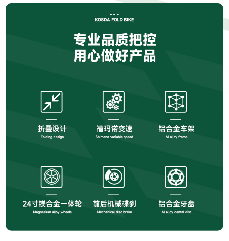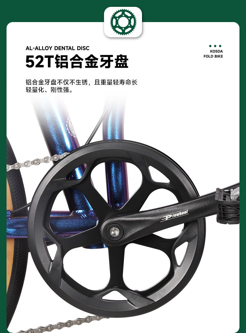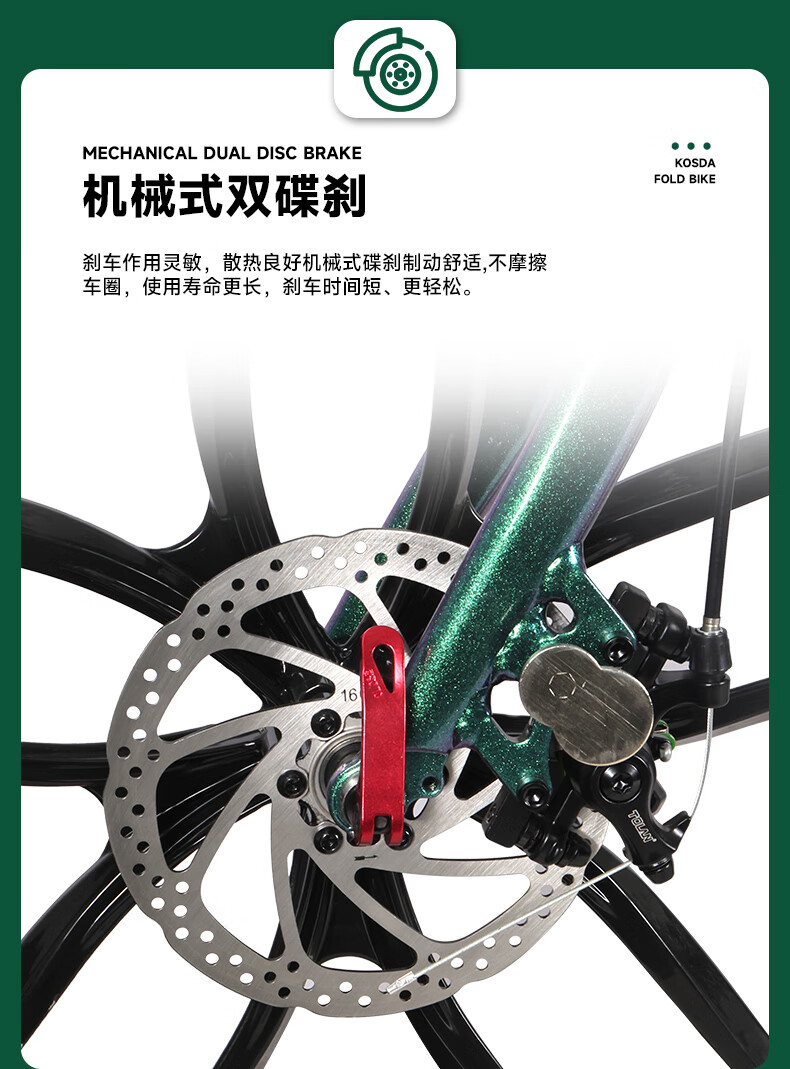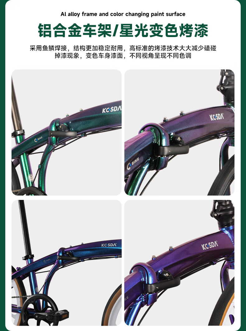 KOSDA 24-inch aluminum alloy portable ultra-light folding adult disc brake variable speed urban commuter one-wheel bicycle 24-inch-KS300-Chameleon Green 7-speed Shimano