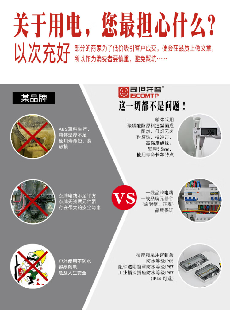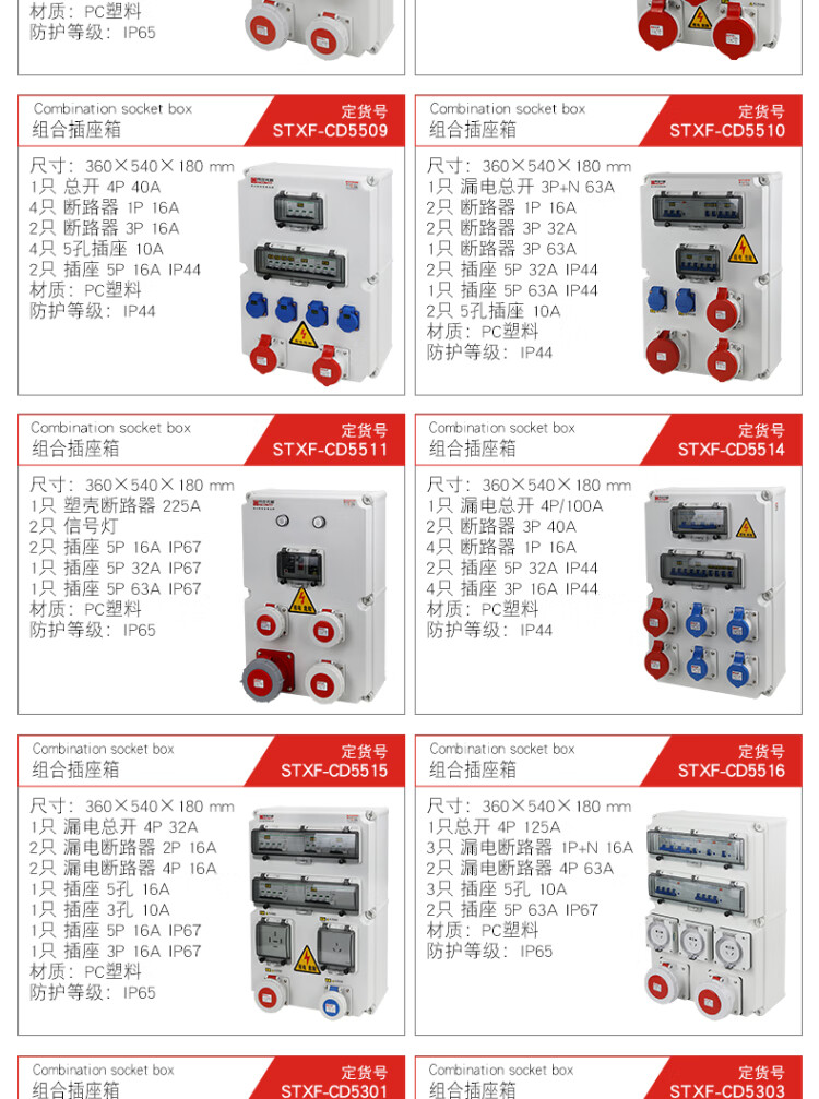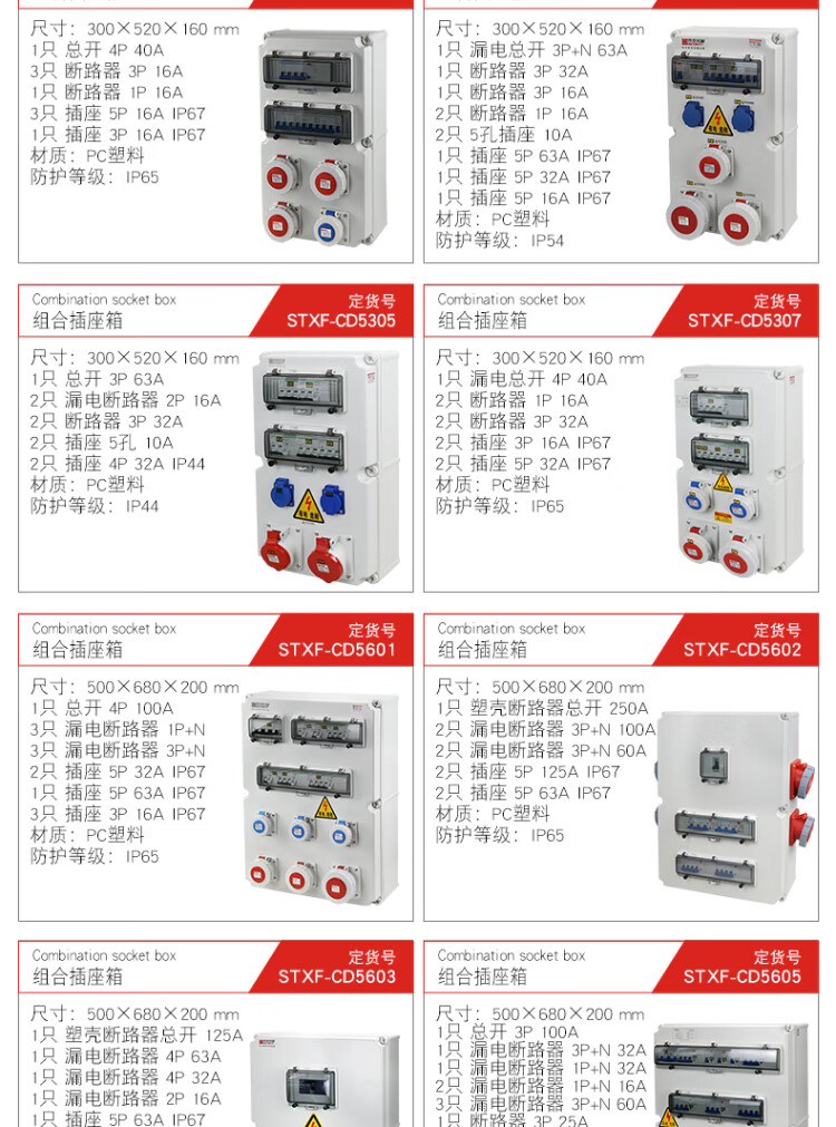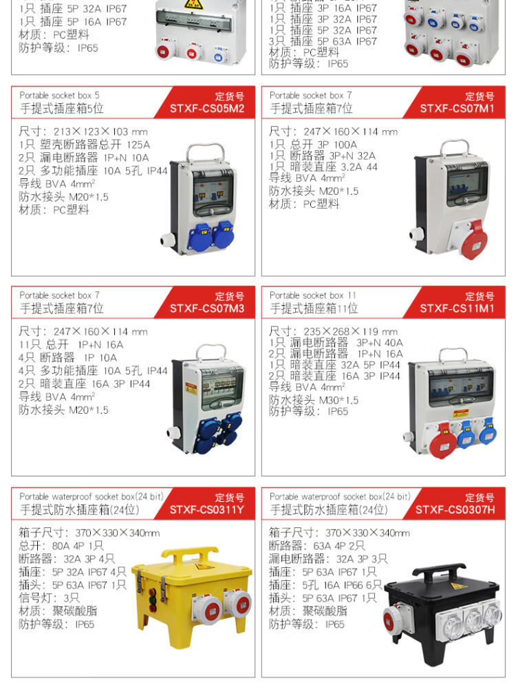 Outdoor waterproof industrial socket box 380V mobile portable maintenance power box construction site temporary secondary and tertiary distribution box black STXF-CS0205H