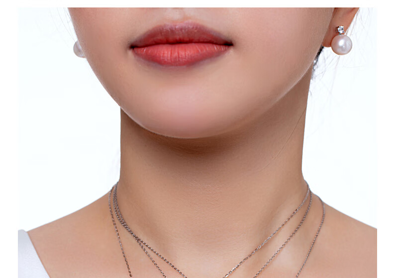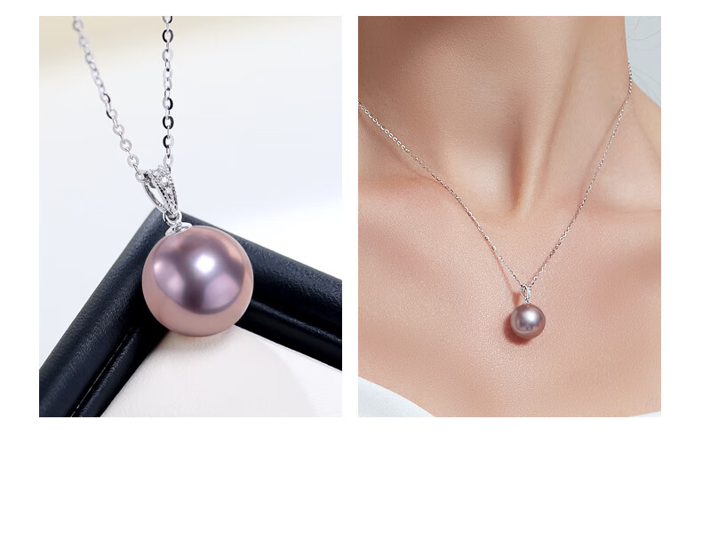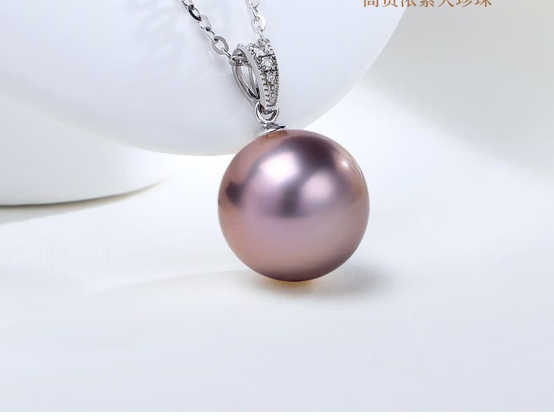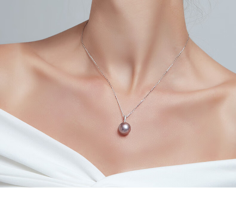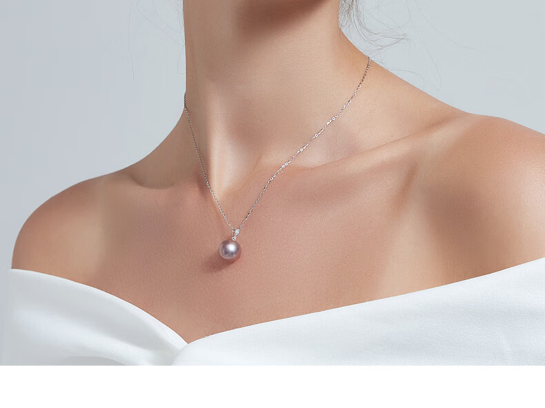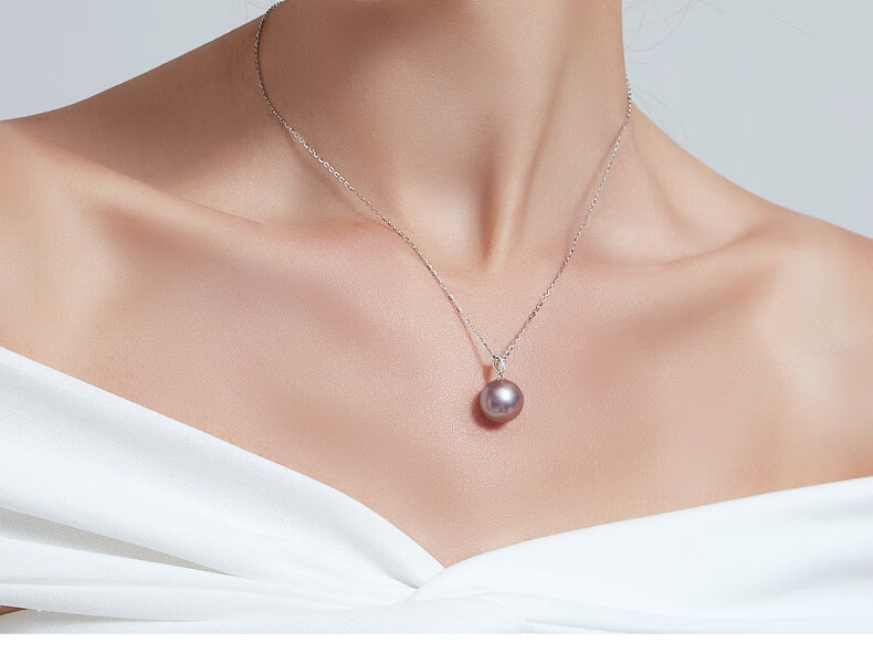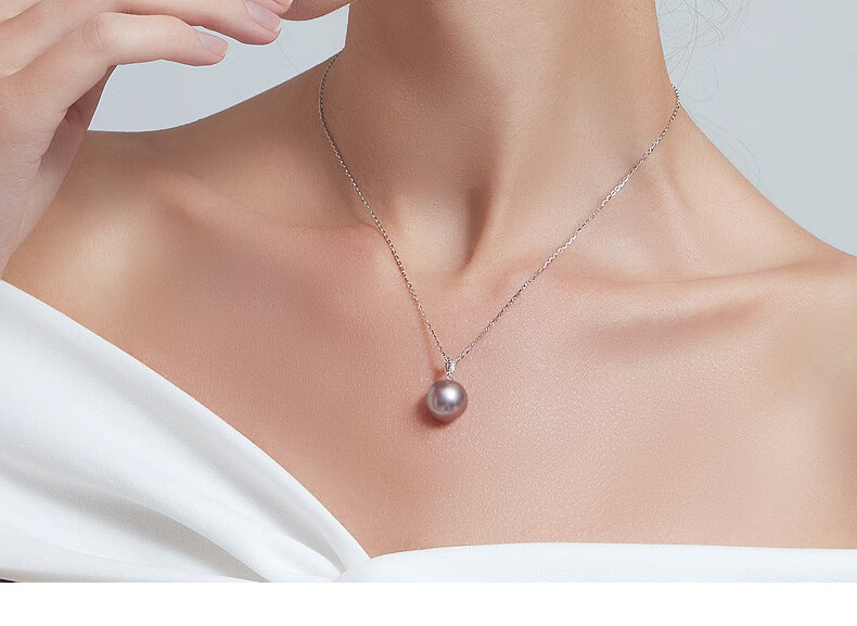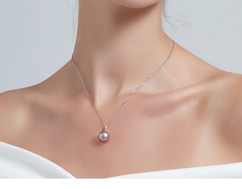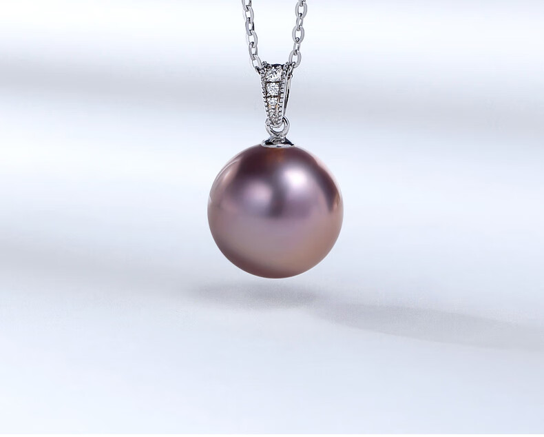 Hai Tong Jiu Zi Li Huo 18K Gold Diamond Freshwater Pearl Pendant Single Feminine Clavicle Chain Perfect Round Pearl Necklace Subtle 10-11mm