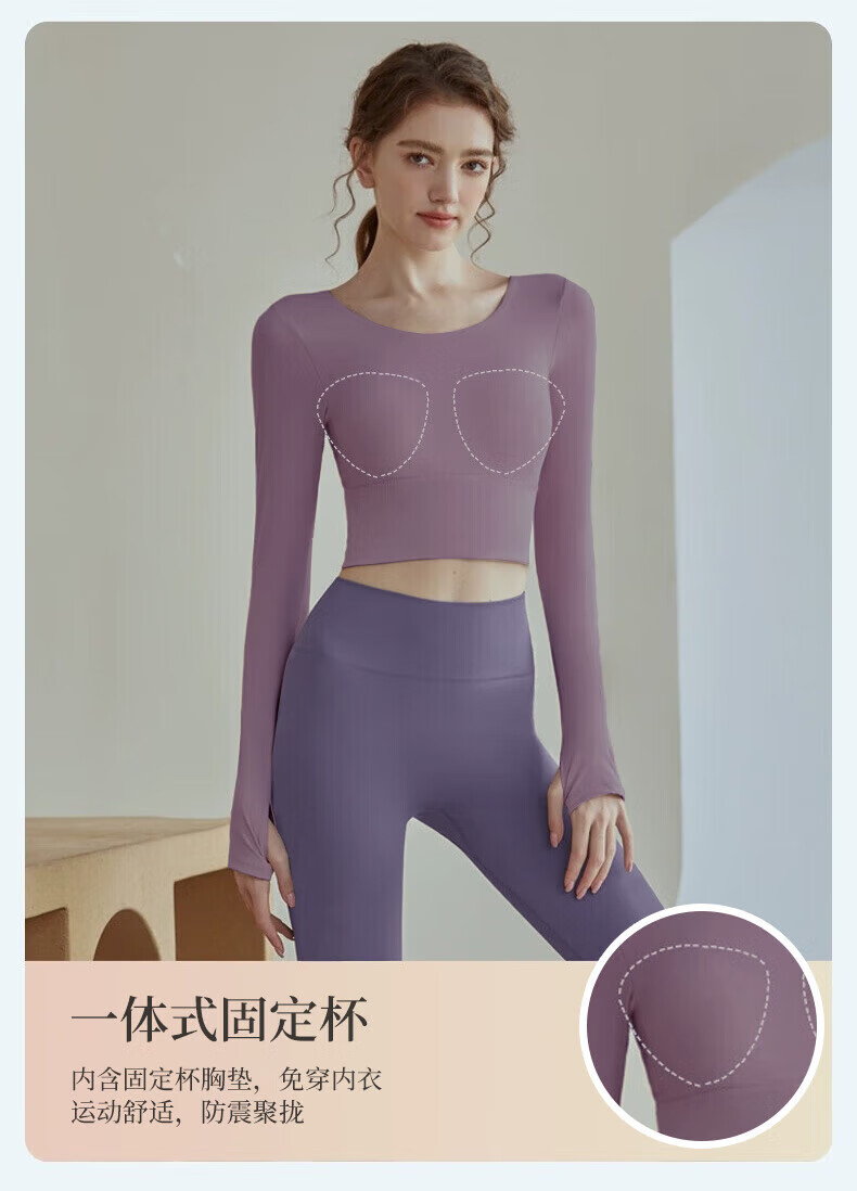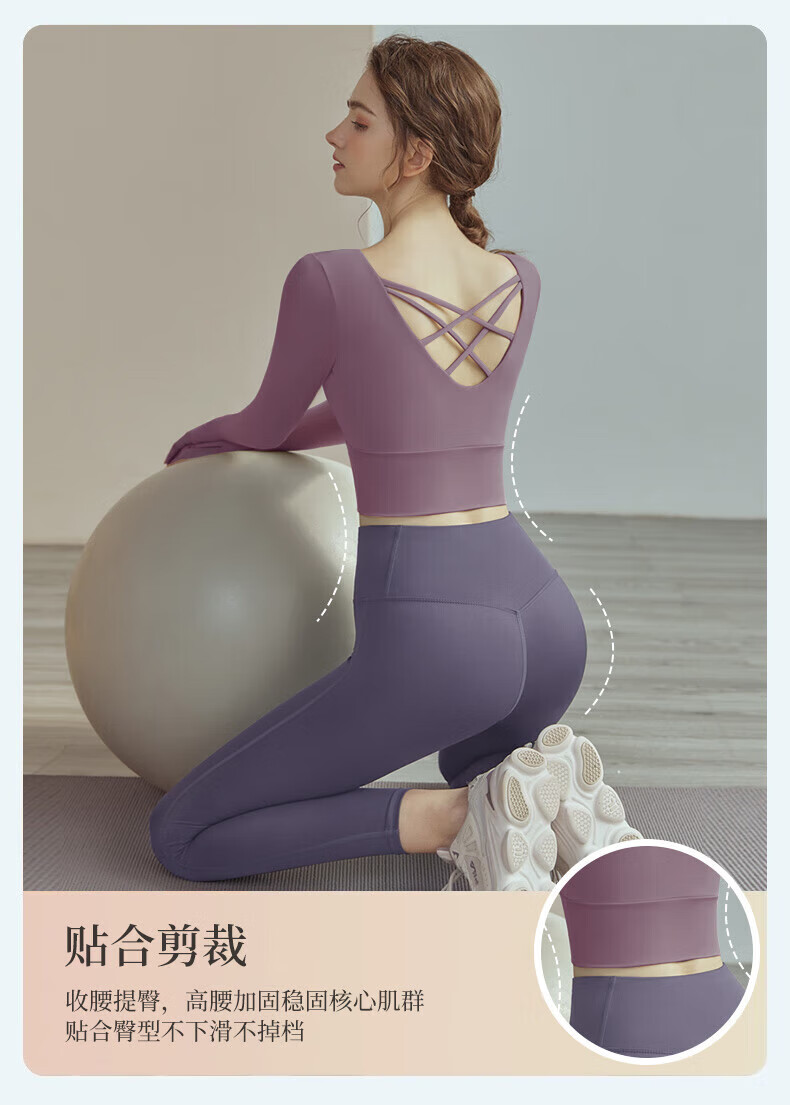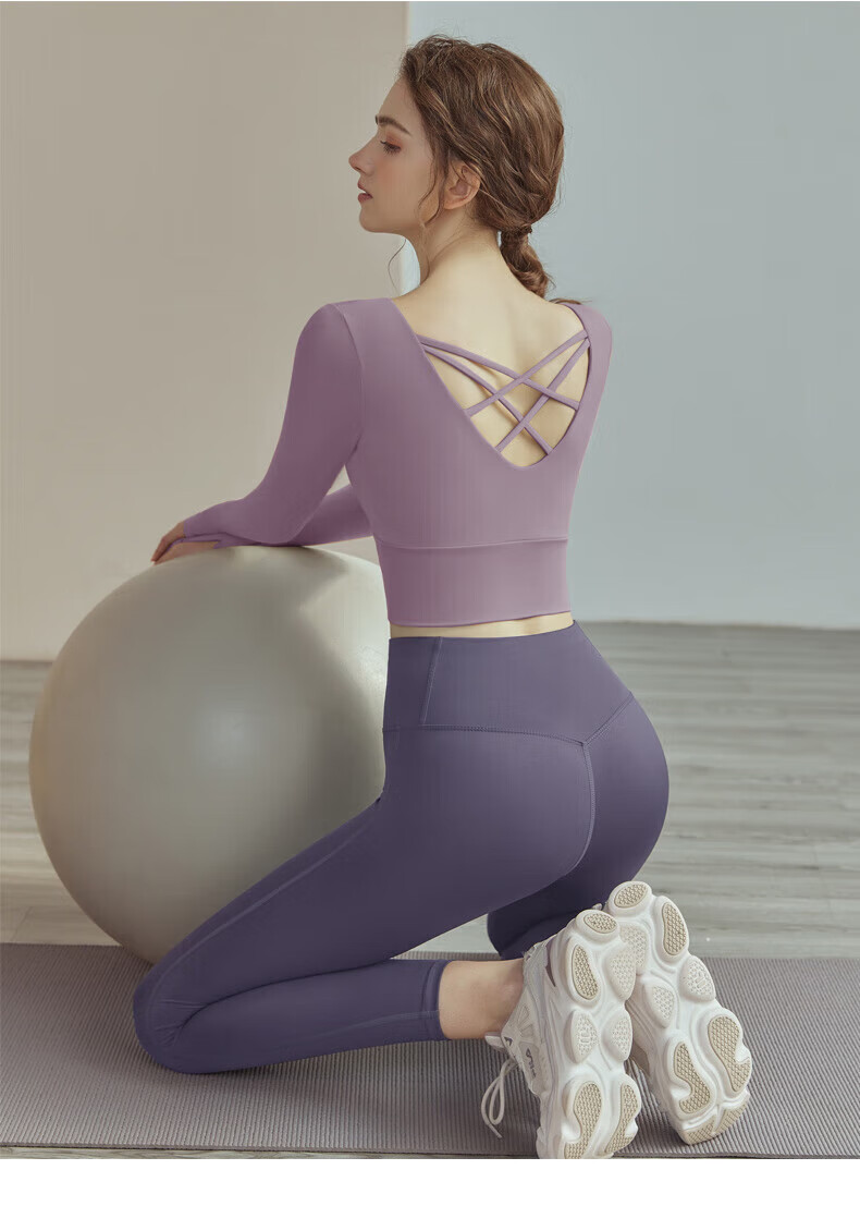 Bo Naling Yoga Women's Suit Two-piece Pilates Yoga Sports Professional Sports Suit Beautiful Back Long Sleeve Purple Fitness Wear Two-piece Yoga Wear Purple M