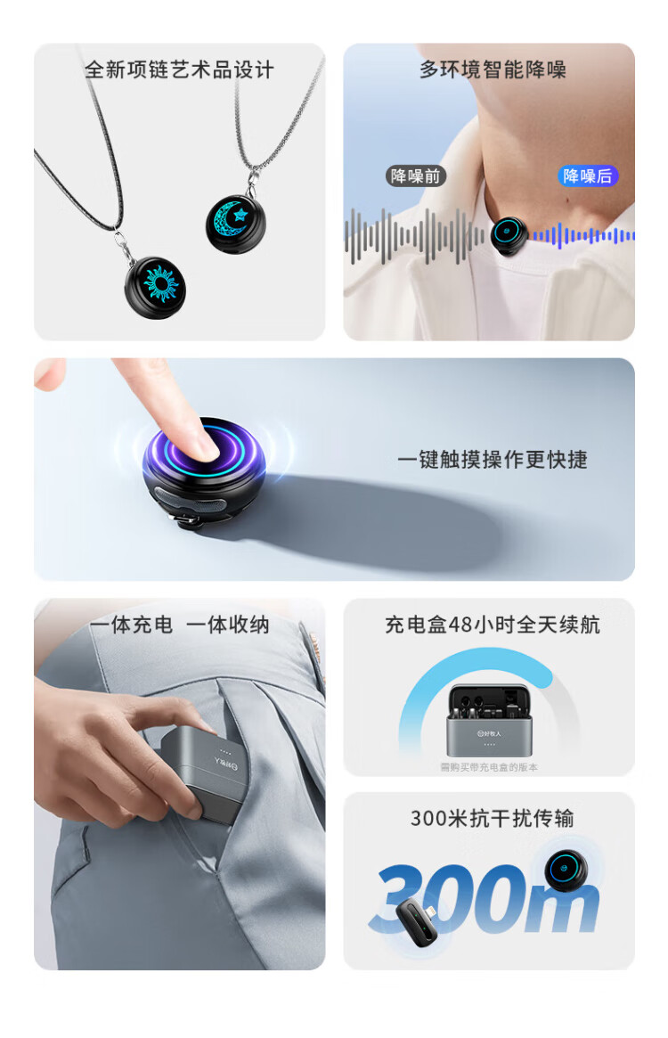 Good Shepherd Lavalier Wireless Microphone M9, Douyin Karaoke Interview Recording Microphone for Anchor Live Broadcast, Outdoor Professional Noise Reduction Microphone for Shooting Short Videos, Vlog, Magnetic Button Microphone M9 | New All-in-One Version Fashion Selection (Two Shots, Three Collections)