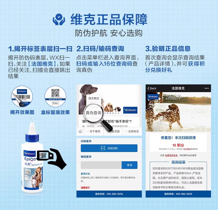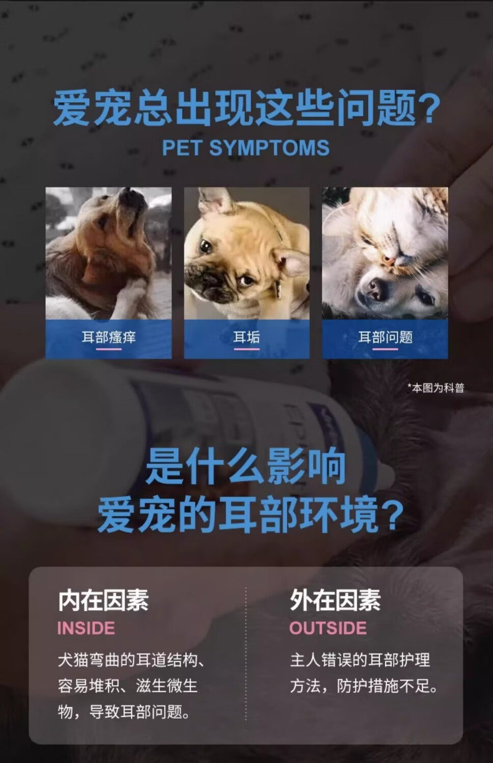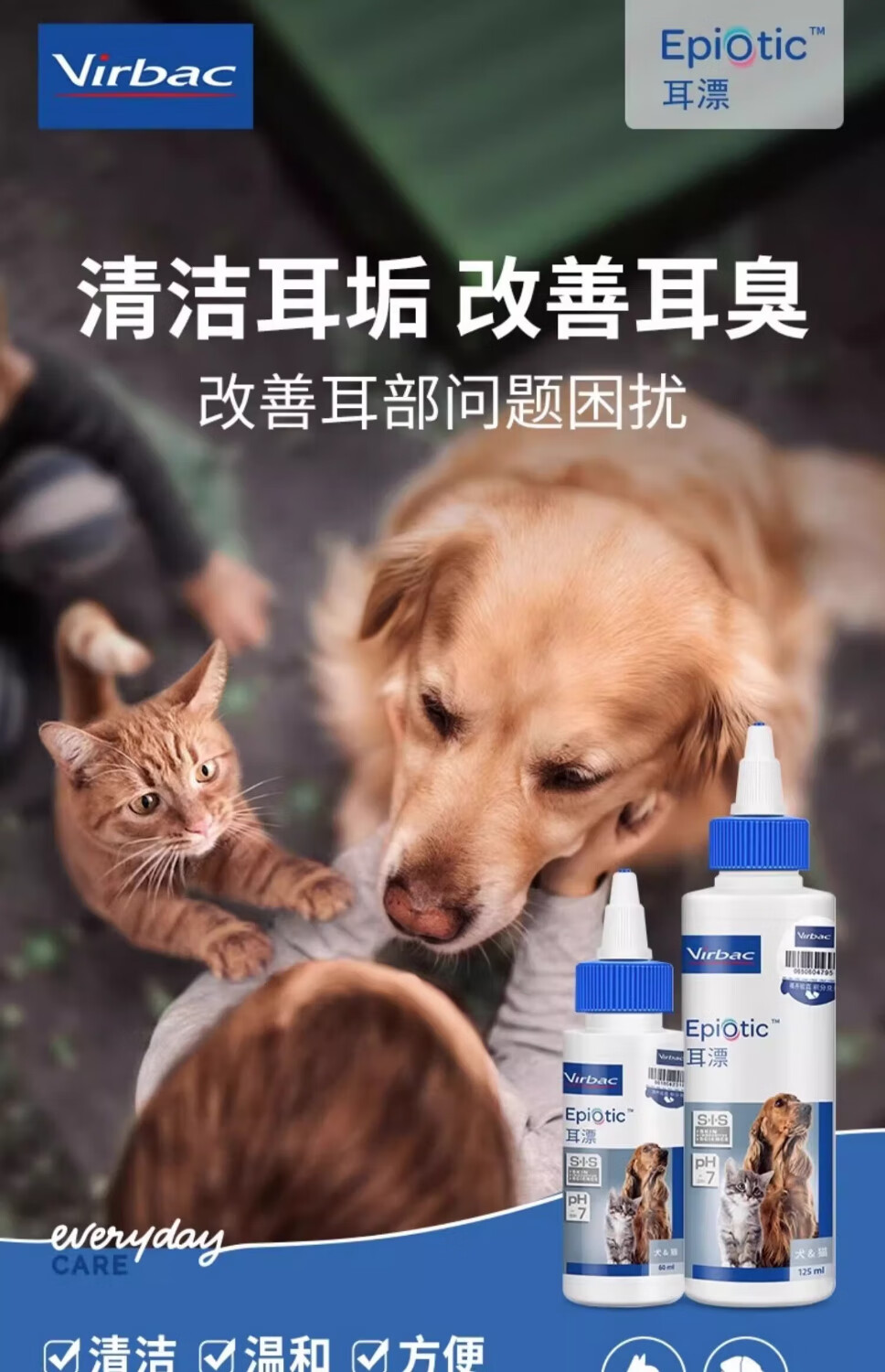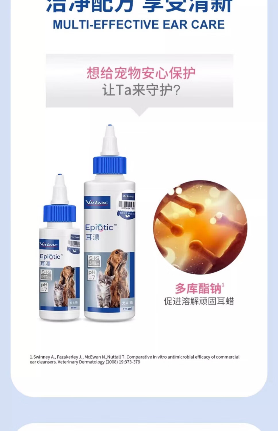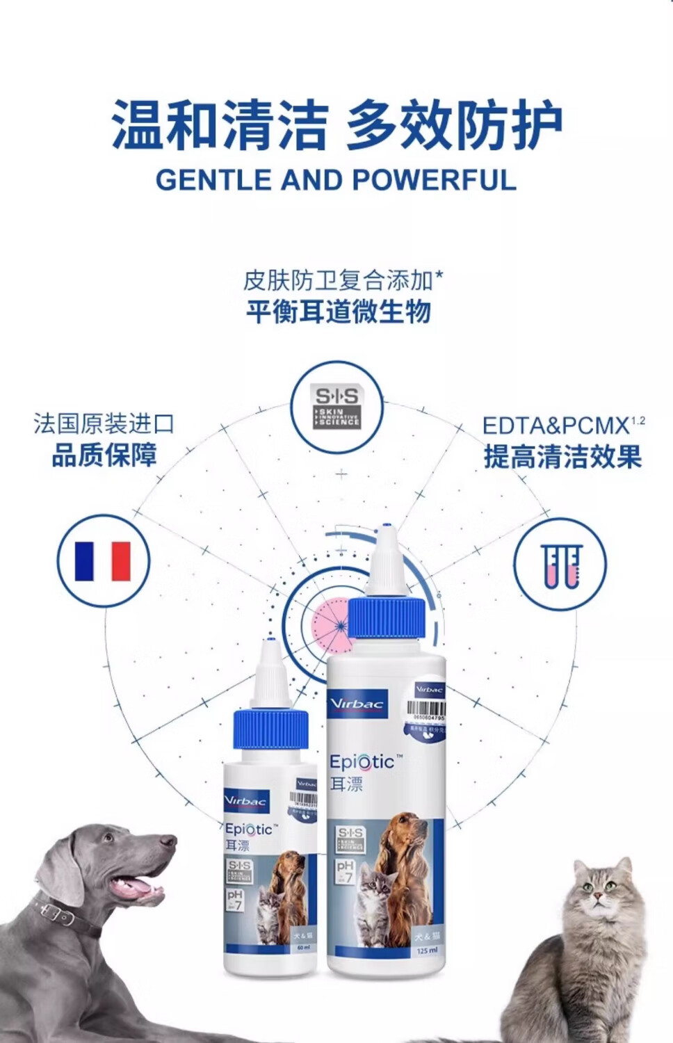 VIC France VIC Ear Bleaching Cat Ear Drops Pet Ear Wash Ear Mite Ear Cleaning Supplies 60ml Cat and Dog Universal VIC Eye Net 125ml