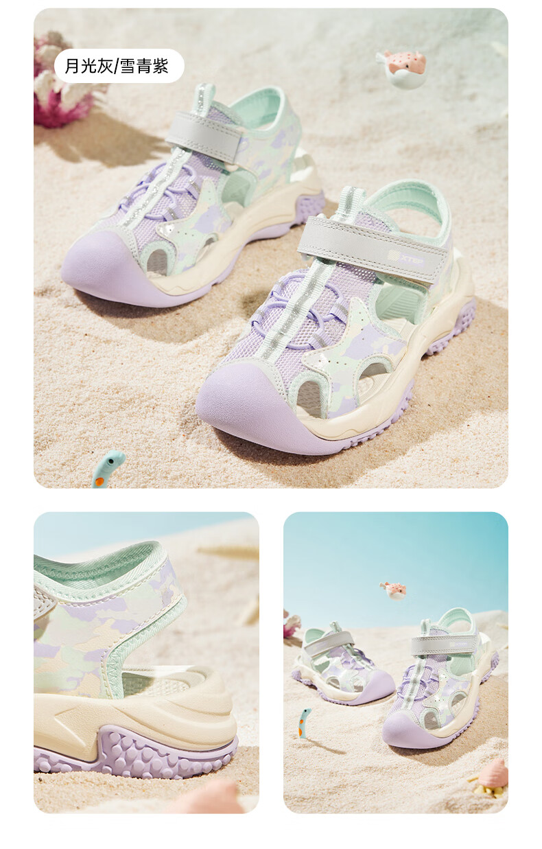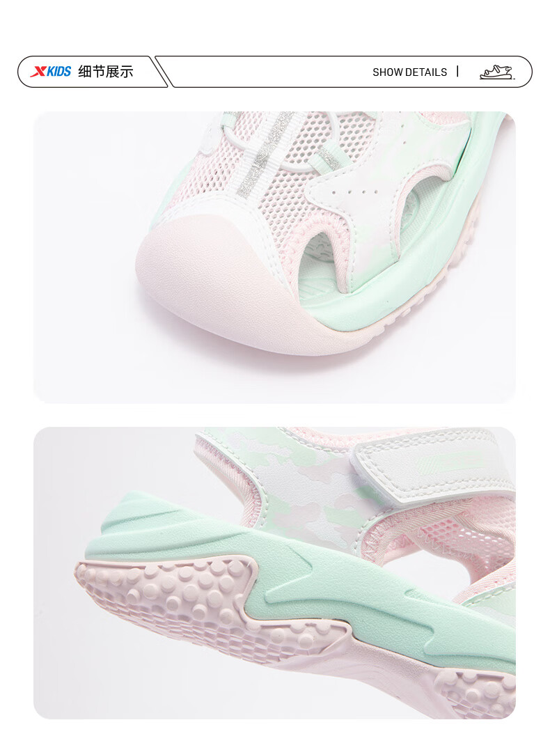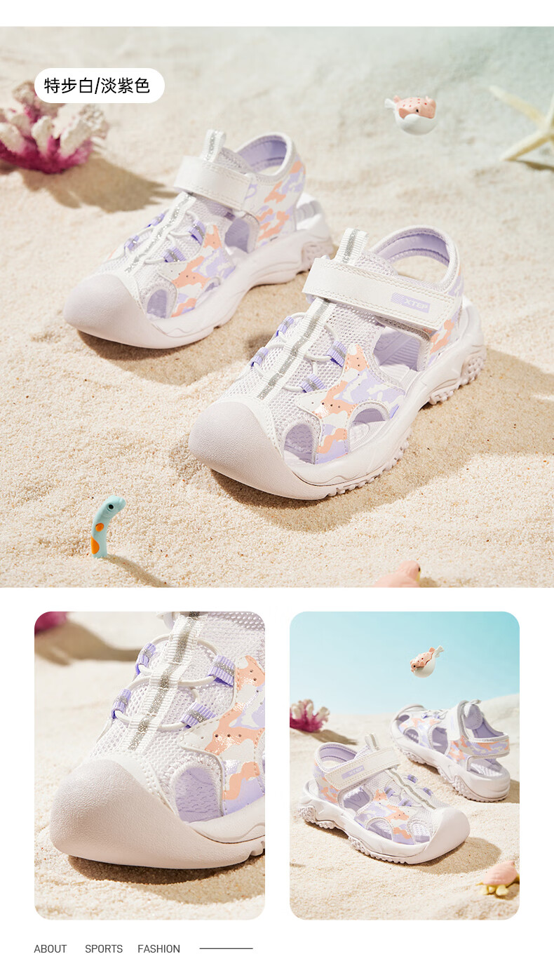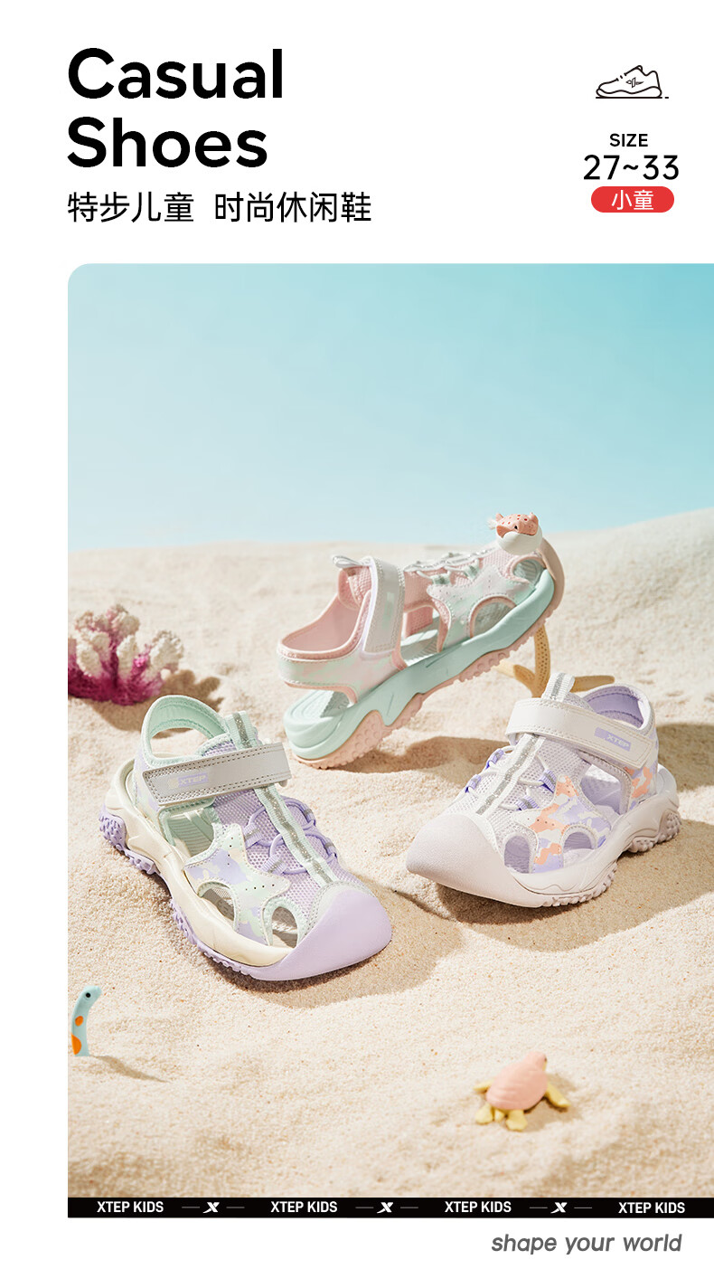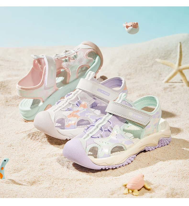 Xtep children's shoes, children's sports and leisure sandals, young children and girls' toe-cap sandals, summer new non-slip beach shoes, moonlight gray/snow purple 28