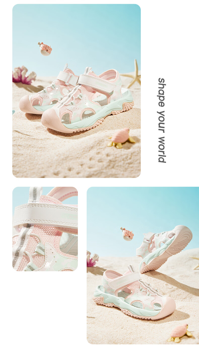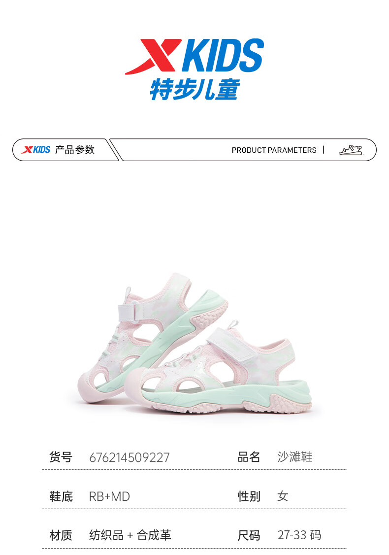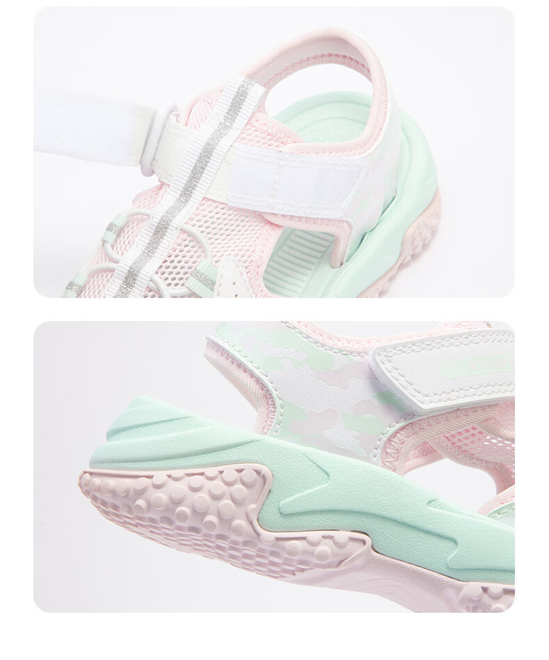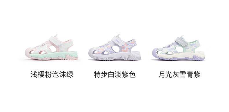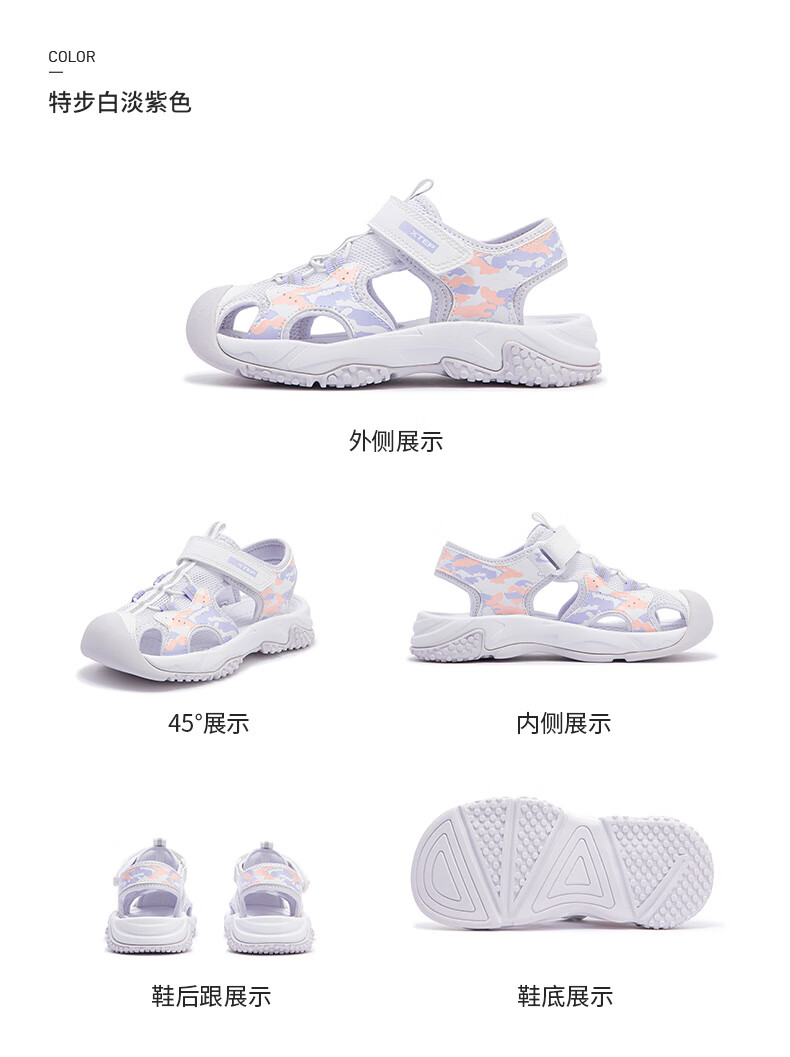 Xtep children's shoes, children's sports and leisure sandals, young children and girls' toe-cap sandals, summer new non-slip beach shoes, moonlight gray/snow purple 28