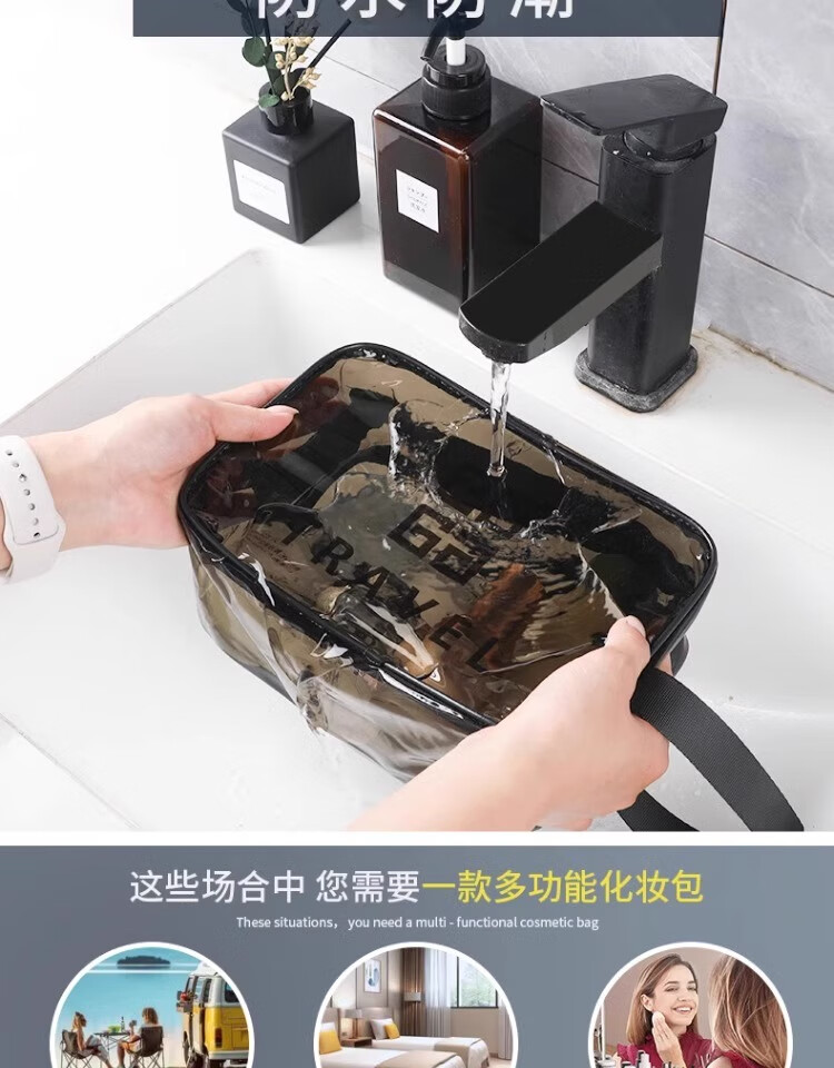 Shouli travel toiletry bag portable cosmetic bag double layer dry and wet separation large capacity women and men business trip makeup storage bag black large size double layer dry and wet separation