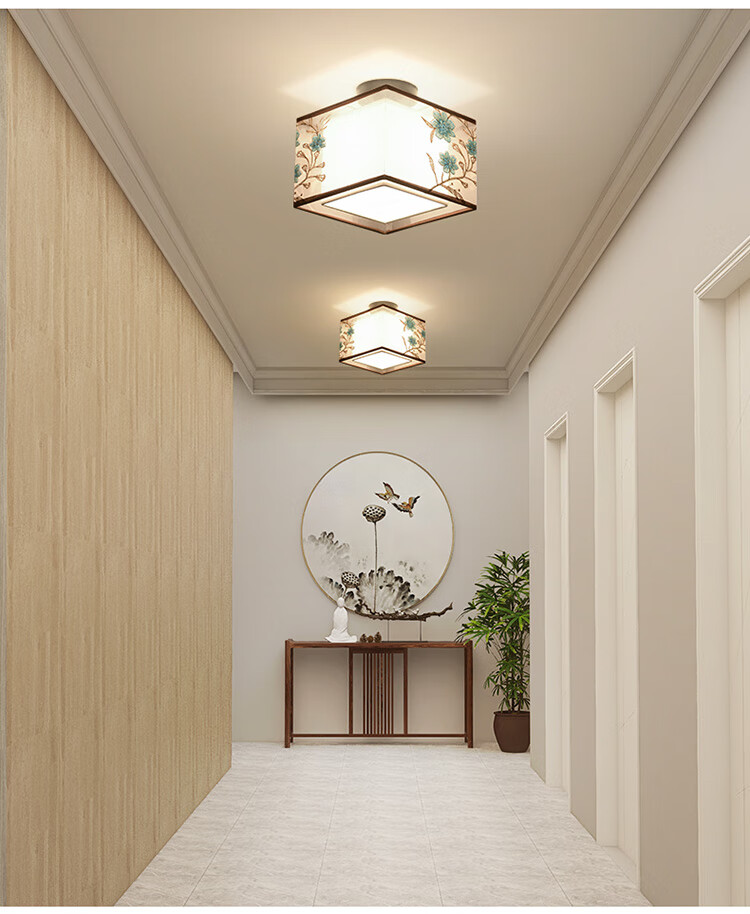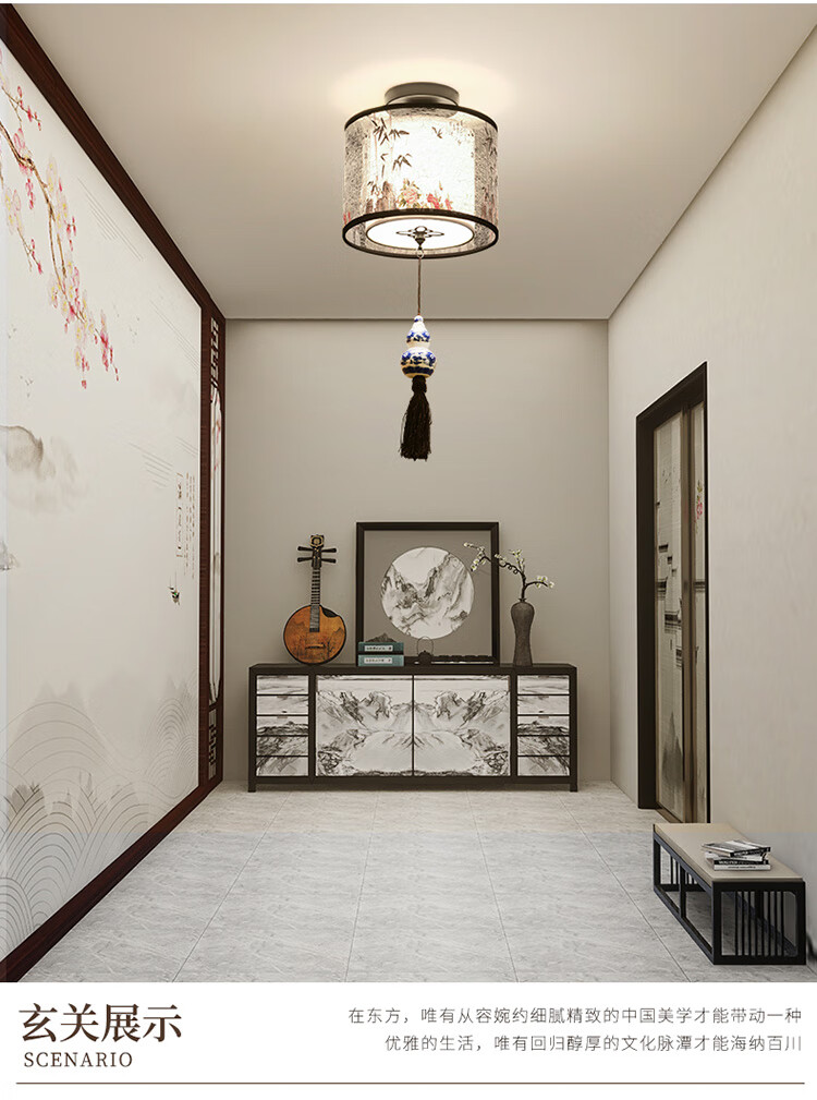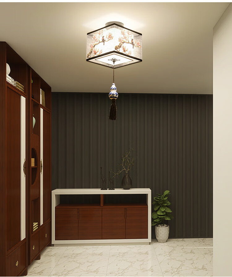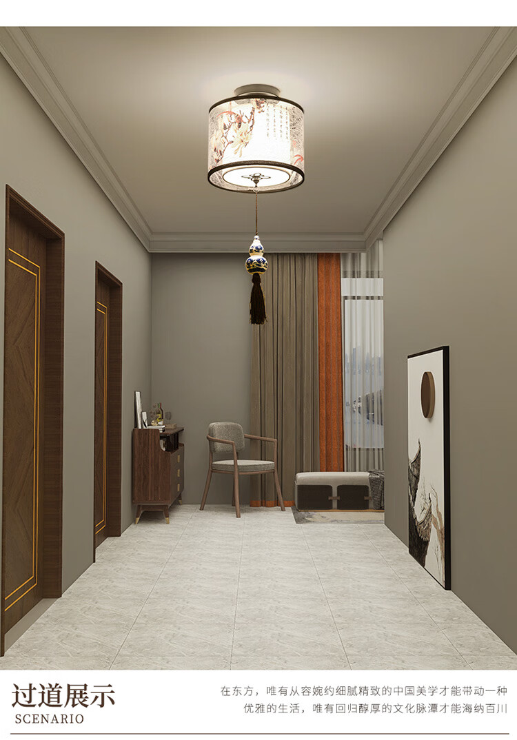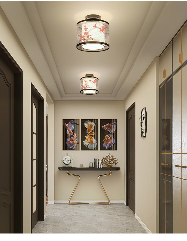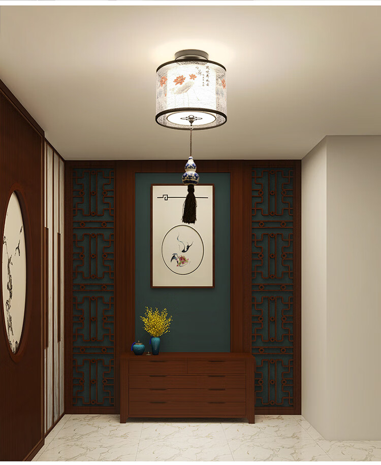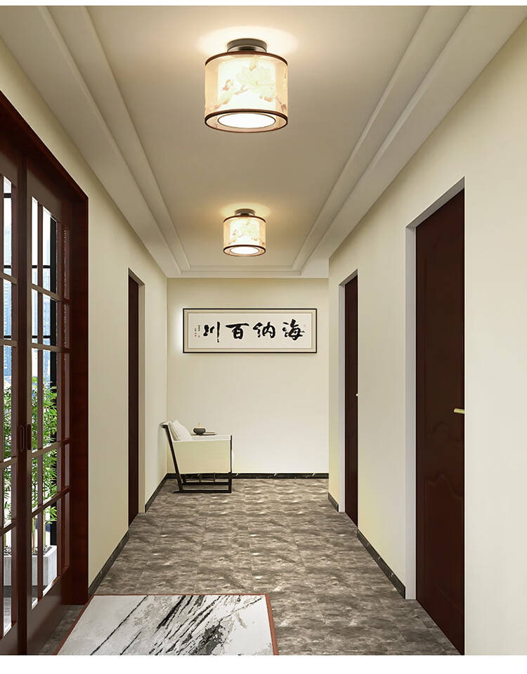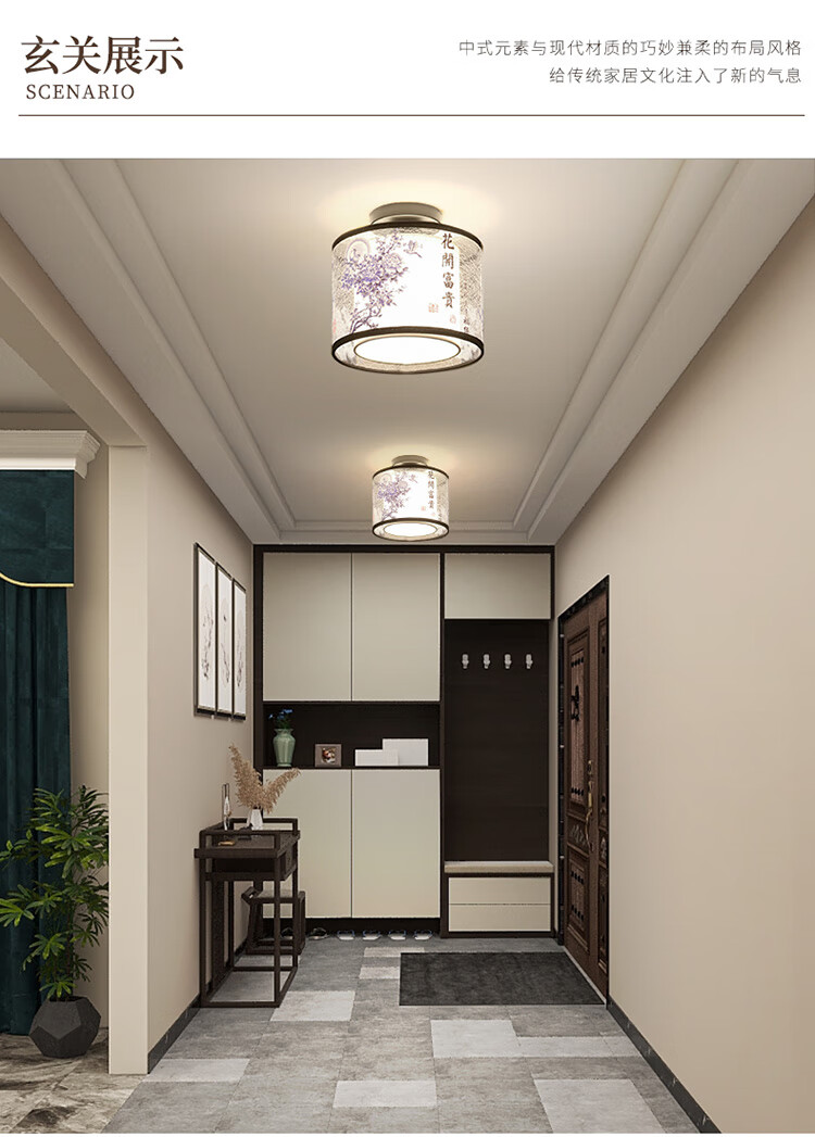 Micro corridor ceiling lamp balcony entrance corridor lamp new Chinese style LED simple bedroom foyer entrance small ceiling lamp round flowery brocade + pendant