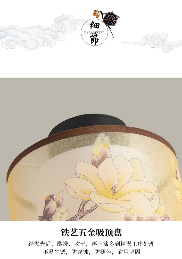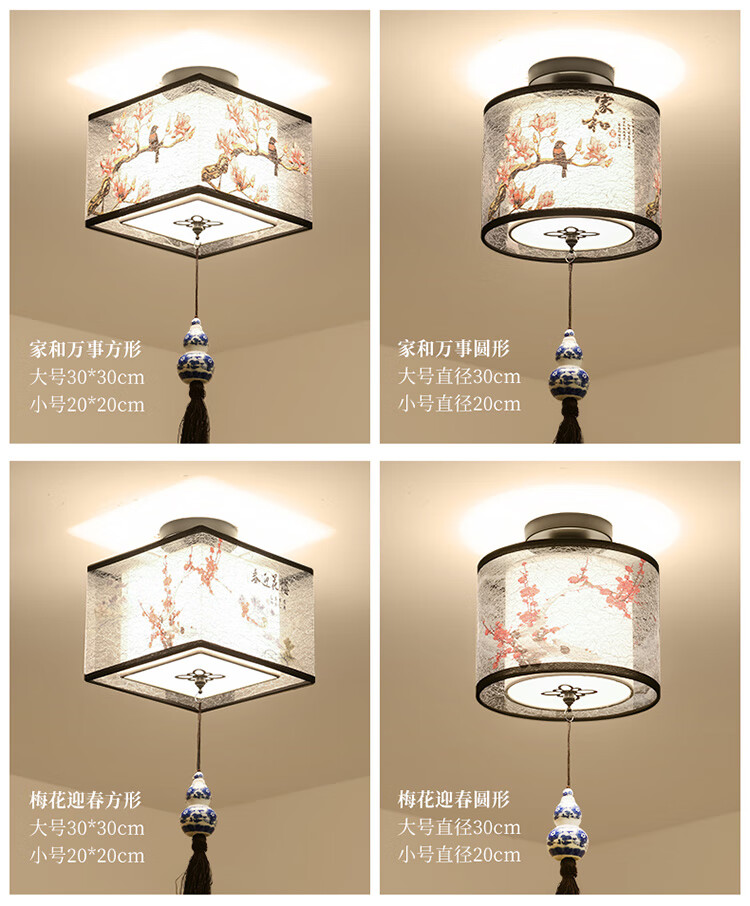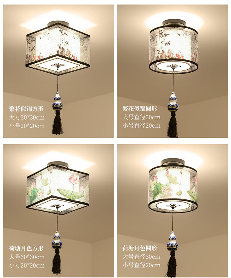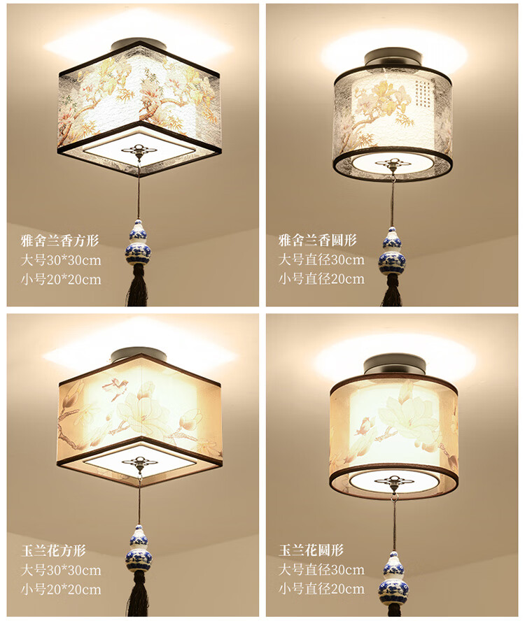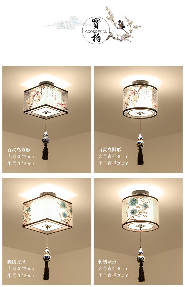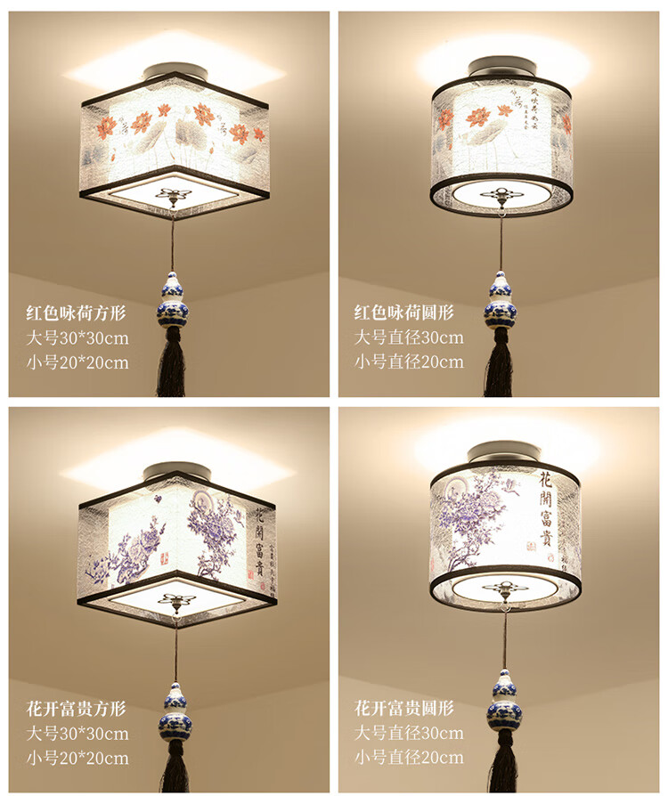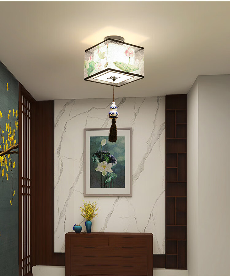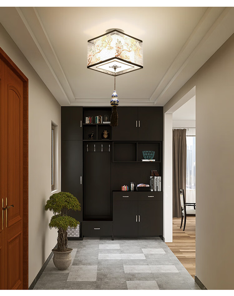 Micro corridor ceiling lamp balcony entrance corridor lamp new Chinese style LED simple bedroom foyer entrance small ceiling lamp round flowery brocade + pendant