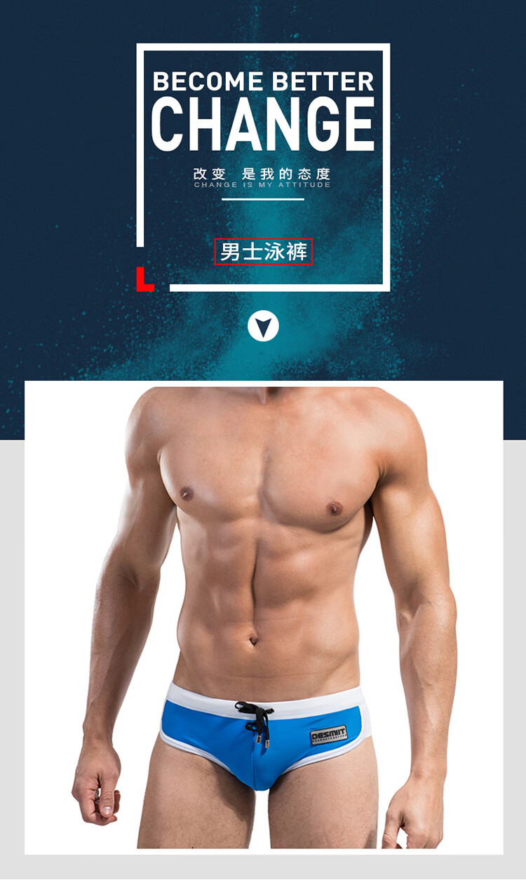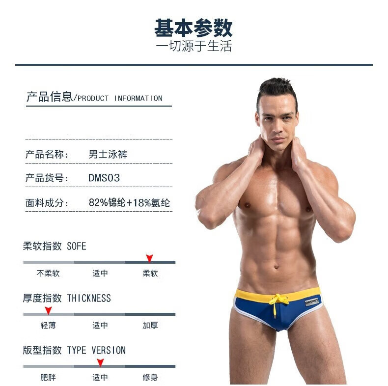 在礼男士三角游泳裤低腰性感个性速干泳裤型男时尚拼色温泉海边沙滩 深蓝色 XL
