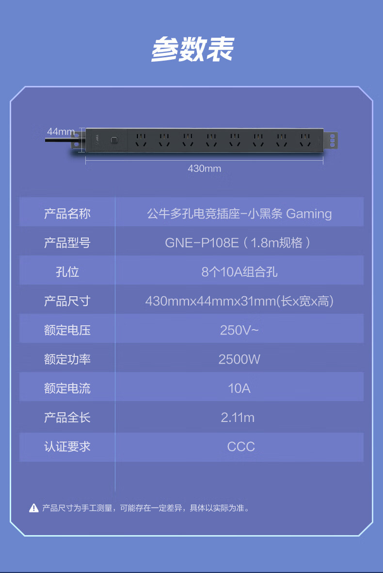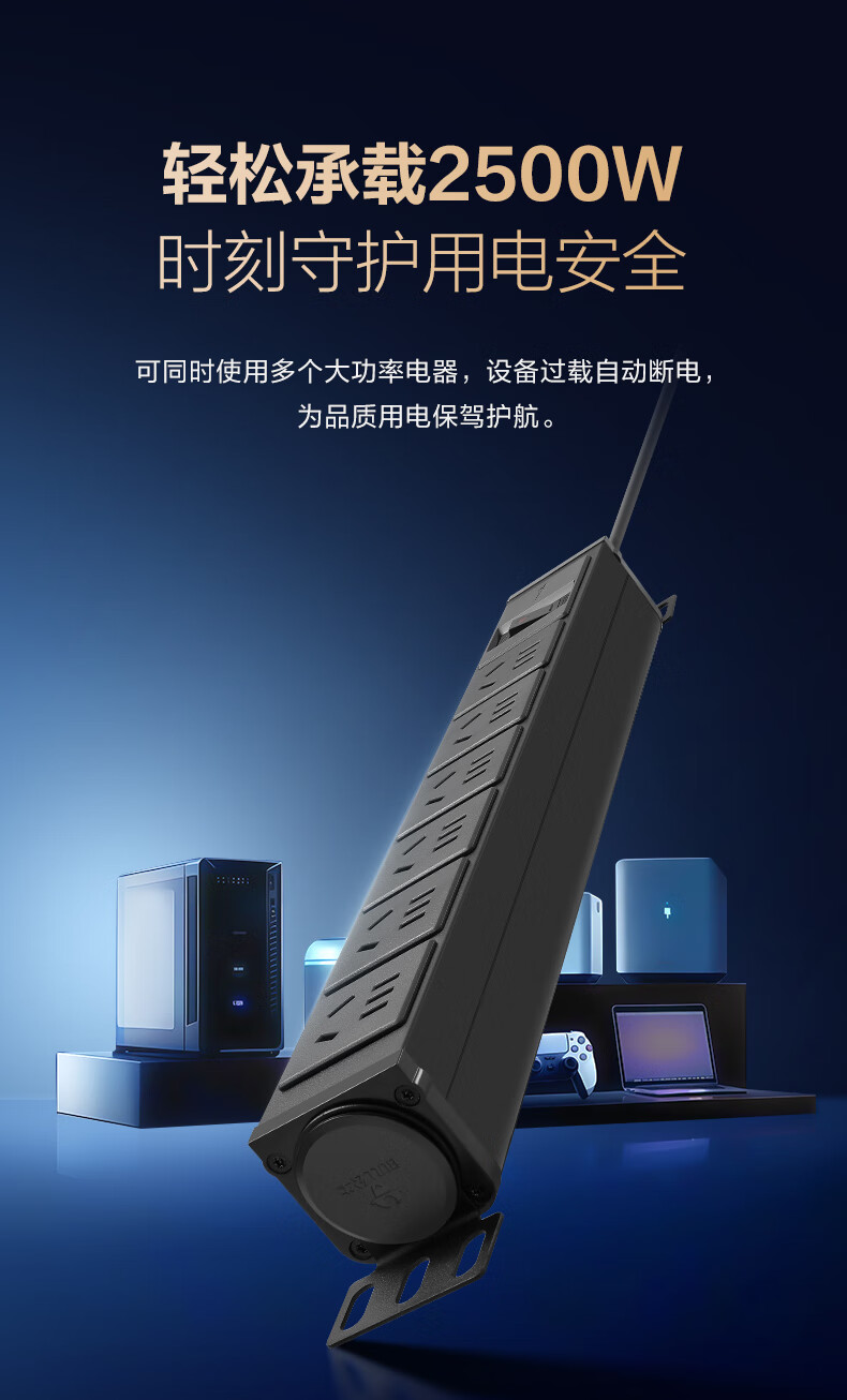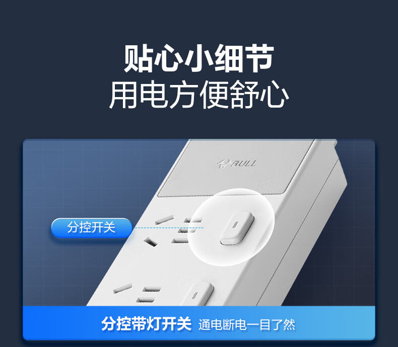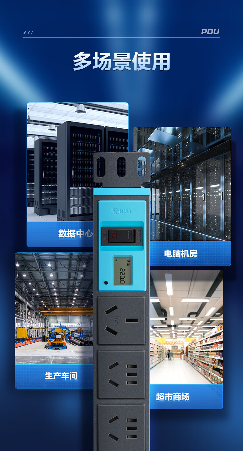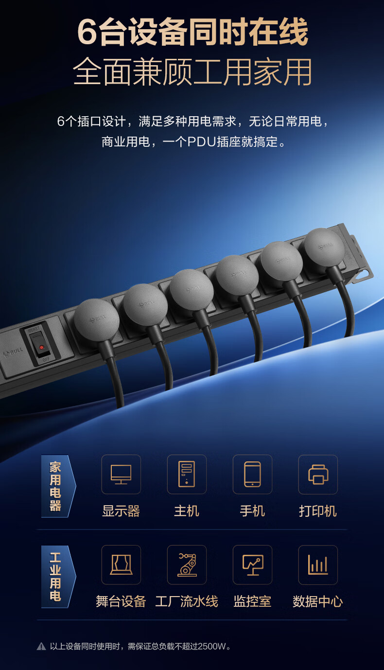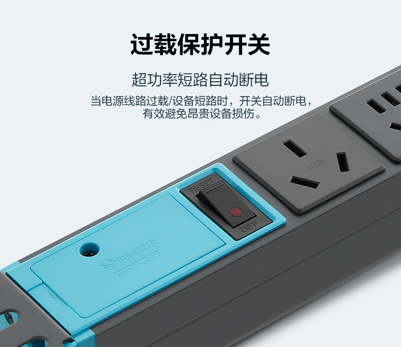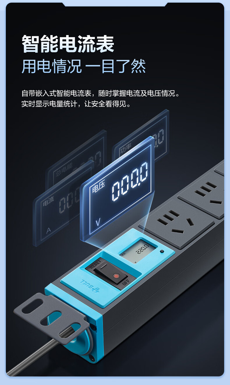 Bull (BULL) PDU desktop gaming cabinet socket/strip board/socket strip/strip strip/socket strip/pull line board 10A eight-bit master control overload protection 1.8 meters P108E