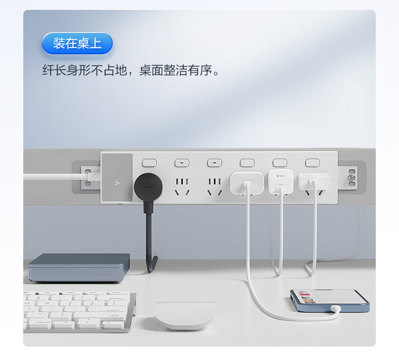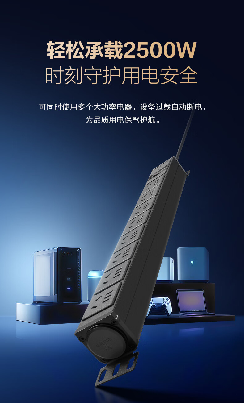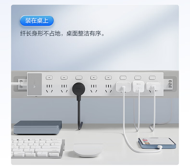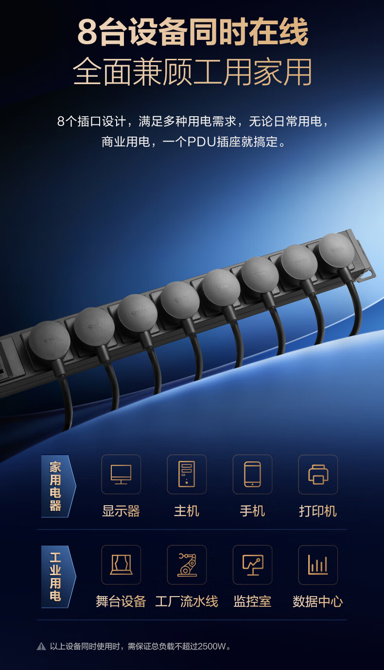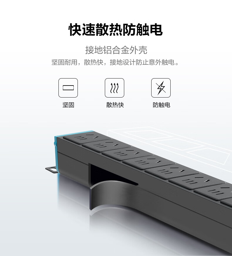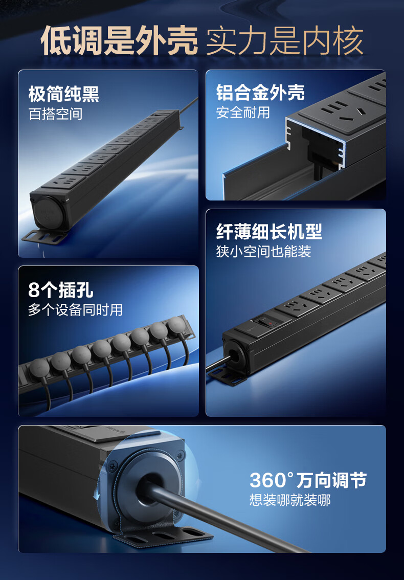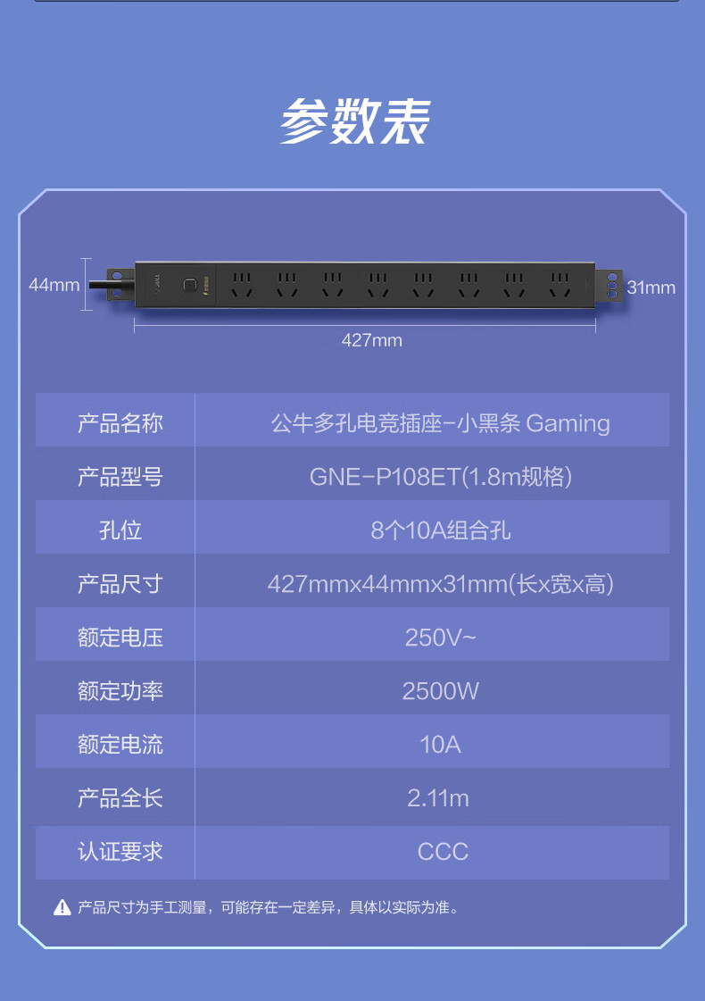 Bull (BULL) PDU desktop gaming cabinet socket/strip board/socket strip/strip strip/socket strip/pull line board 10A eight-bit master control overload protection 1.8 meters P108E