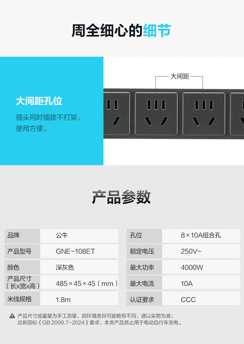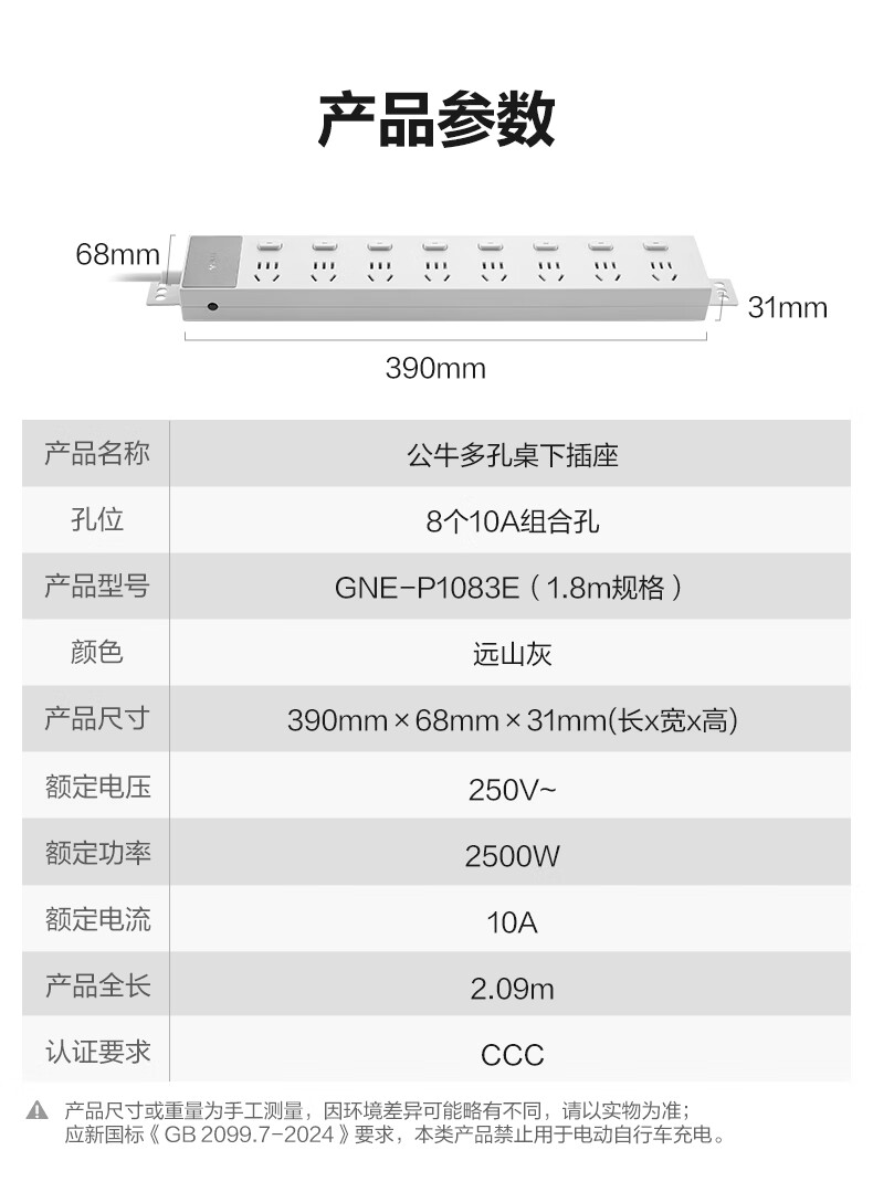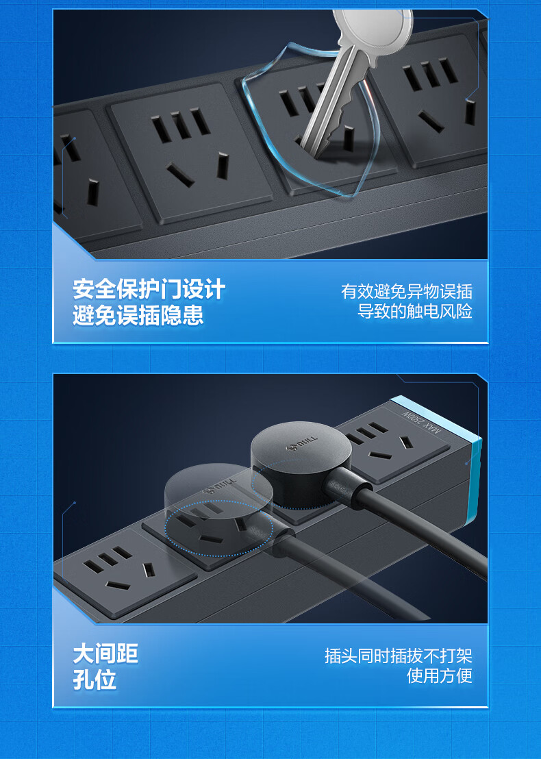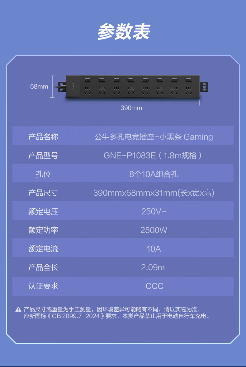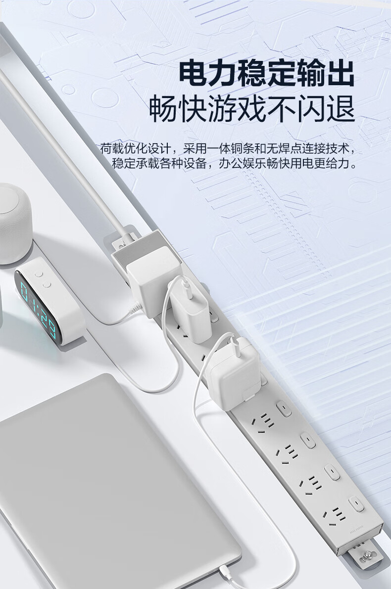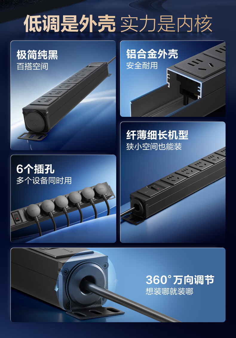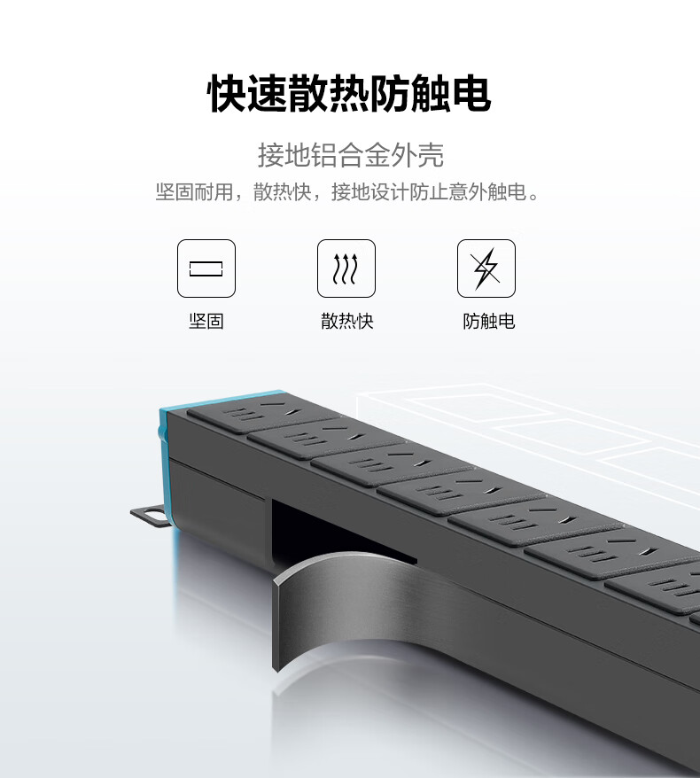 Bull (BULL) PDU desktop gaming cabinet socket/strip board/socket strip/strip strip/socket strip/pull line board 10A eight-bit master control overload protection 1.8 meters P108E
