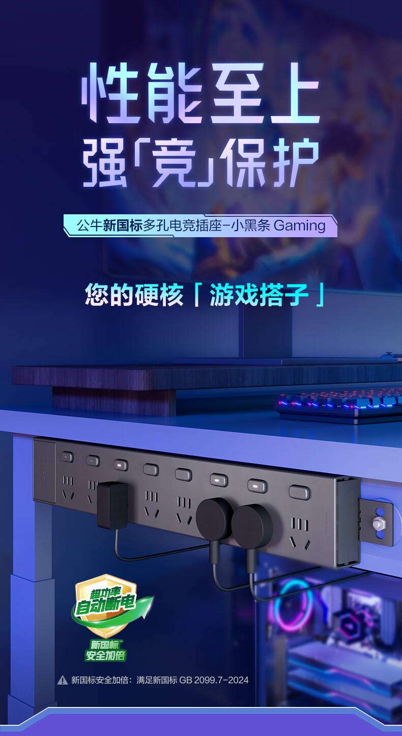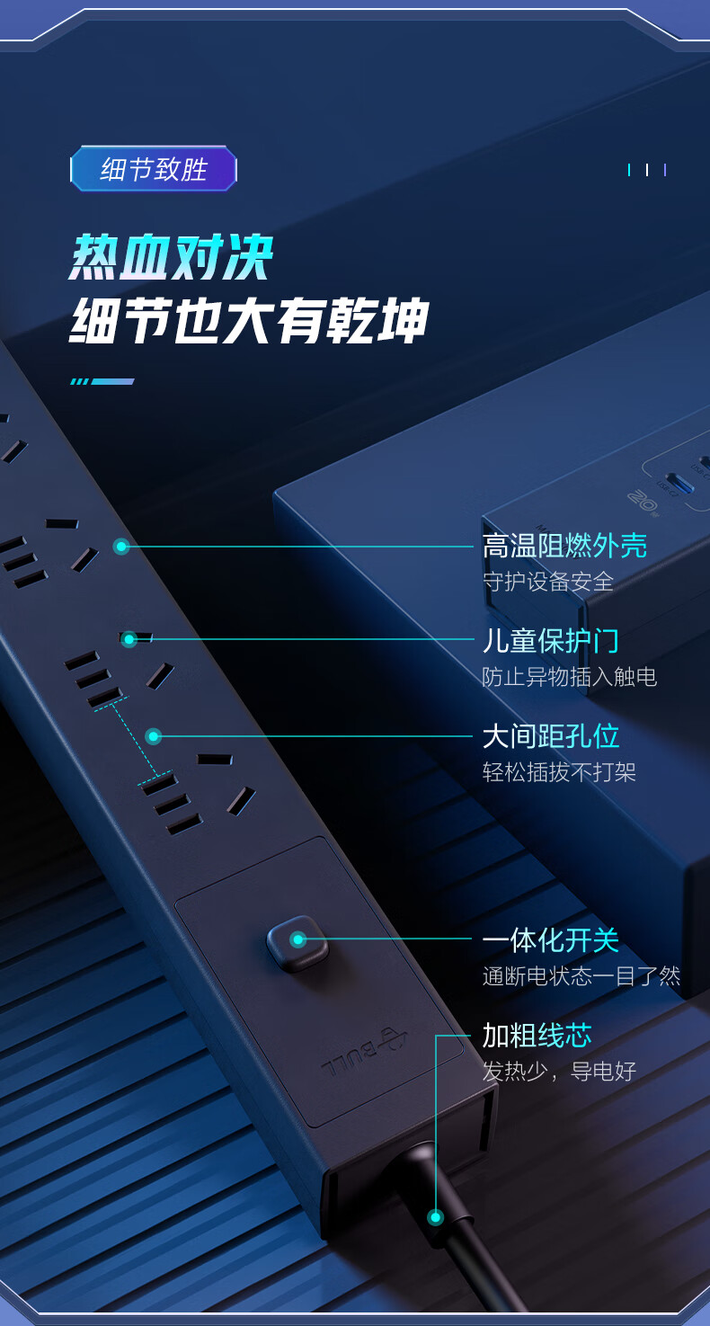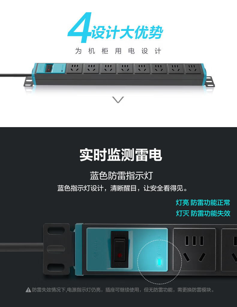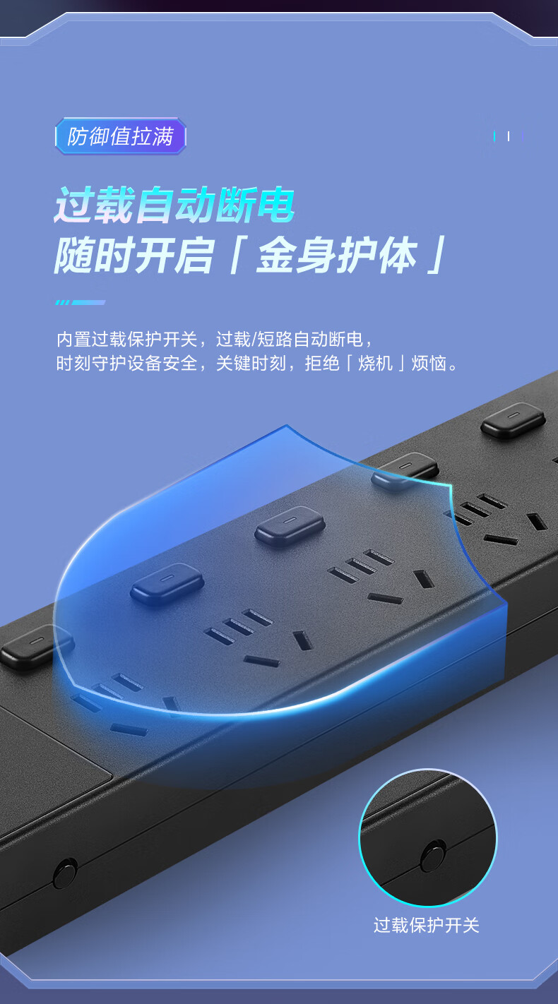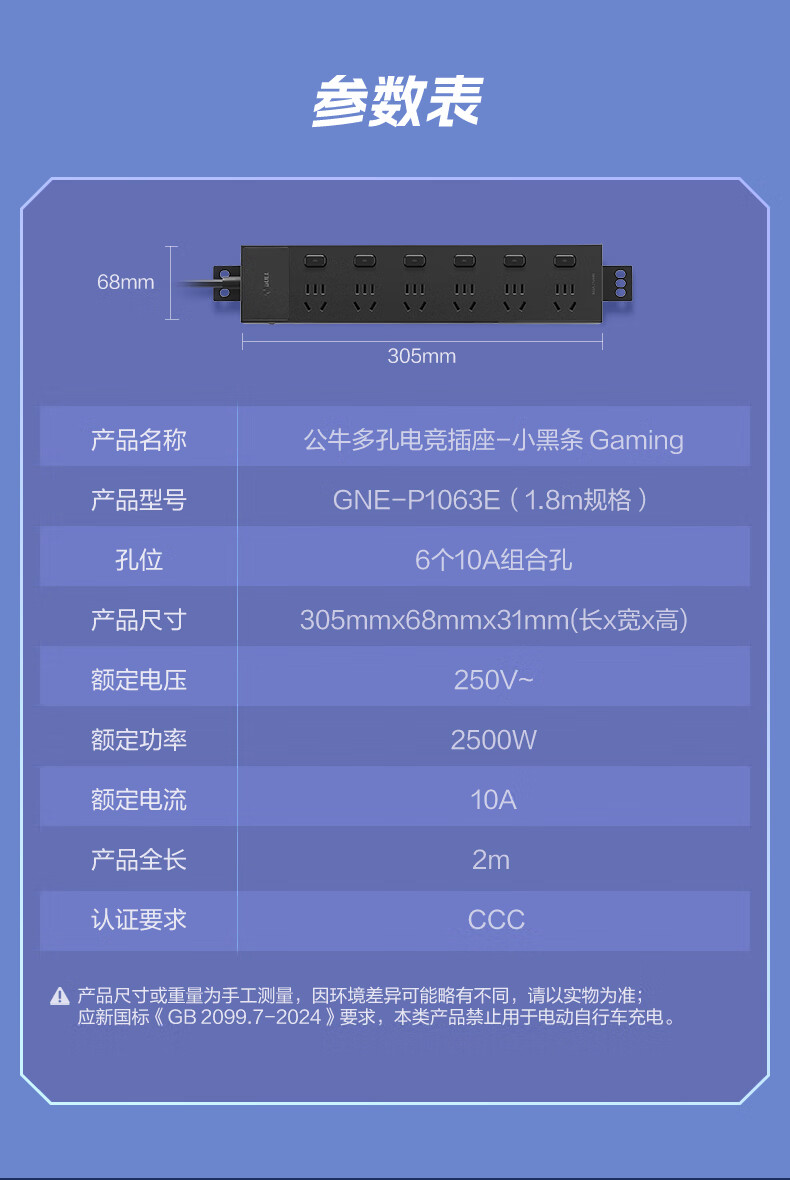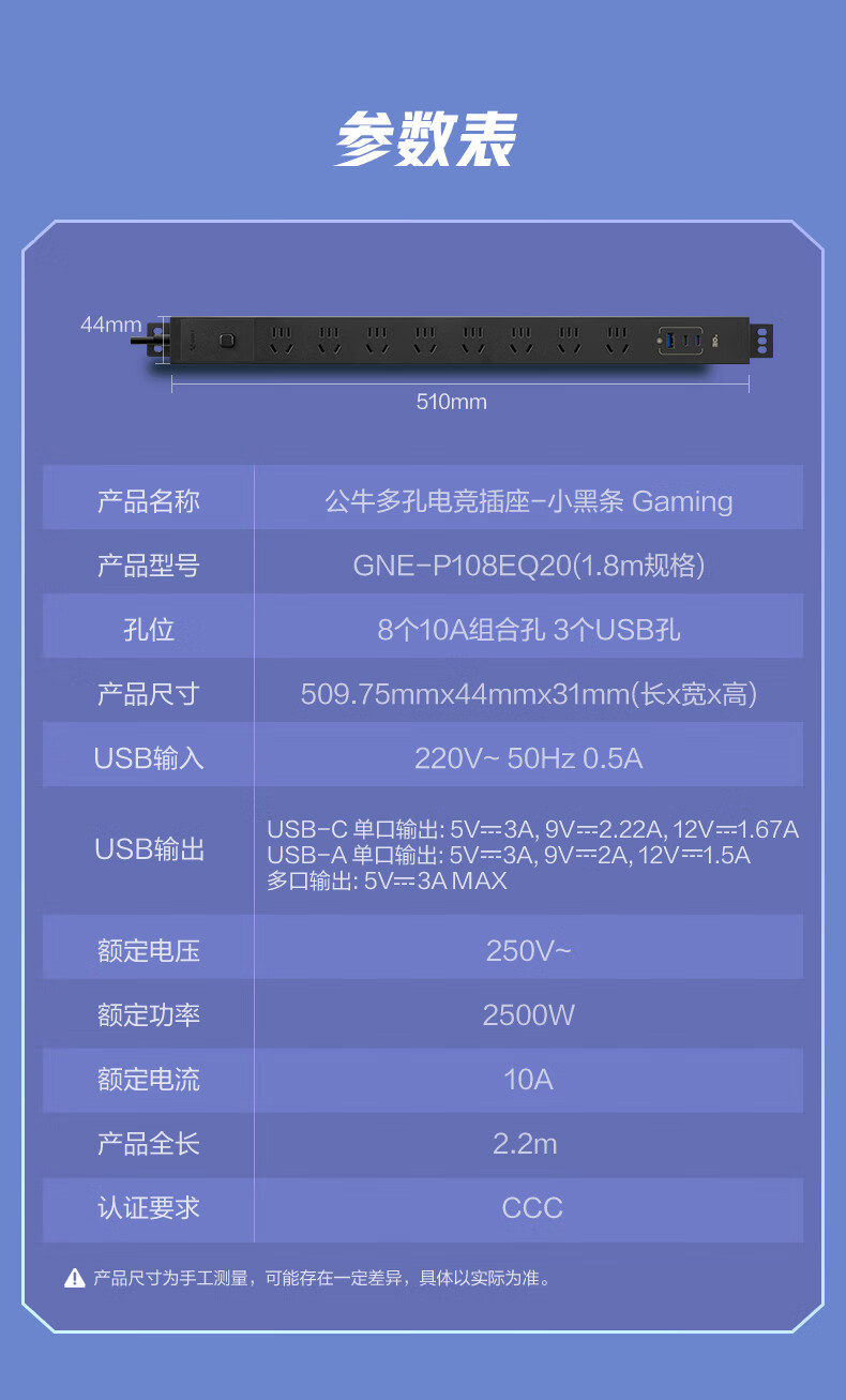 Bull (BULL) PDU desktop gaming cabinet socket/strip board/socket strip/strip strip/socket strip/pull line board 10A eight-bit master control overload protection 1.8 meters P108E