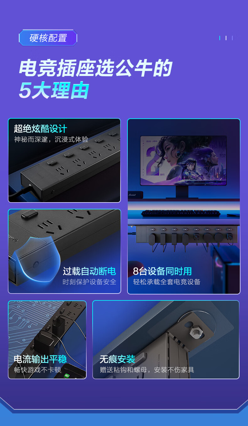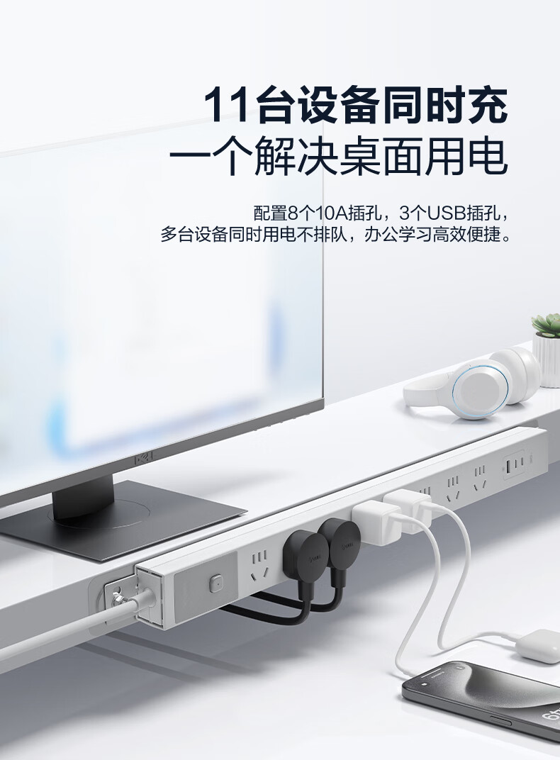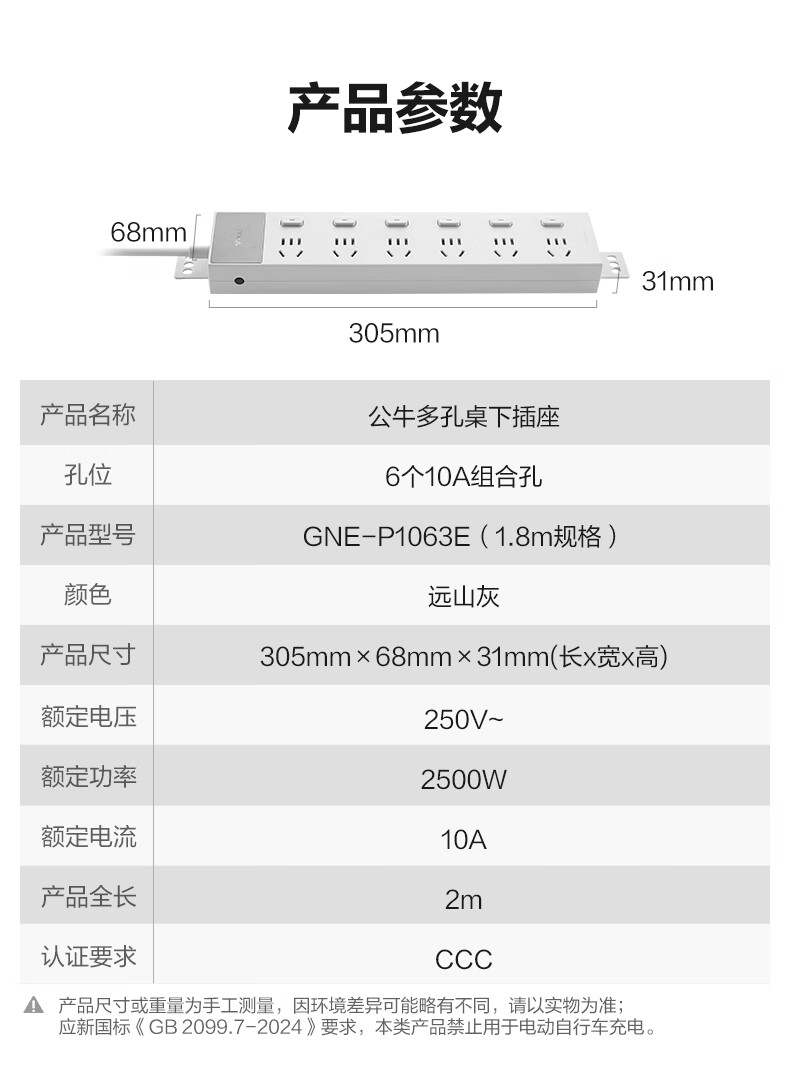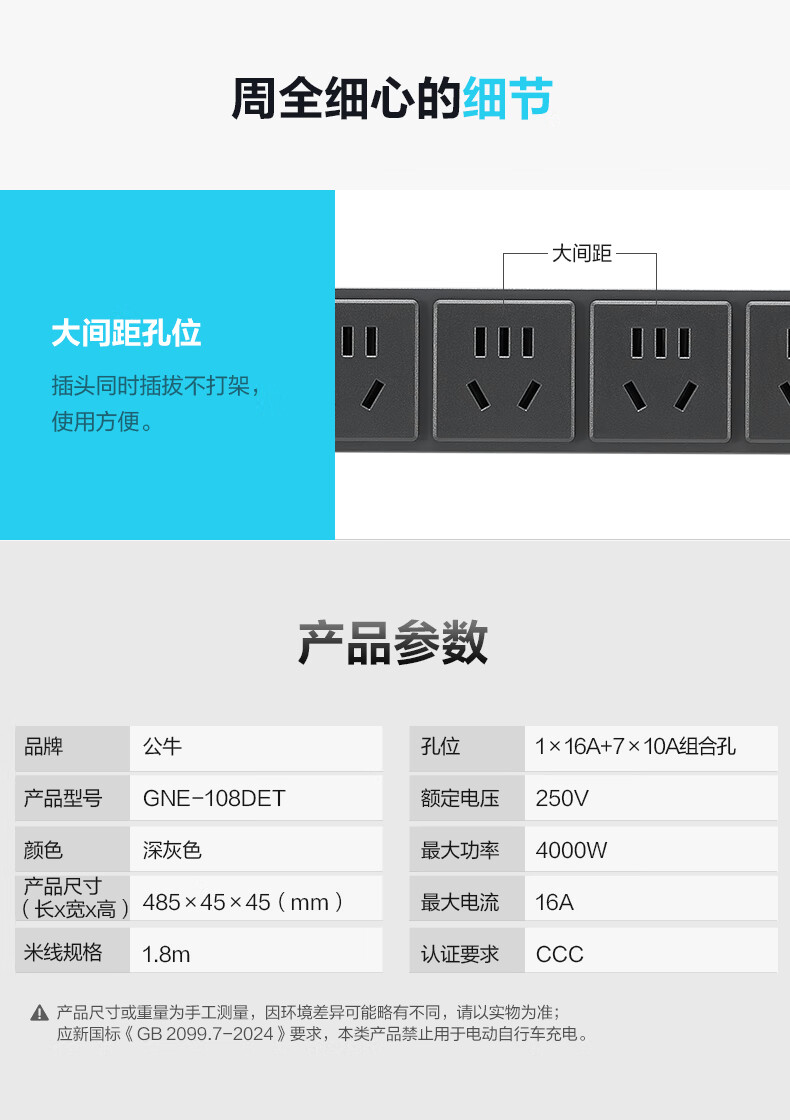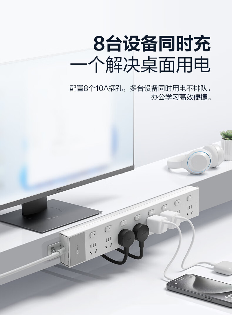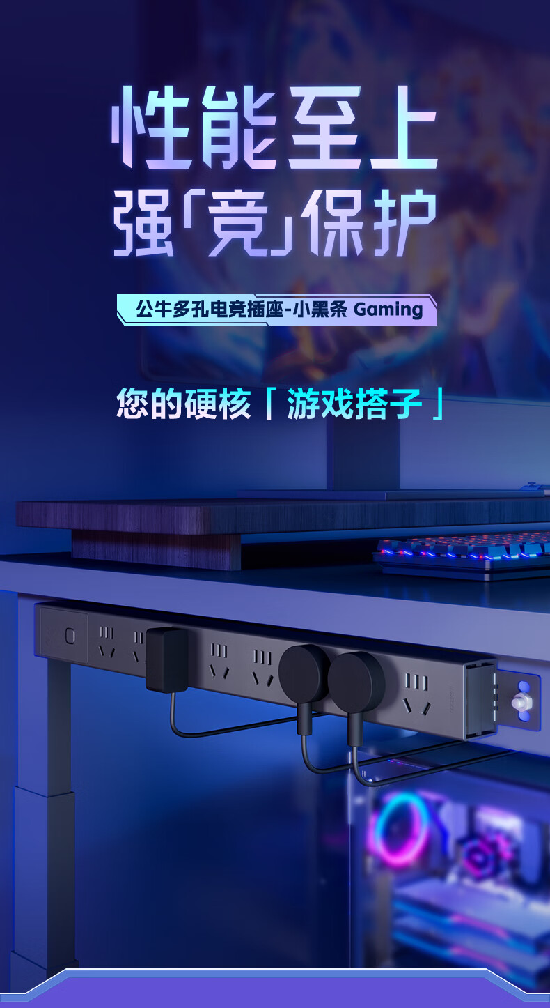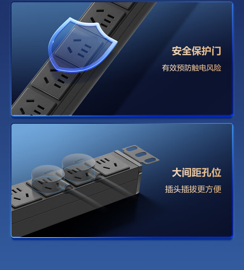 Bull (BULL) PDU desktop gaming cabinet socket/strip board/socket strip/strip strip/socket strip/pull line board 10A eight-bit master control overload protection 1.8 meters P108E