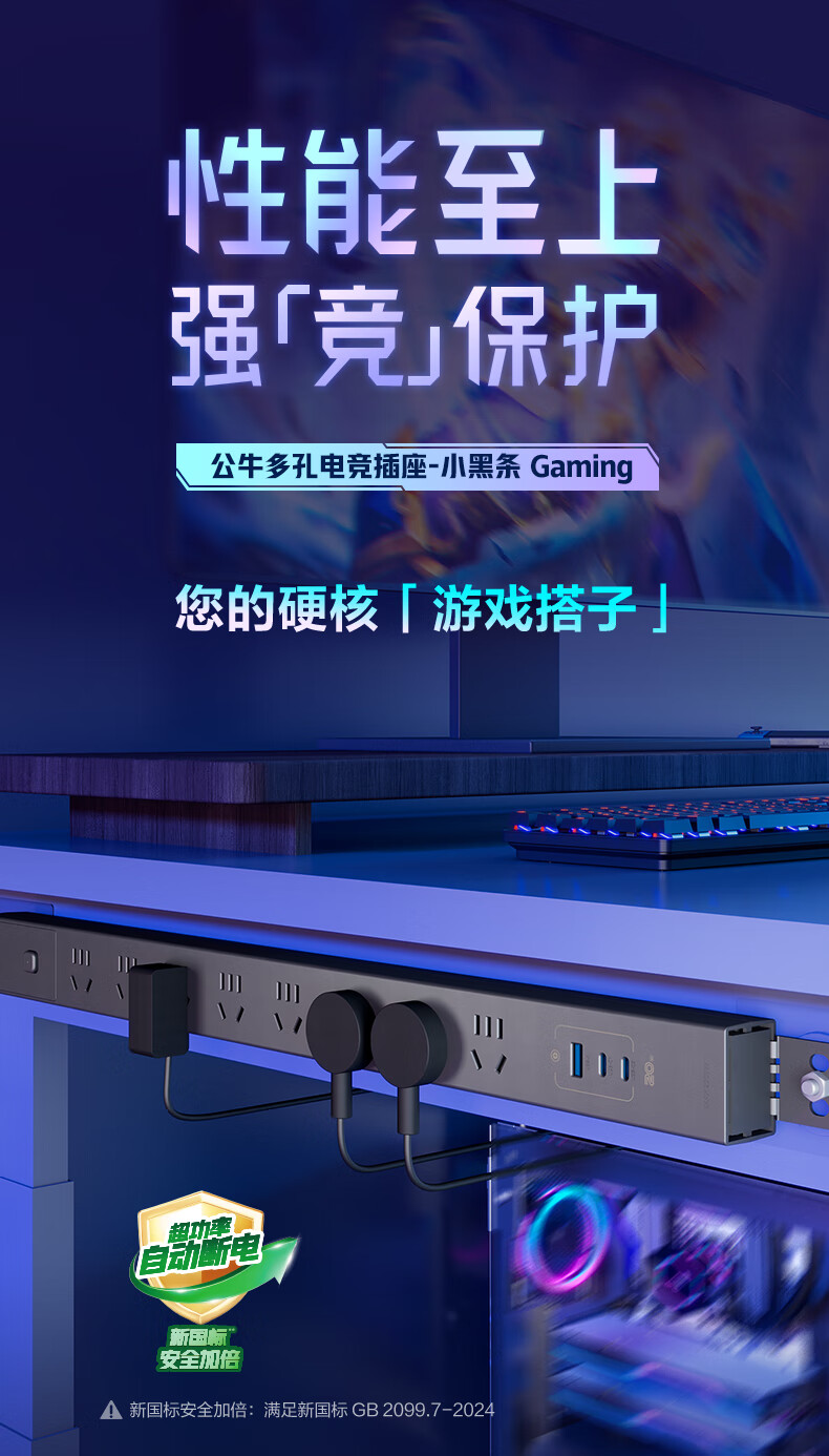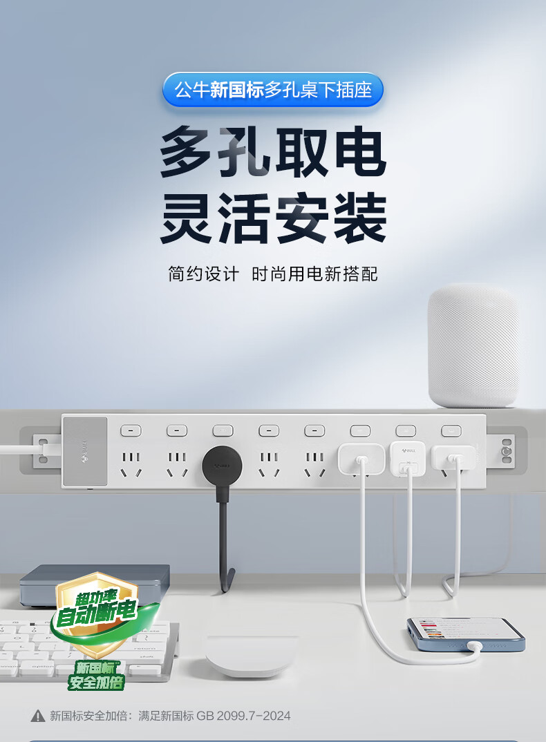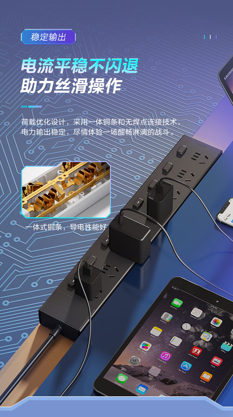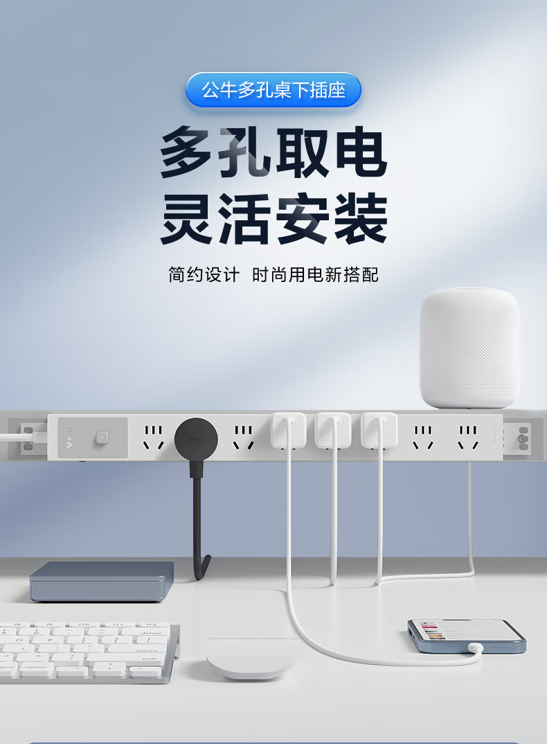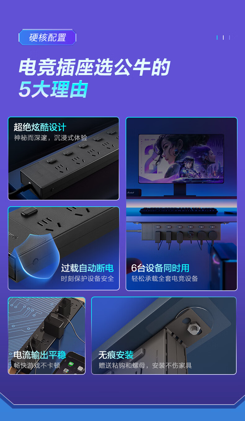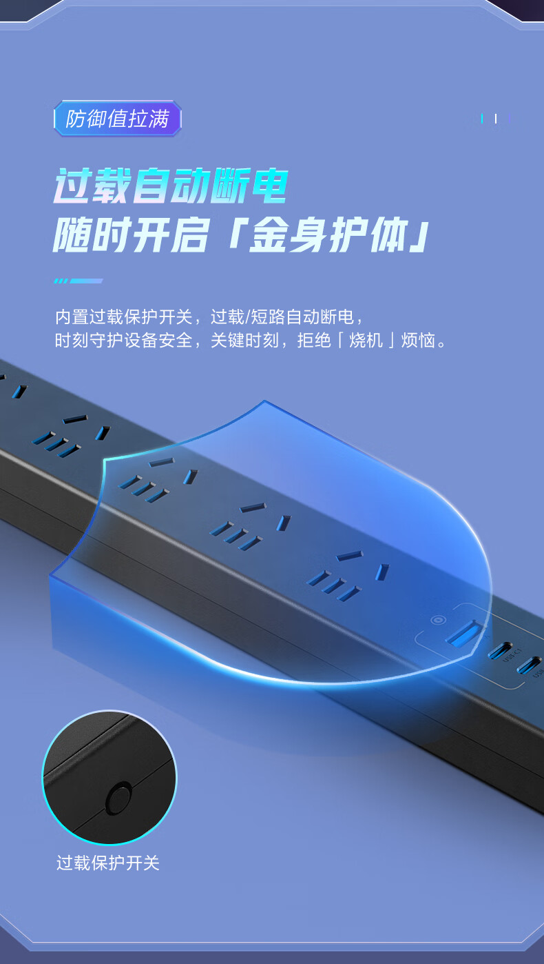Bull (BULL) PDU desktop gaming cabinet socket/strip board/socket strip/strip strip/socket strip/pull line board 10A eight-bit master control overload protection 1.8 meters P108E