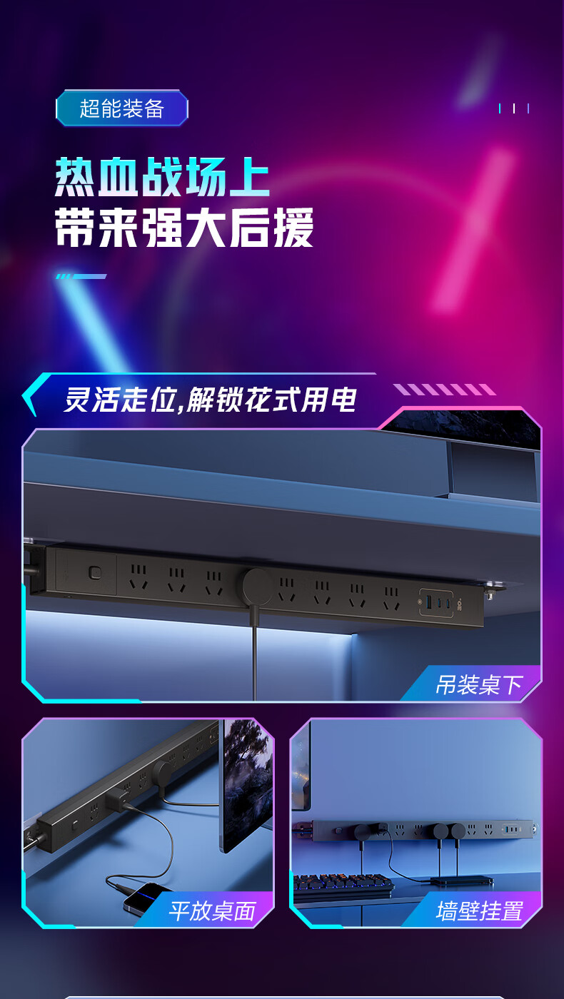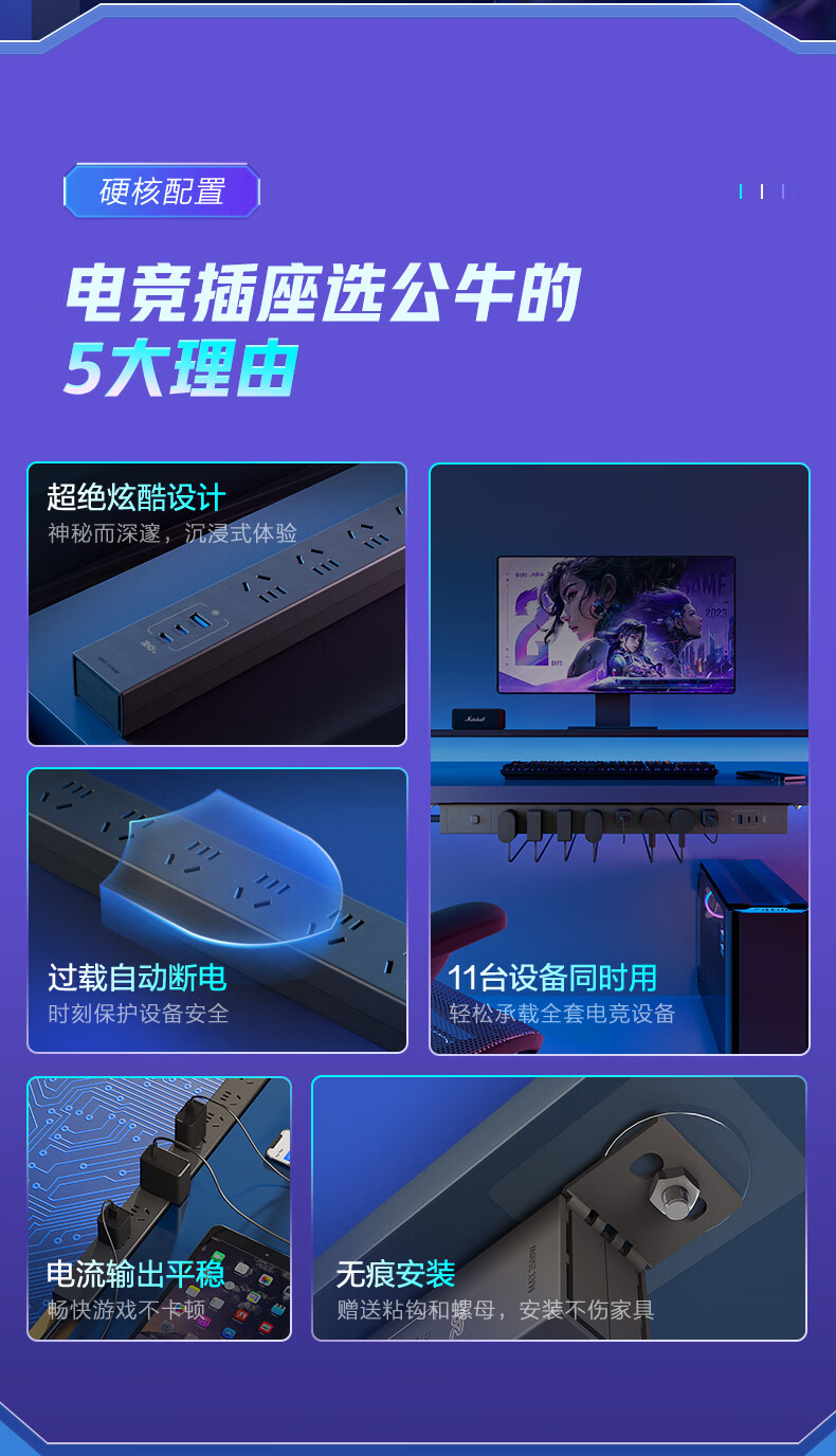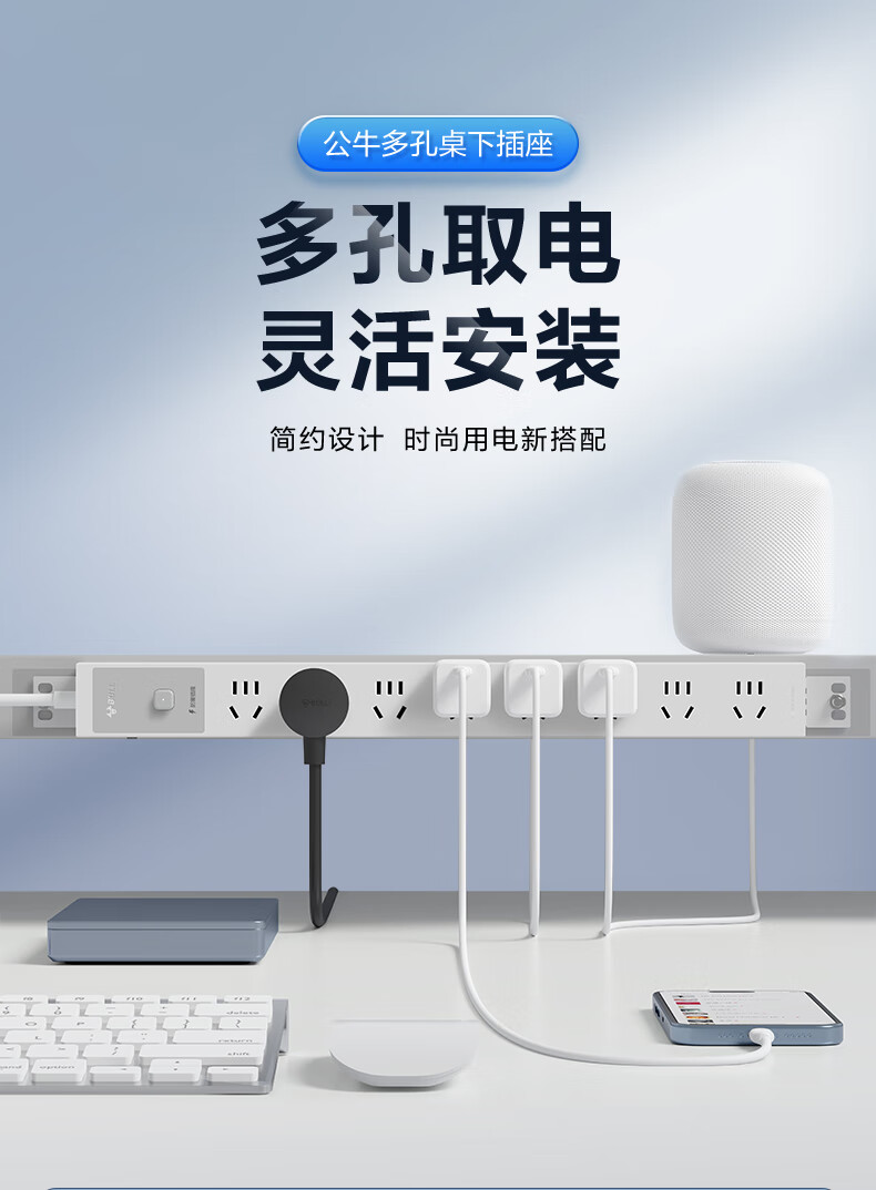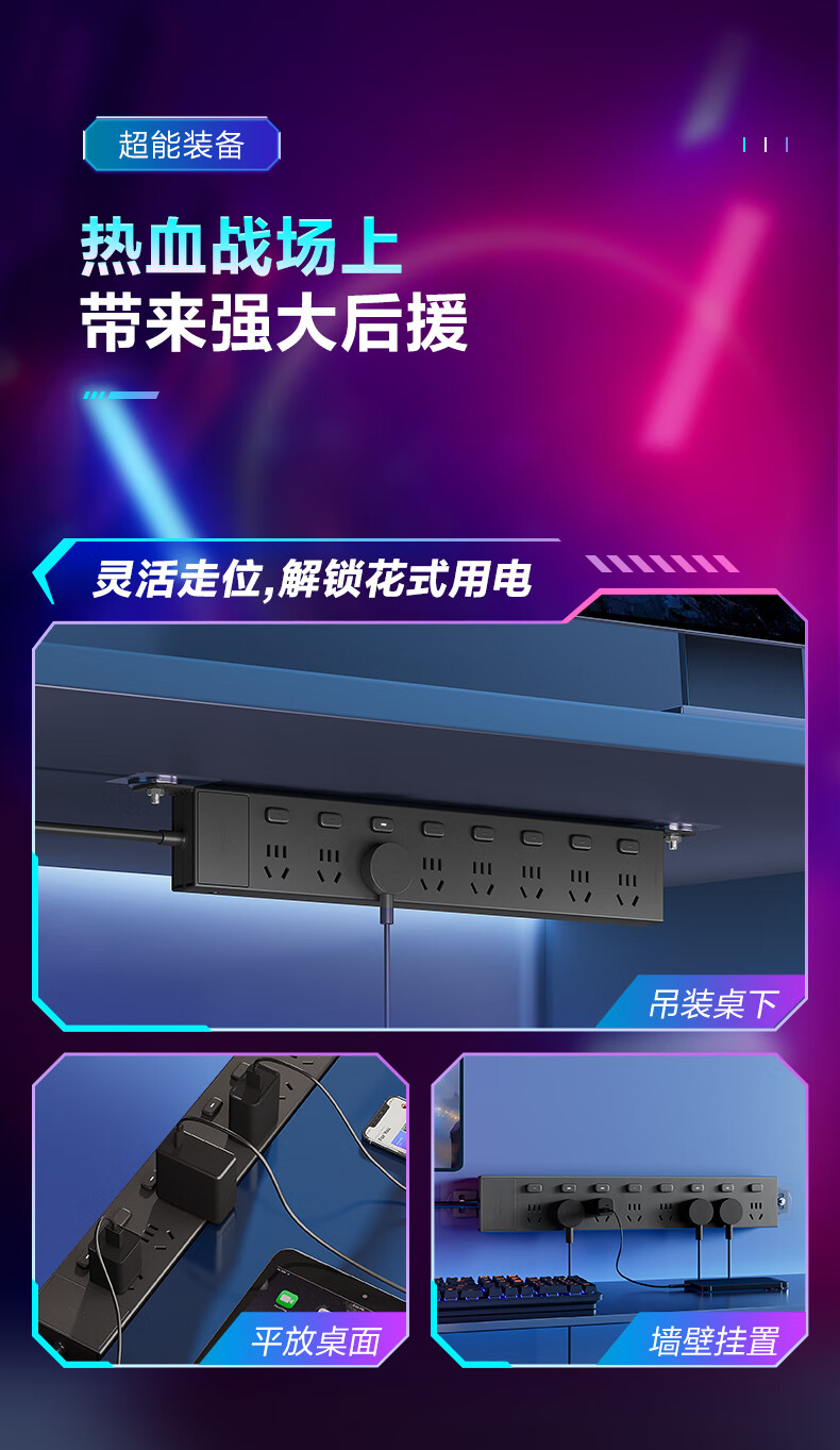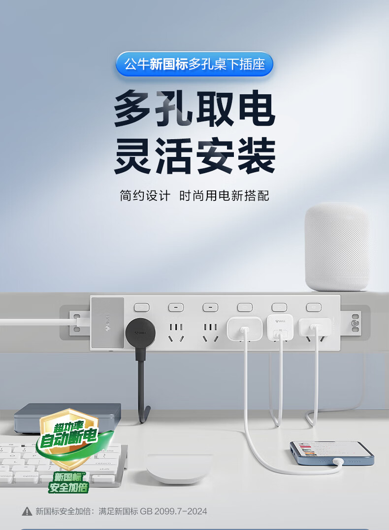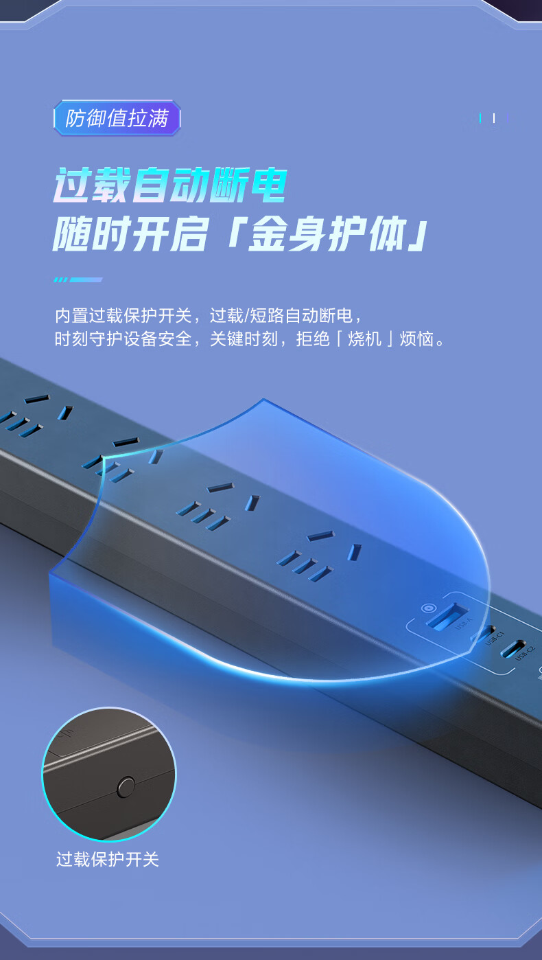 Bull (BULL) PDU desktop gaming cabinet socket/strip board/socket strip/strip strip/socket strip/pull line board 10A eight-bit master control overload protection 1.8 meters P108E