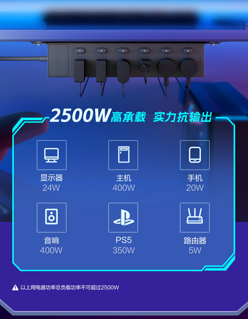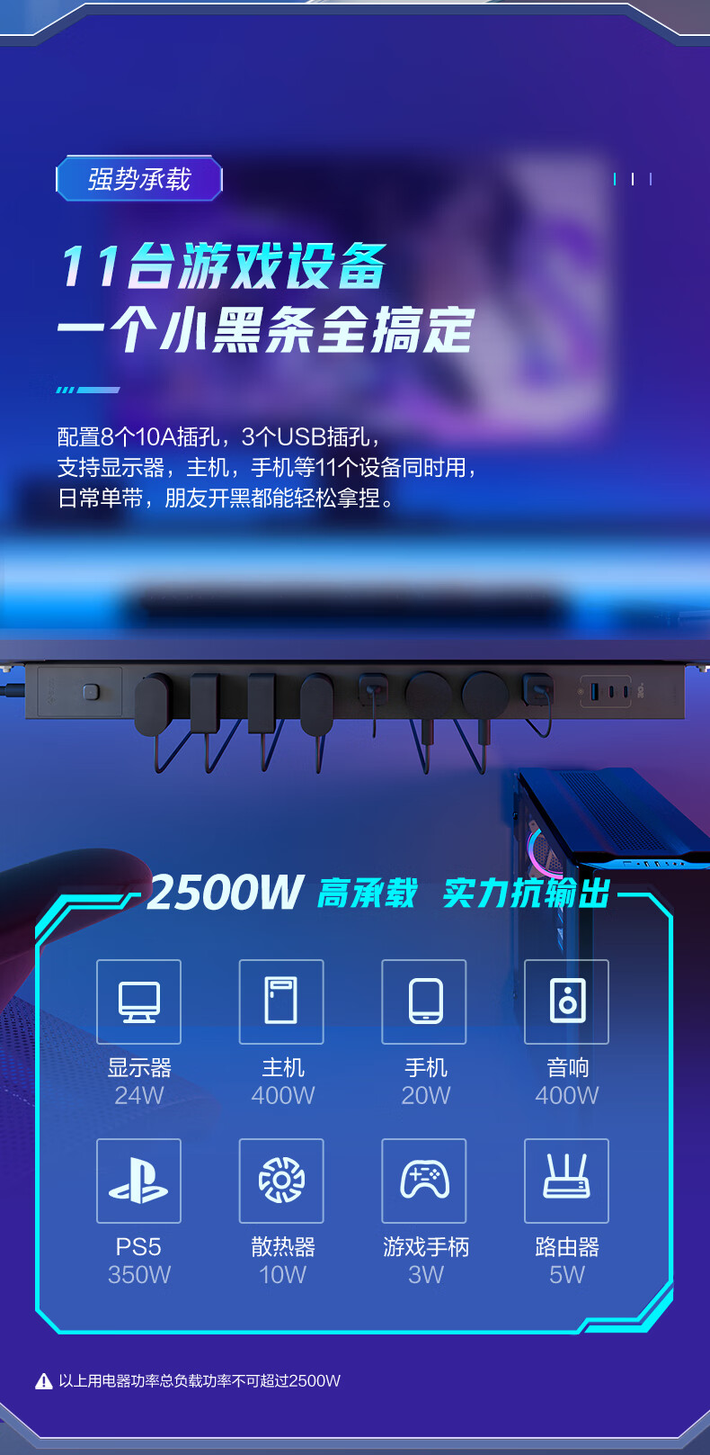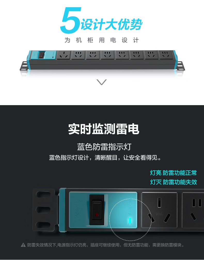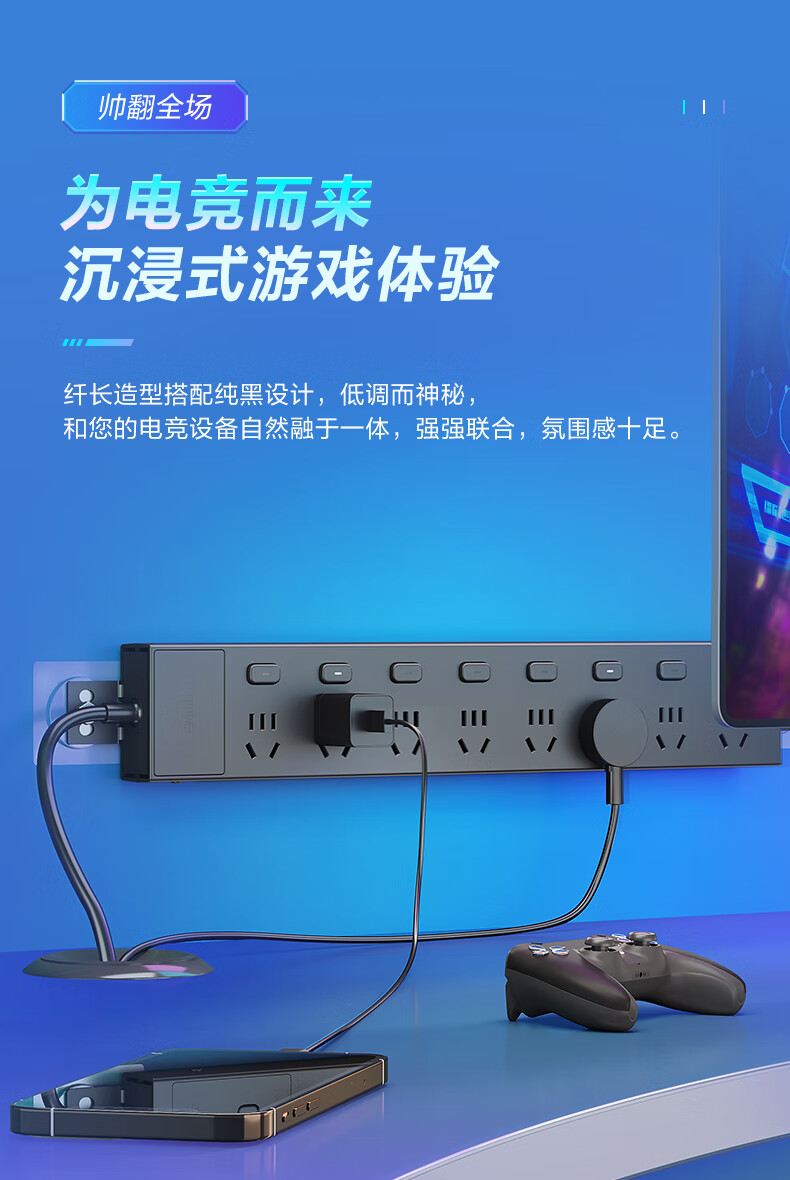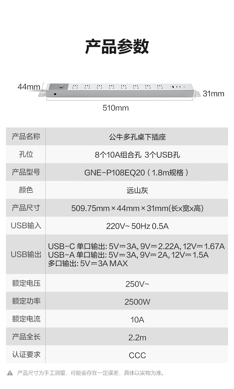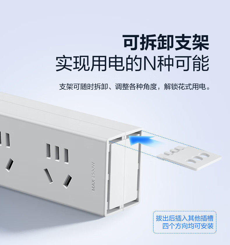Bull (BULL) PDU desktop gaming cabinet socket/strip board/socket strip/strip strip/socket strip/pull line board 10A eight-bit master control overload protection 1.8 meters P108E