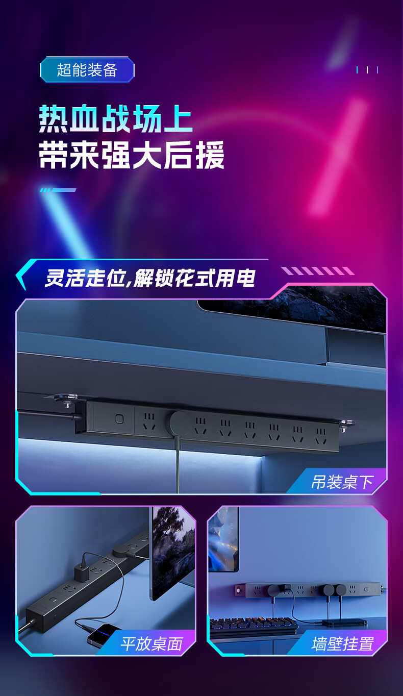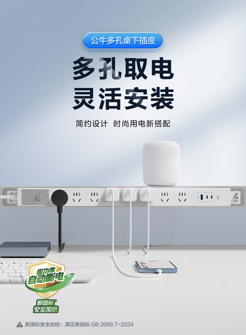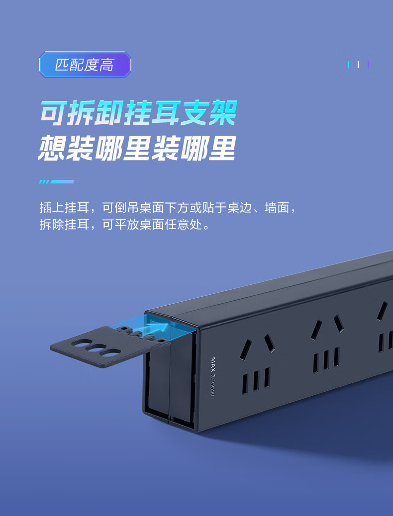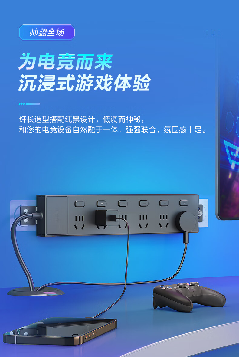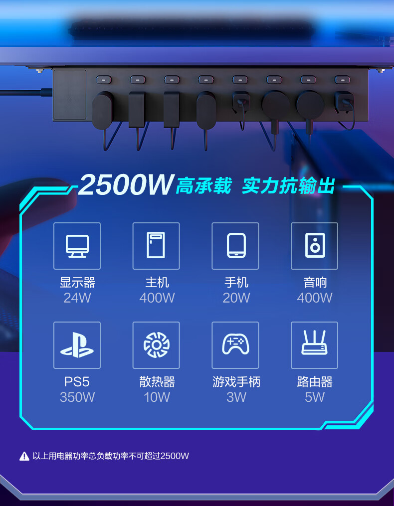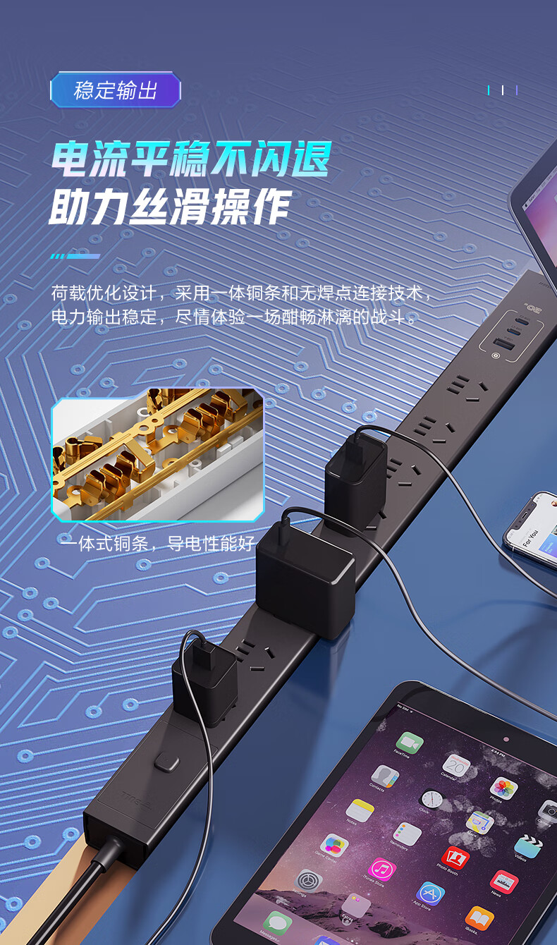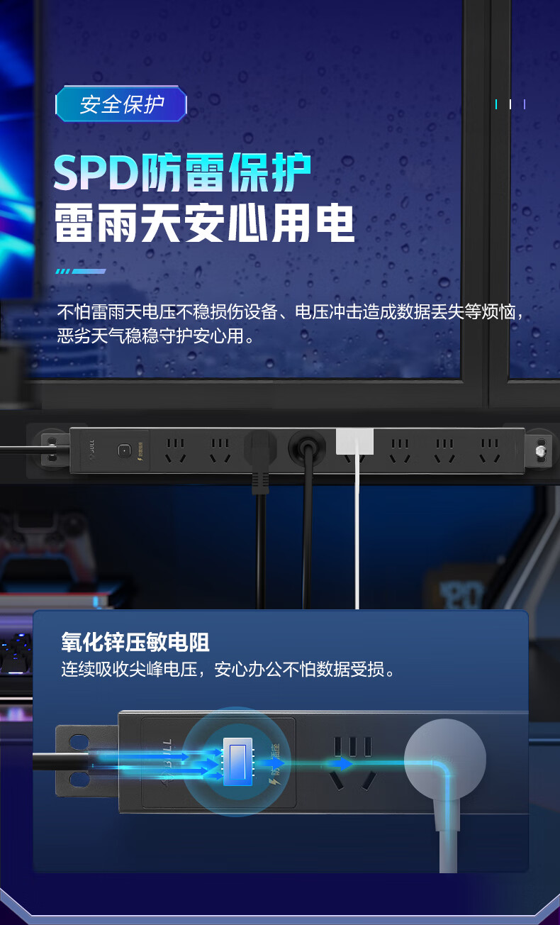 Bull (BULL) PDU desktop gaming cabinet socket/strip board/socket strip/strip strip/socket strip/pull line board 10A eight-bit master control overload protection 1.8 meters P108E