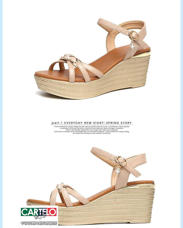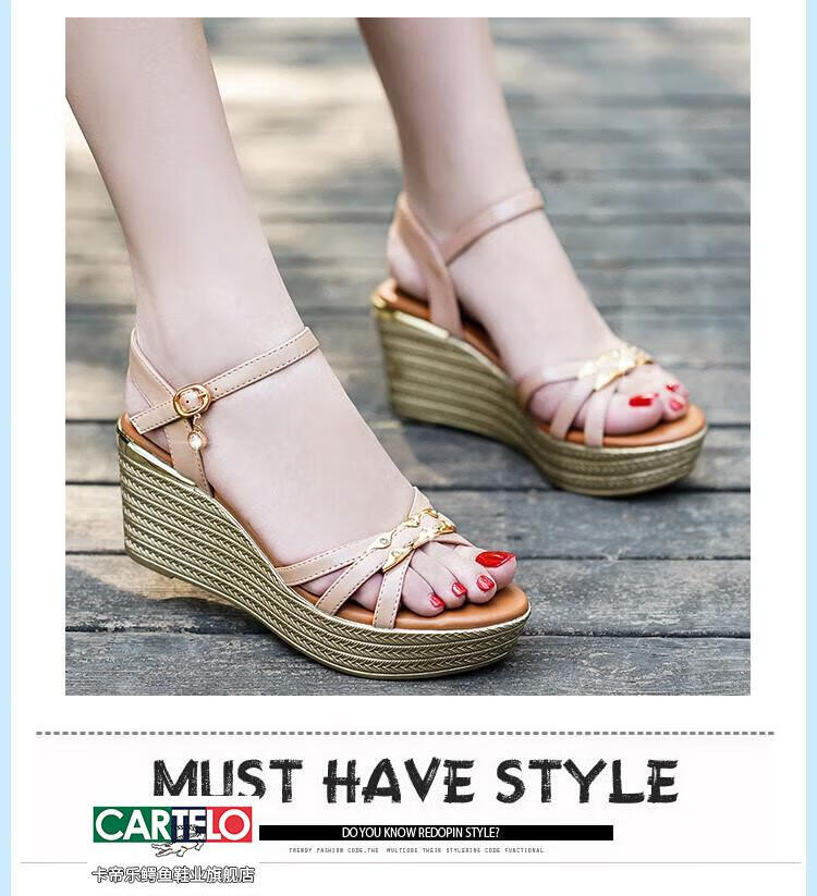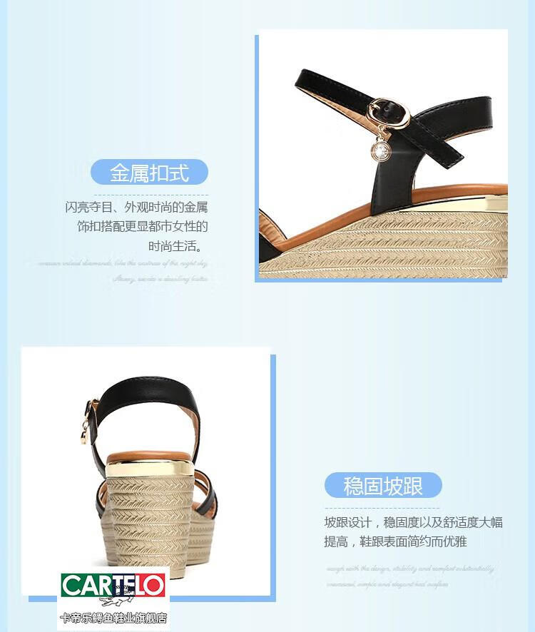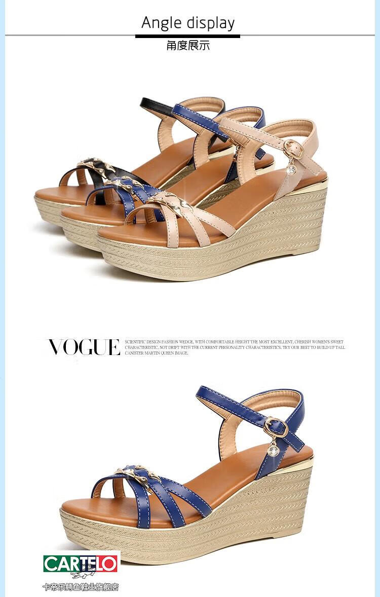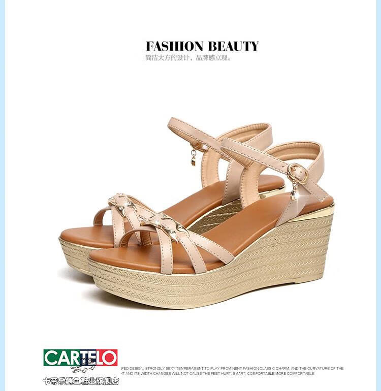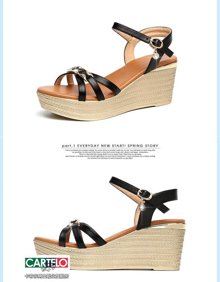 CARTELO genuine leather wedge sandals for women 2026 summer new versatile flat soft sole thick sole high heels women's casual shoes 126 black 37
